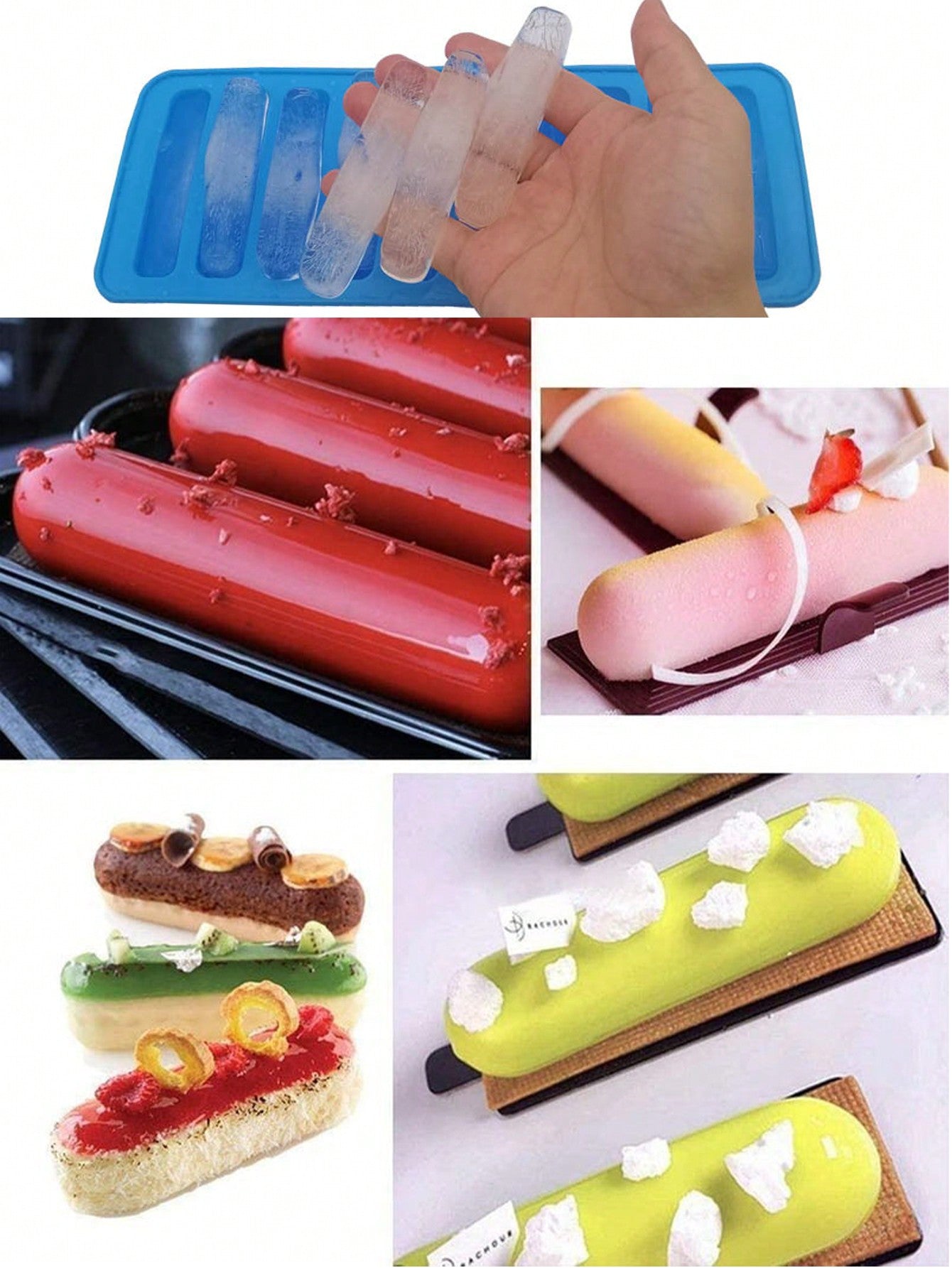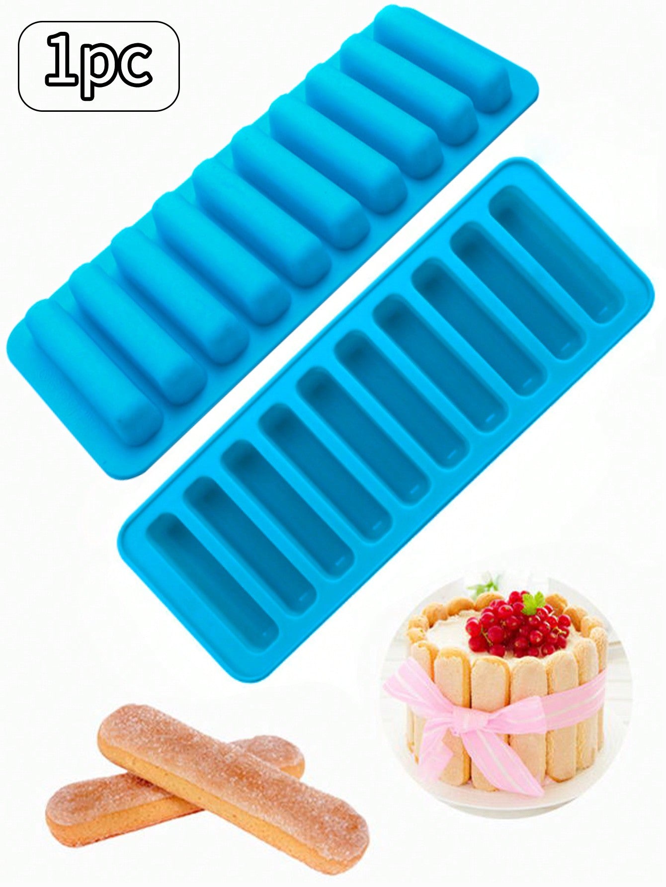 قالب سيليكون مستطيل 10 فتحات واحد لصنع كعكة الأصابع، الشوكولاته، الحلوى، المعجنات الفرنسية، الخبز، صنع الثلج في المطبخ