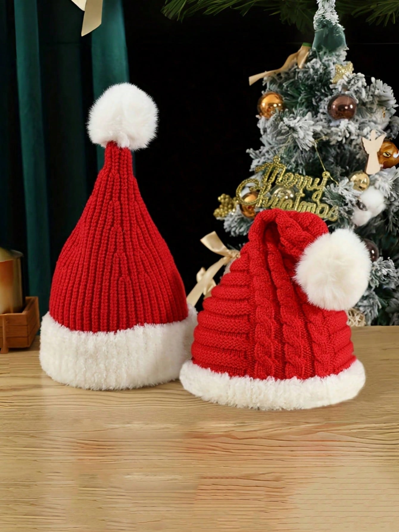 قبعة عيد الميلاد الحمراء احتفالية مع بوم بوم فاخر، قبعة شتوية