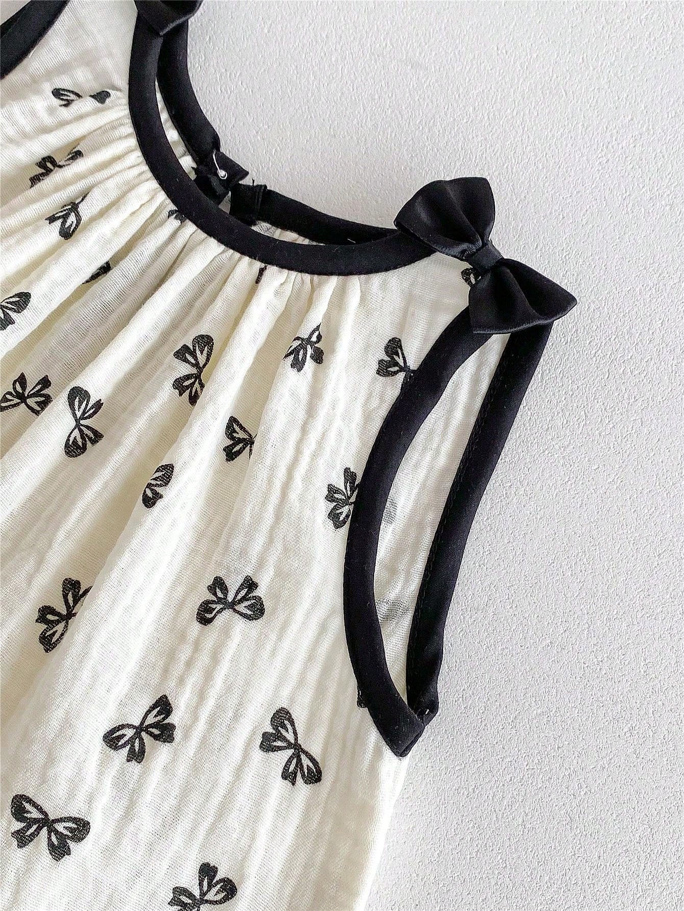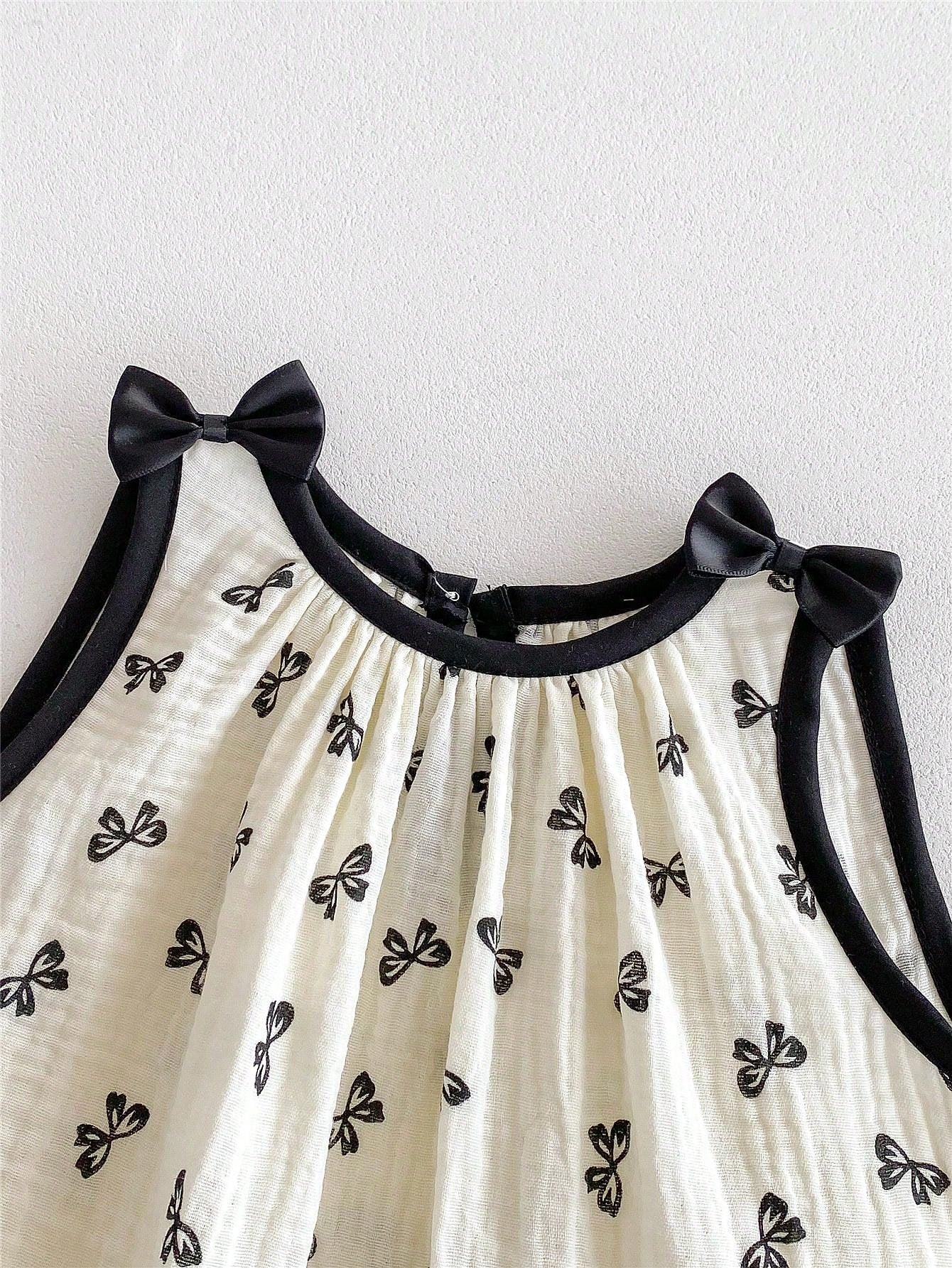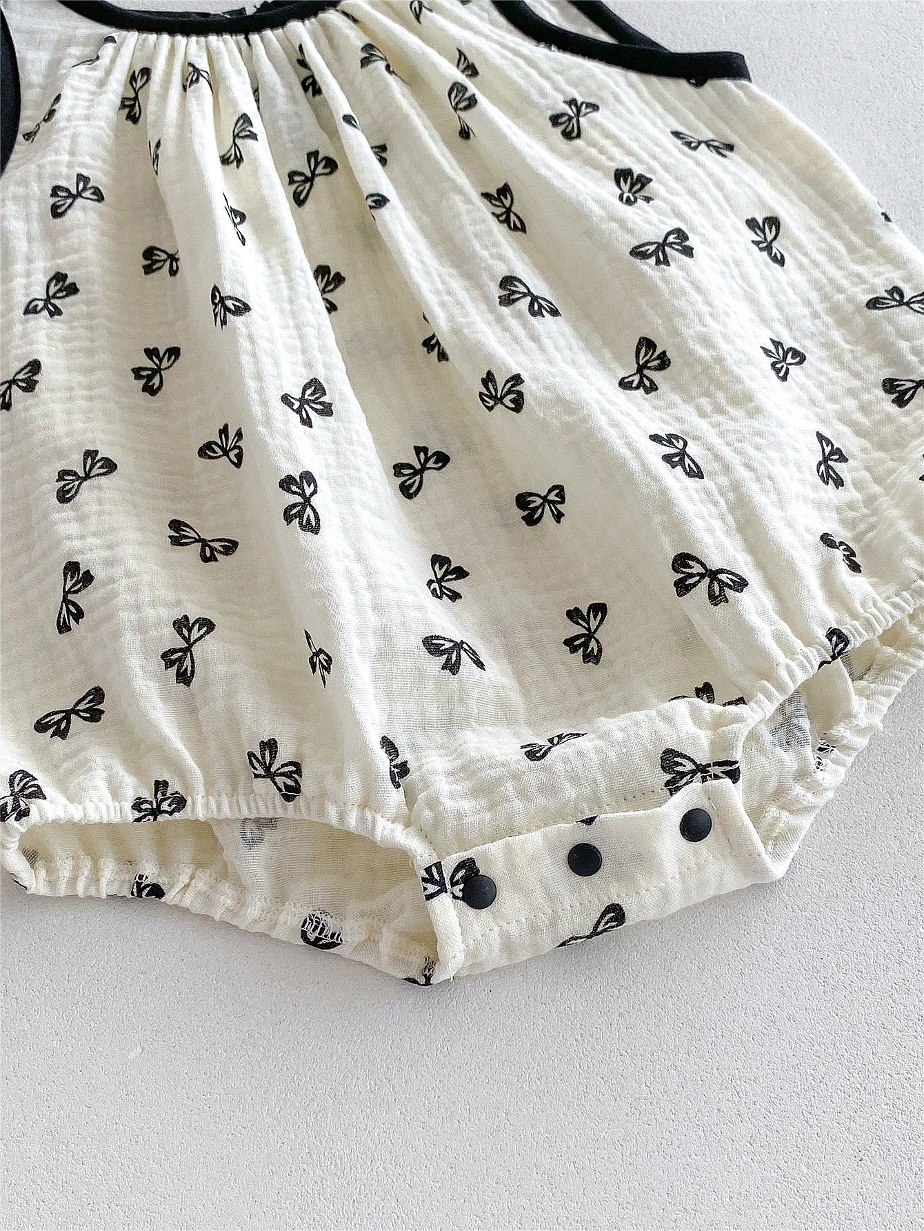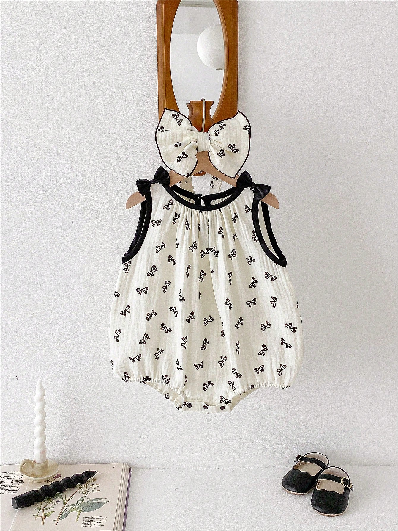 قطعة واحدة بدلة رضع بنات كاجوال بدون أكمام مع طباعة الفراشة وشريطة الرأس، صيف