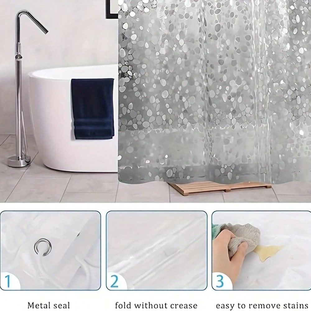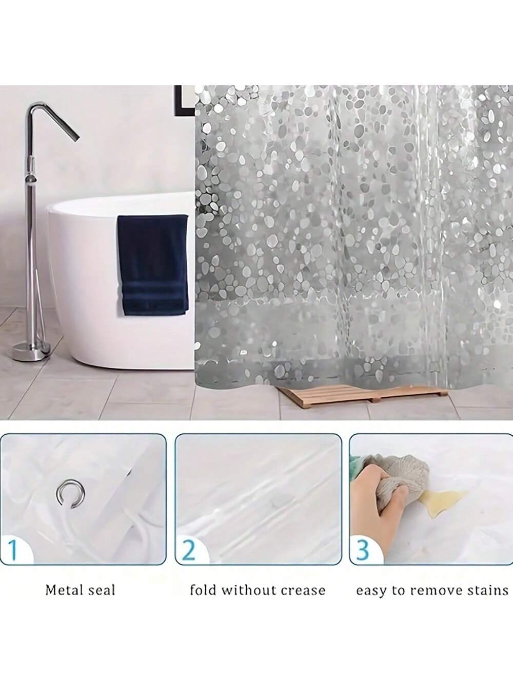 قطعة واحدة ستائر دش من إي فى إيه بملمس حصوي مقاوم للماء وخالي من الروائح الكريهة، شفافة للحمام، بدون خطافات