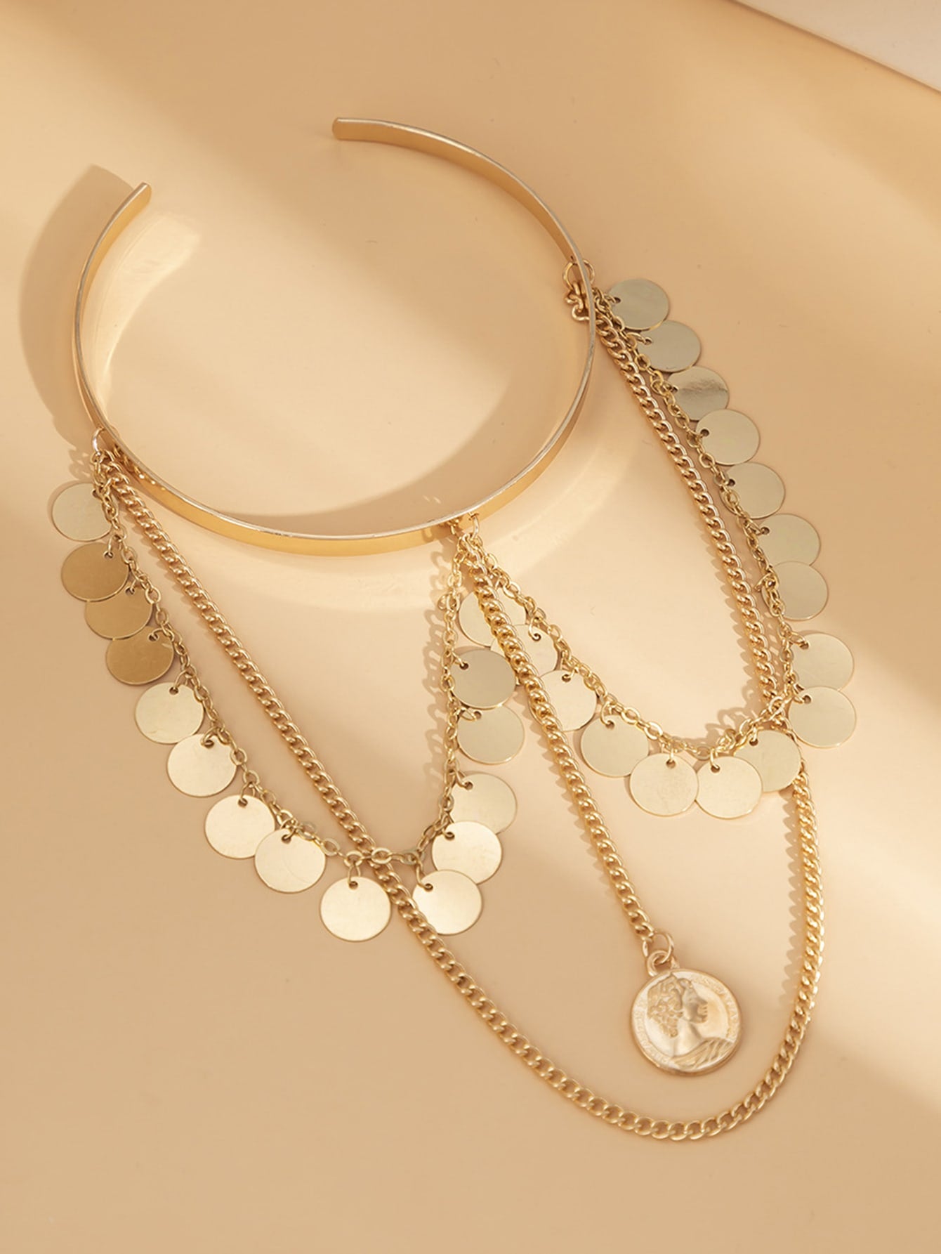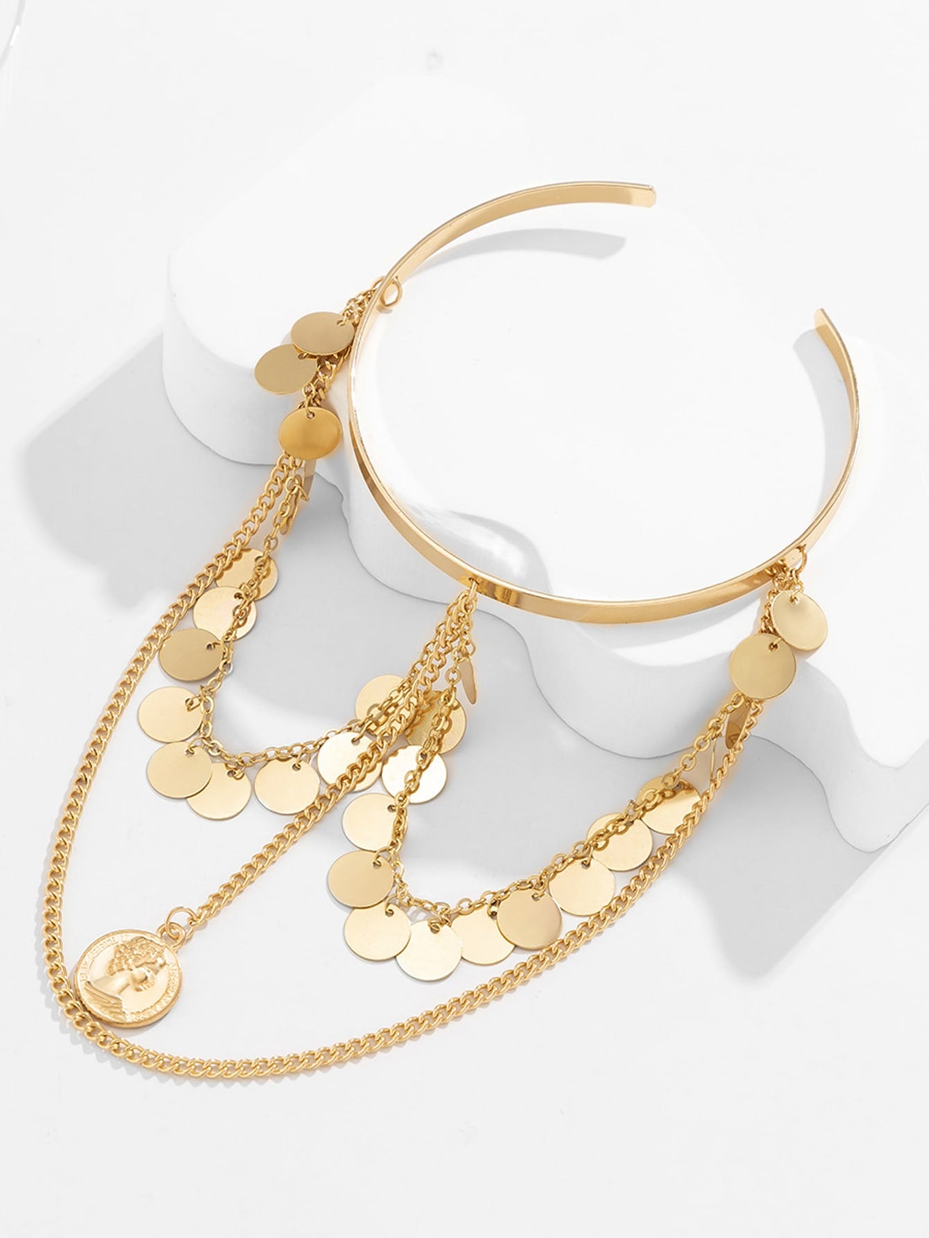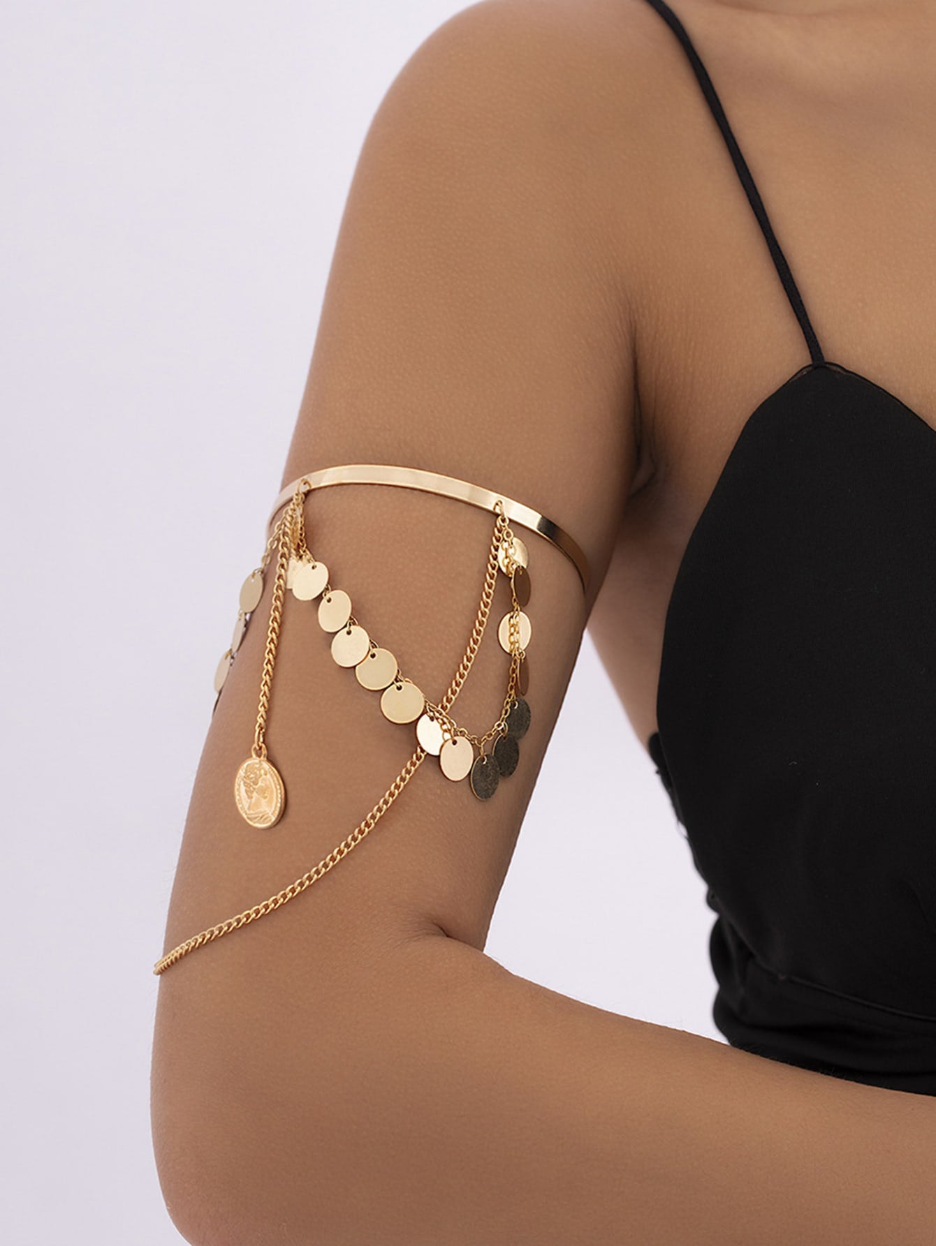 قطعة واحدة شخصية مستدير اسطوانة & مزخرف بشرابة يفتح إسورة سلسلة الذراع للنساء