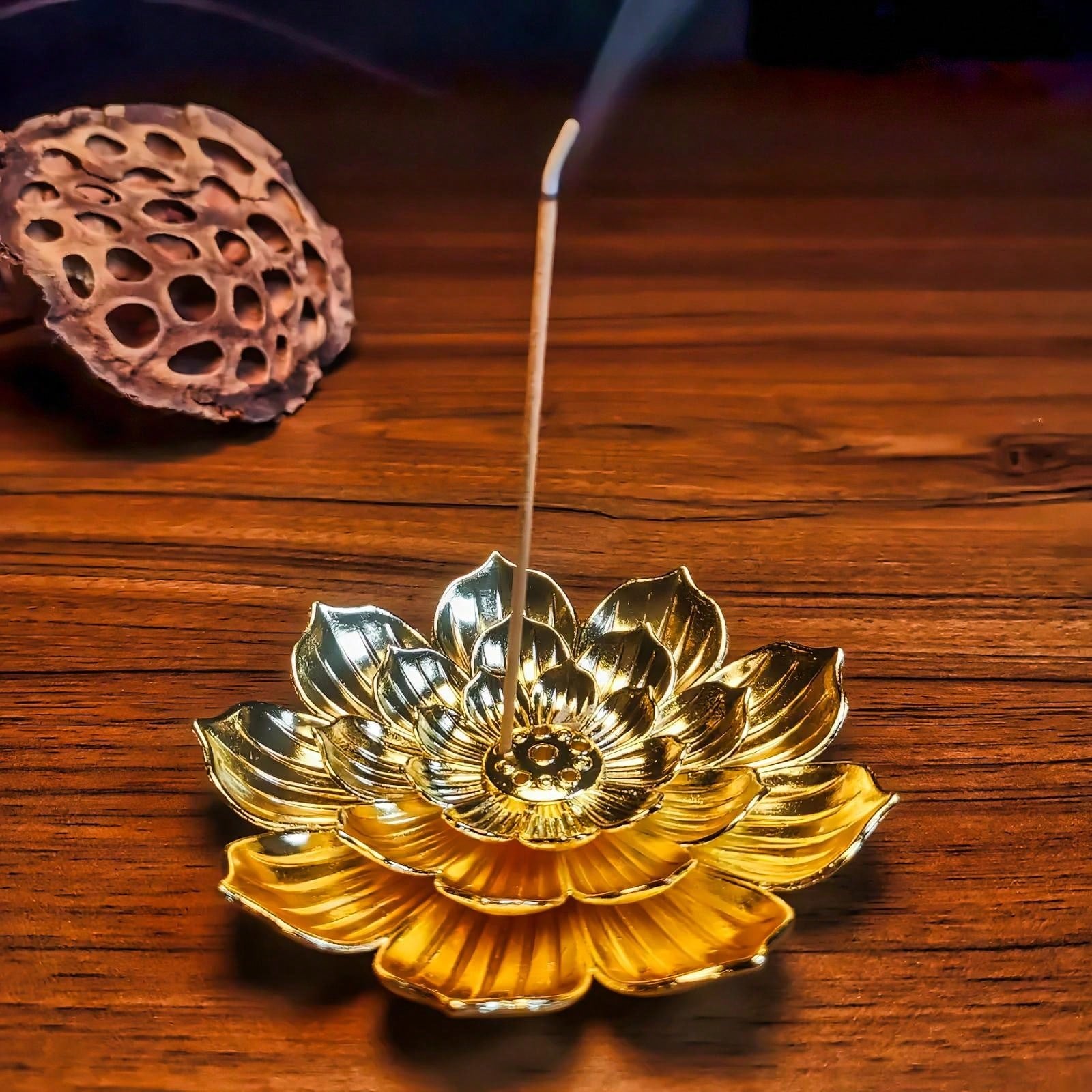 قطعة واحدة صينية لحامل البخور من سبائك المعادن مع حامل أعواد البخور وحامل بشكل زهرة اللوتس ، مناسبة كهدية مثالية للناس