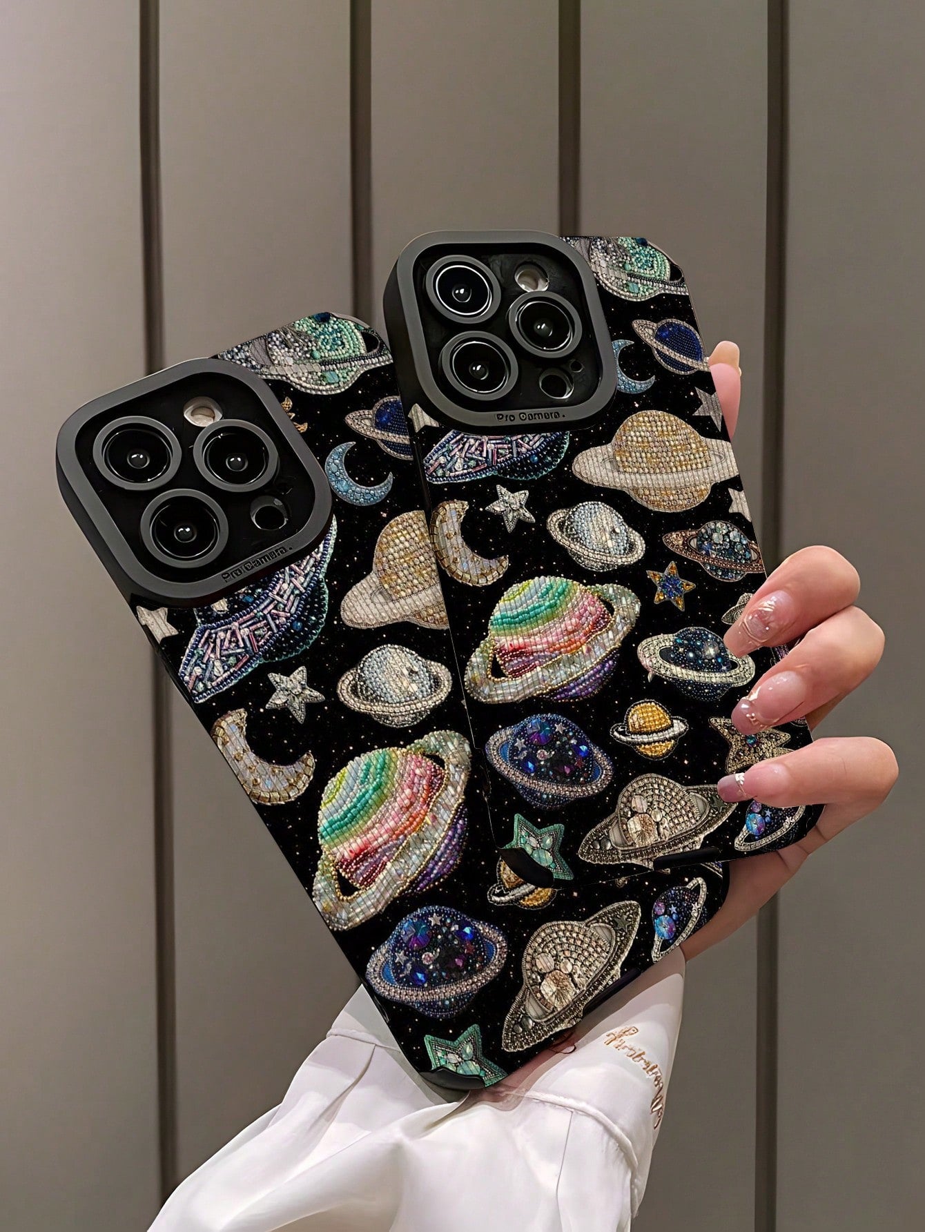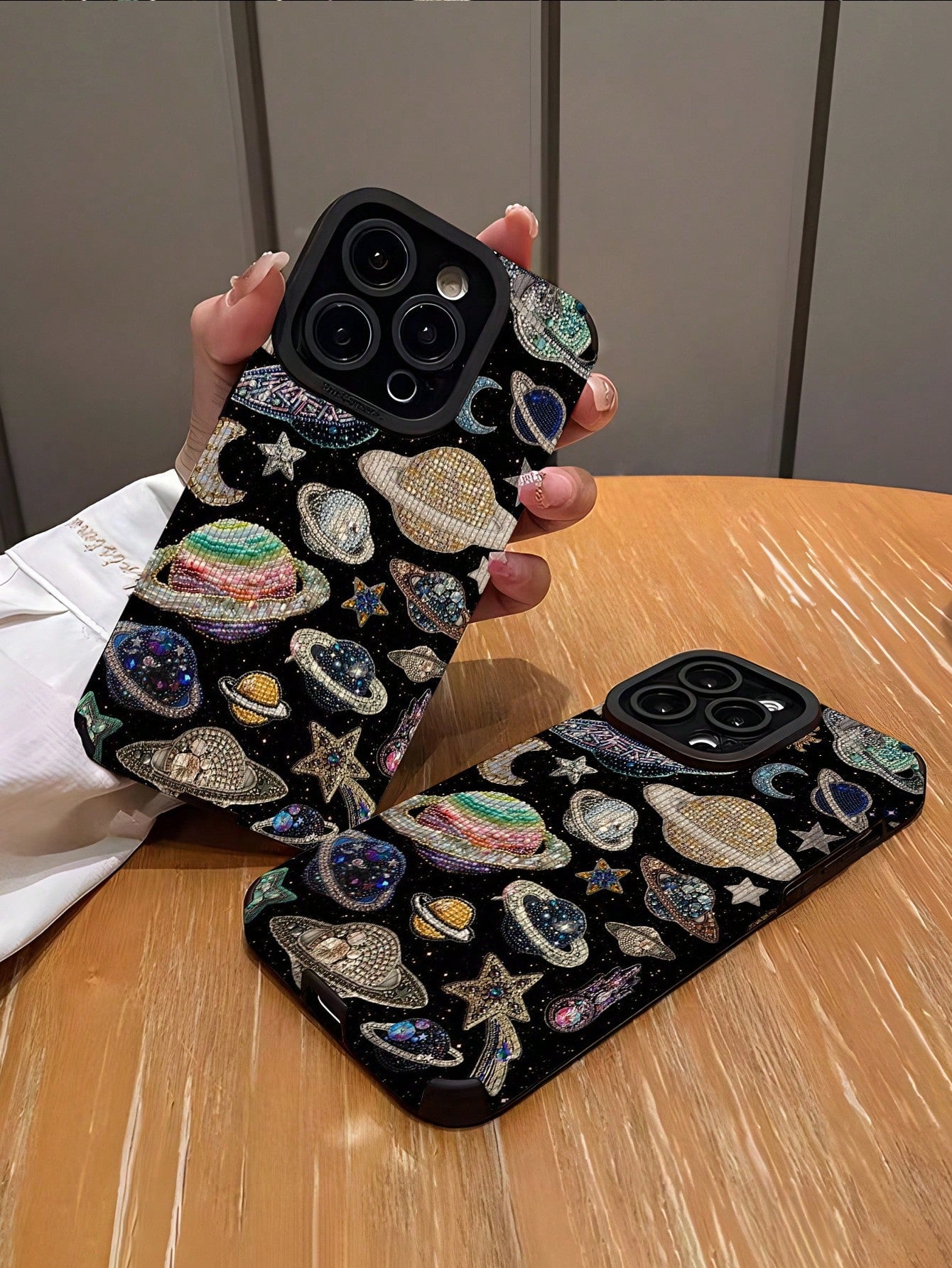 قطعة واحدة غطاء هاتف محمي من الجلد الصناعي الناعم بنمط كواكب منجري