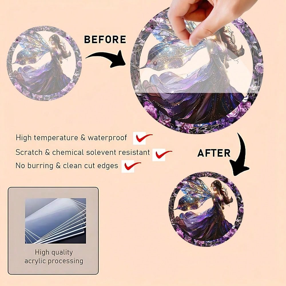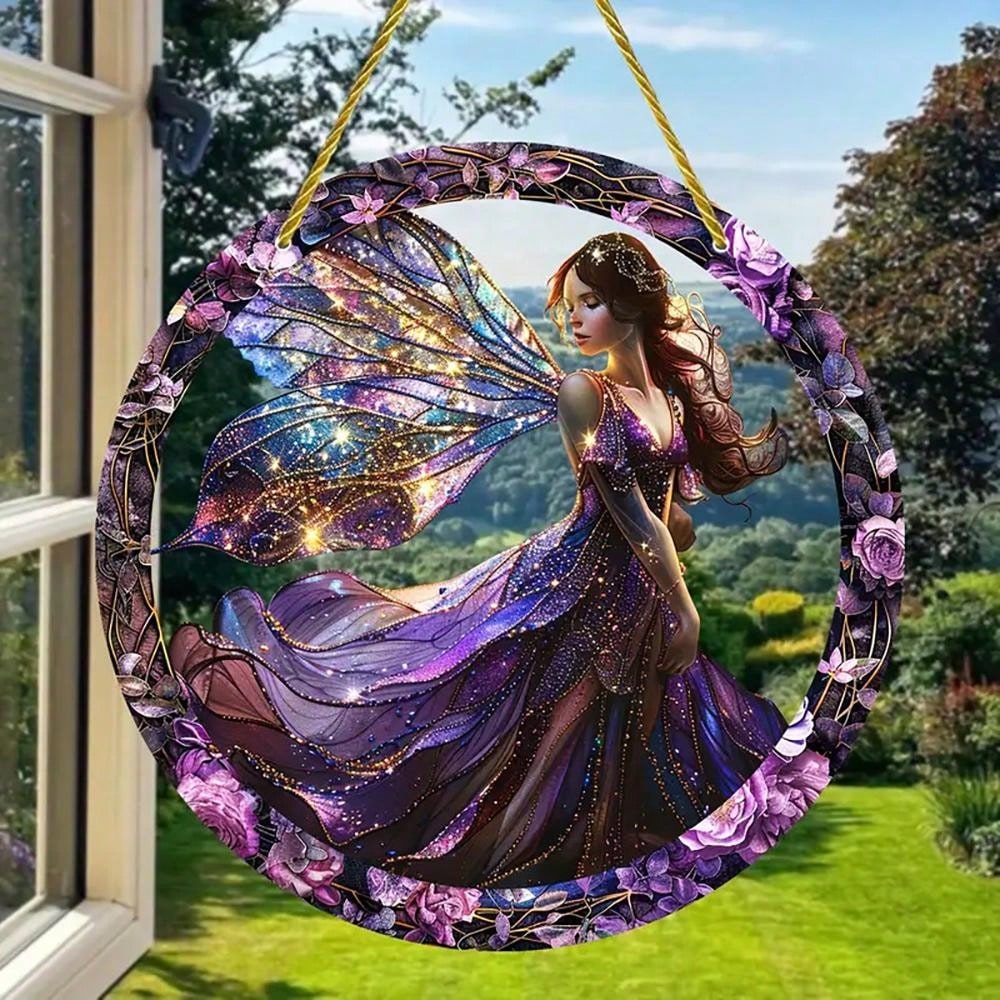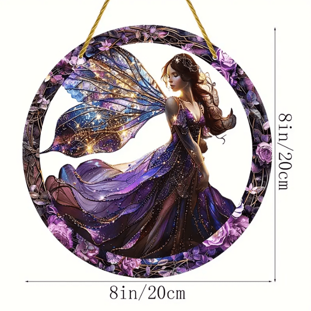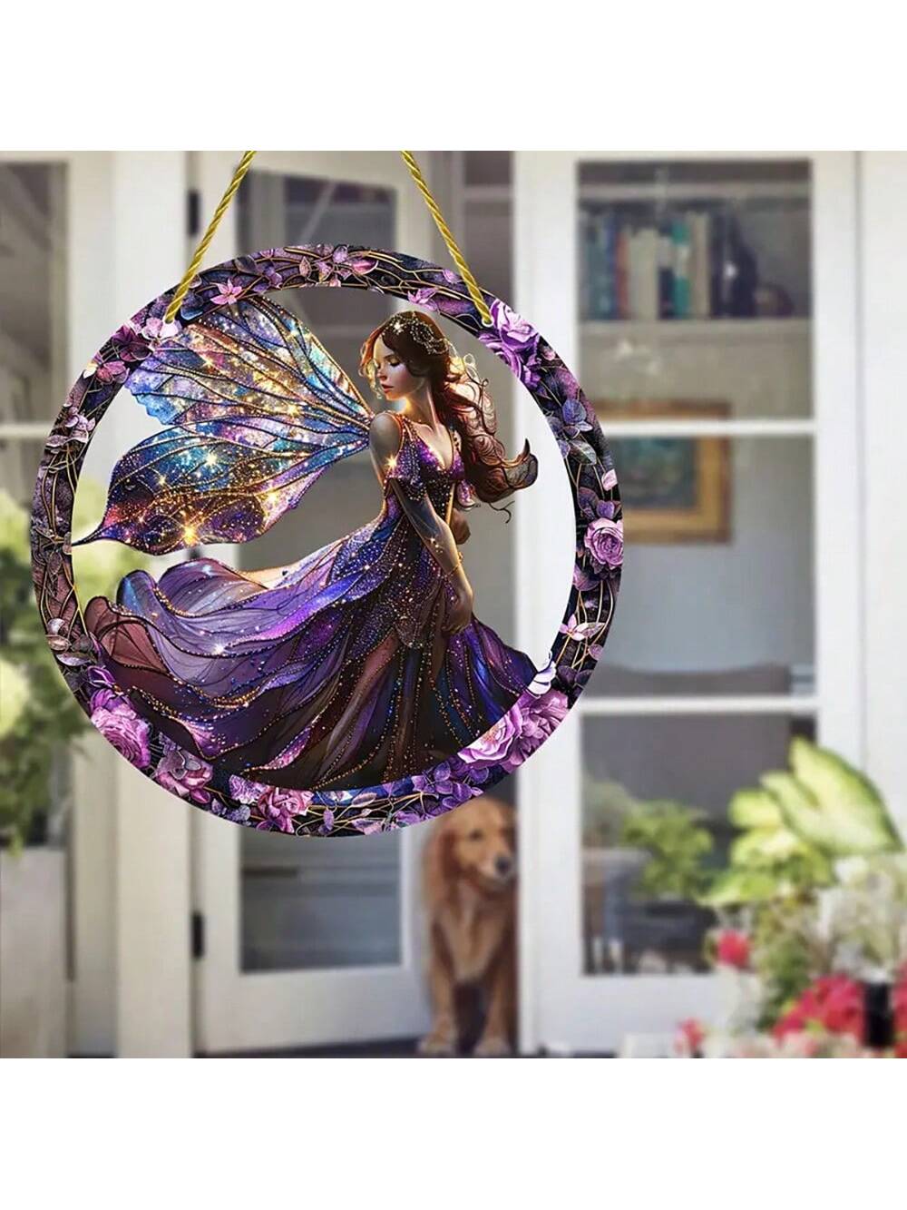 قطعة واحدة متعددة الاستخدامات من مصيدة شمس الفراشة الزقزاقية المسطحة من الأكريليك متعددة الألوان للتعليق على النافذة، بتصميم جنية وإكليل، رائعة لديكور الحديقة والمنزل والشرفة والغرفة في مناسبات الهالوين والخريف والأعياد