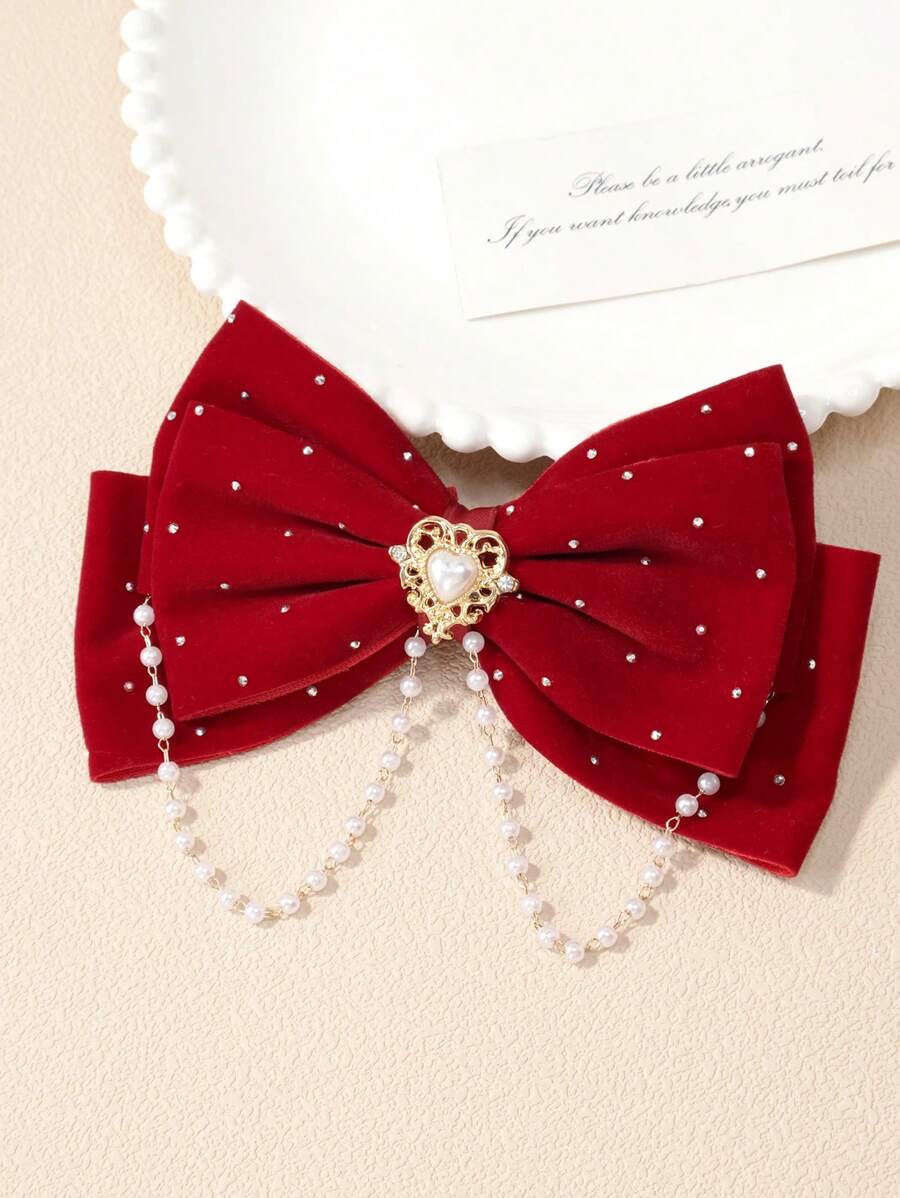 قطعة واحدة مشبك شعر مزين بفراشة مرصع بالكريستال واللؤلؤ للفتيات