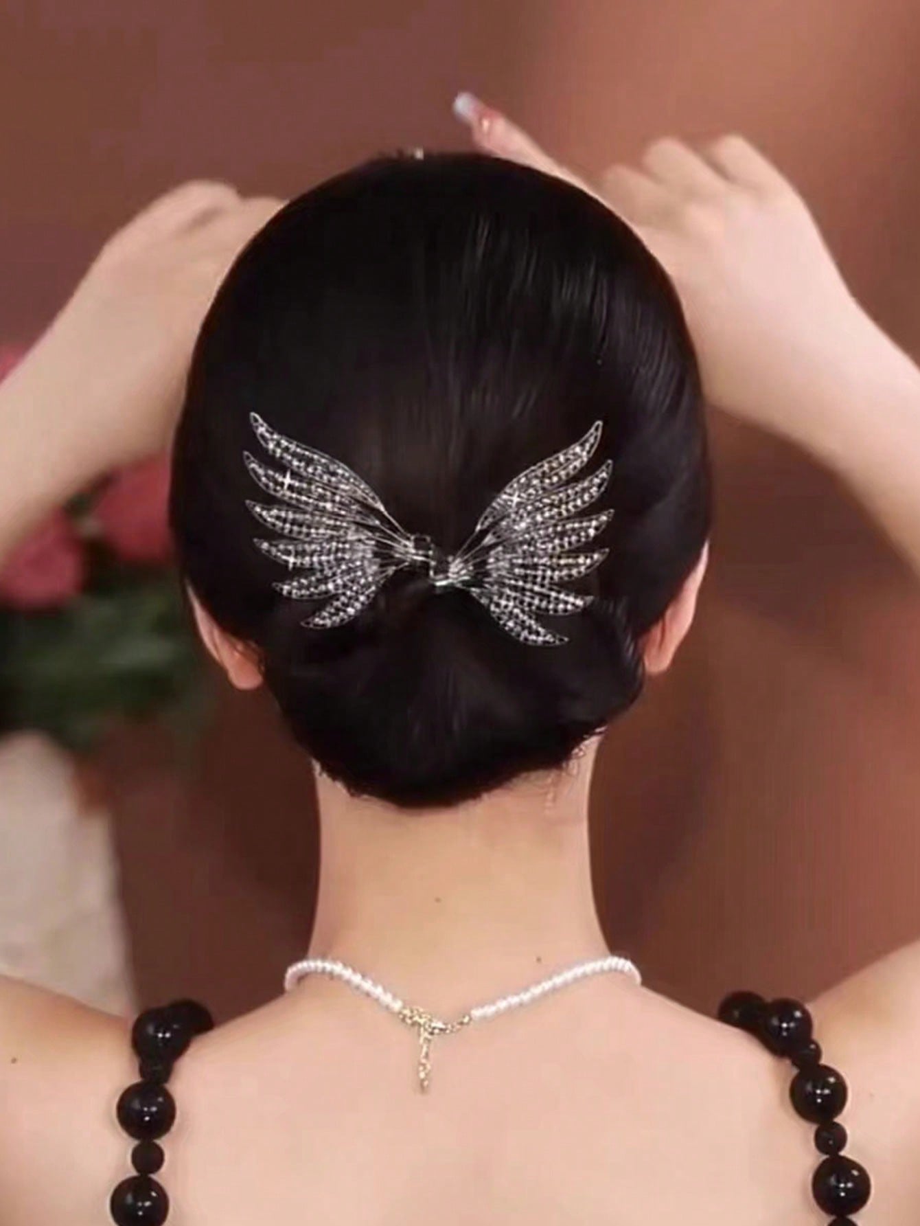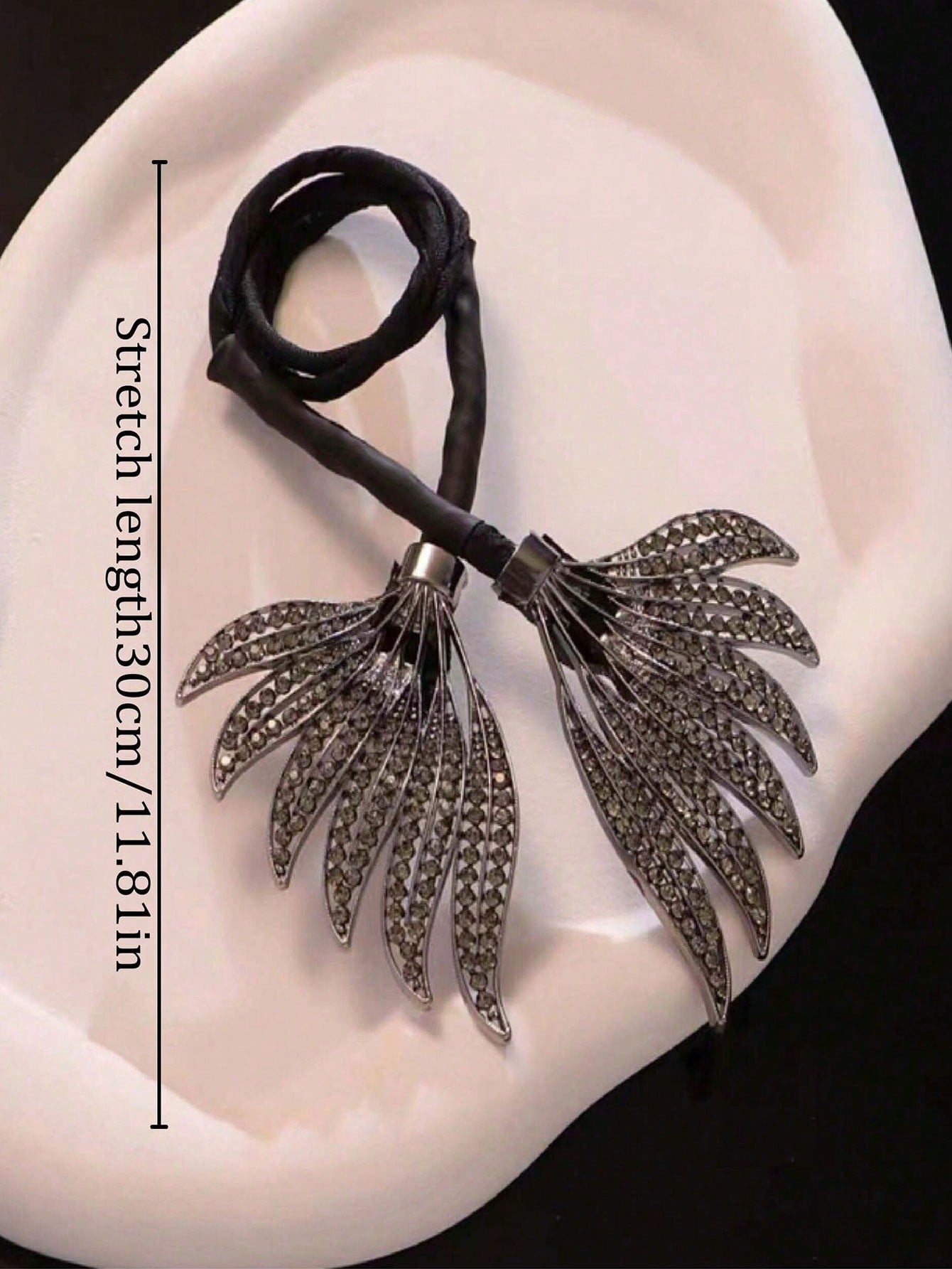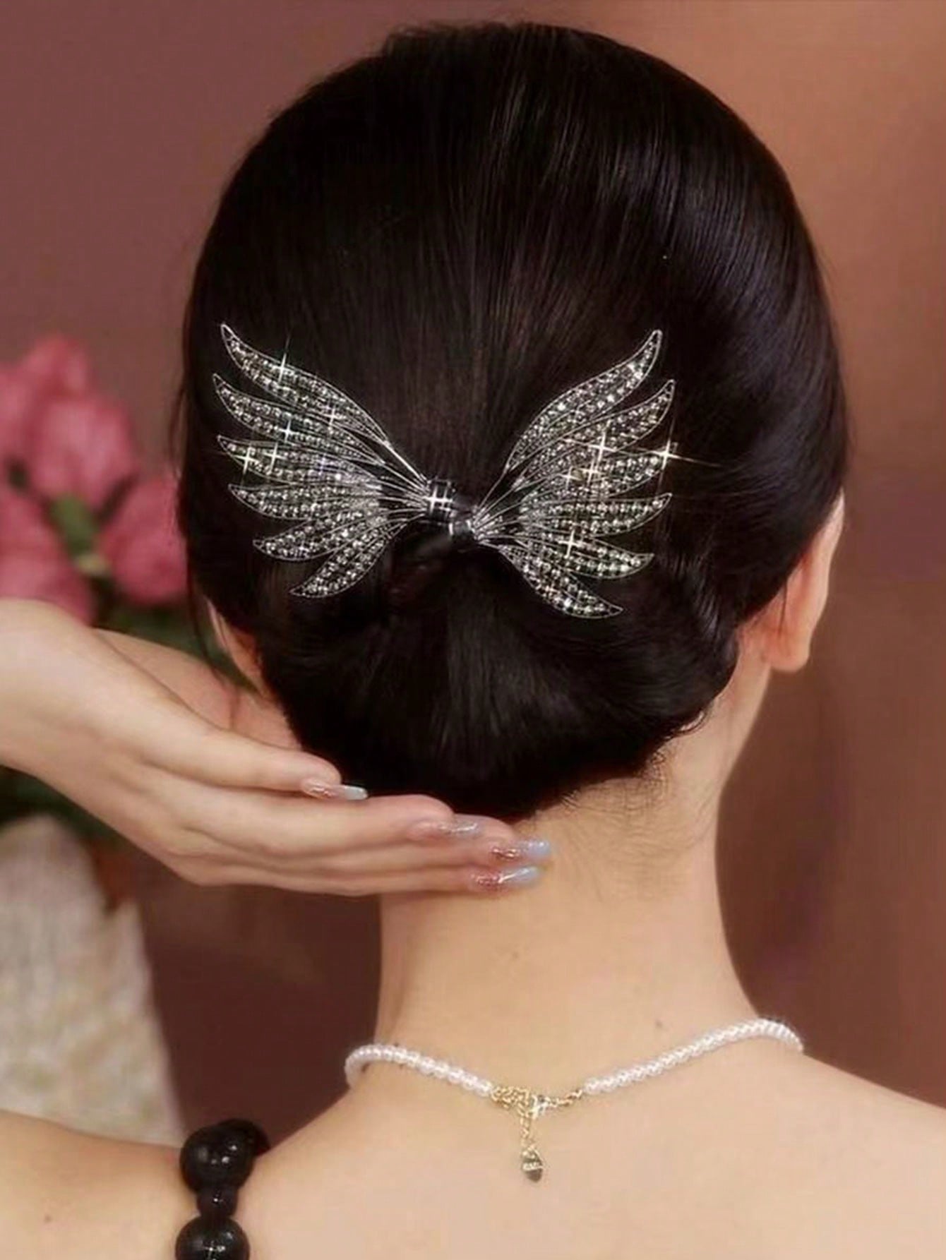 قطعة واحدة من صانعة كعكة الشعر المصنوعة من خليط معدني أسود للسيدات مع ديكور من حجر الراين، تسريحة شعر عاصي ملتوية بطول السماء