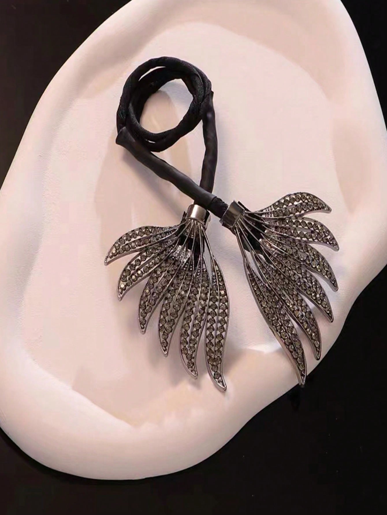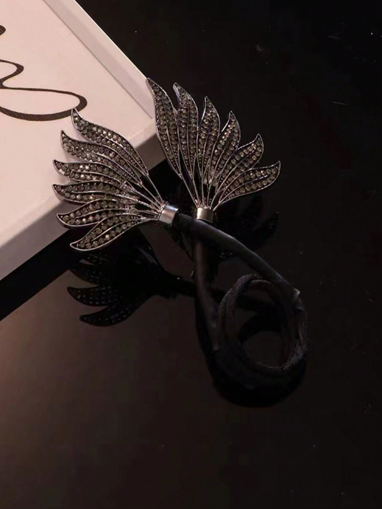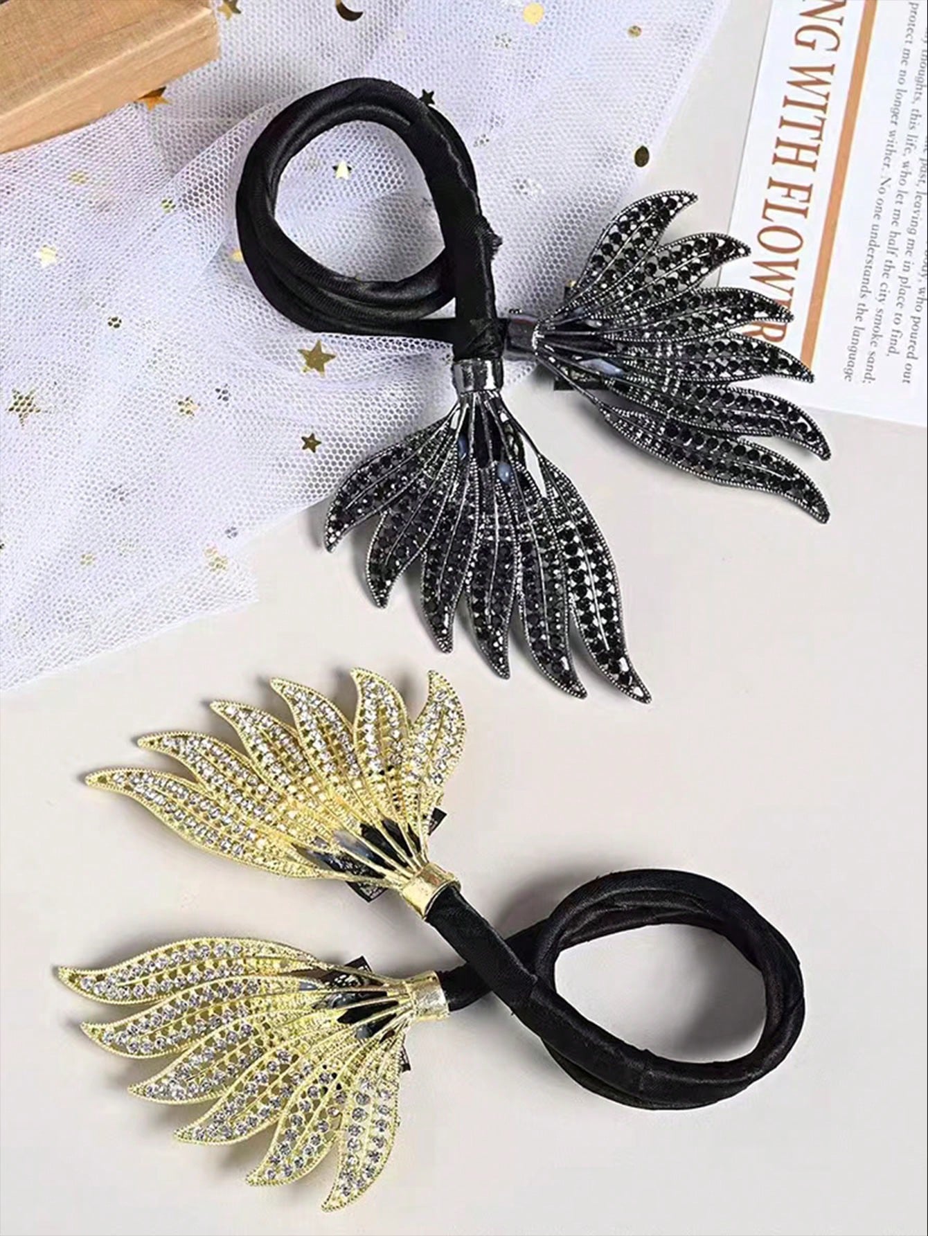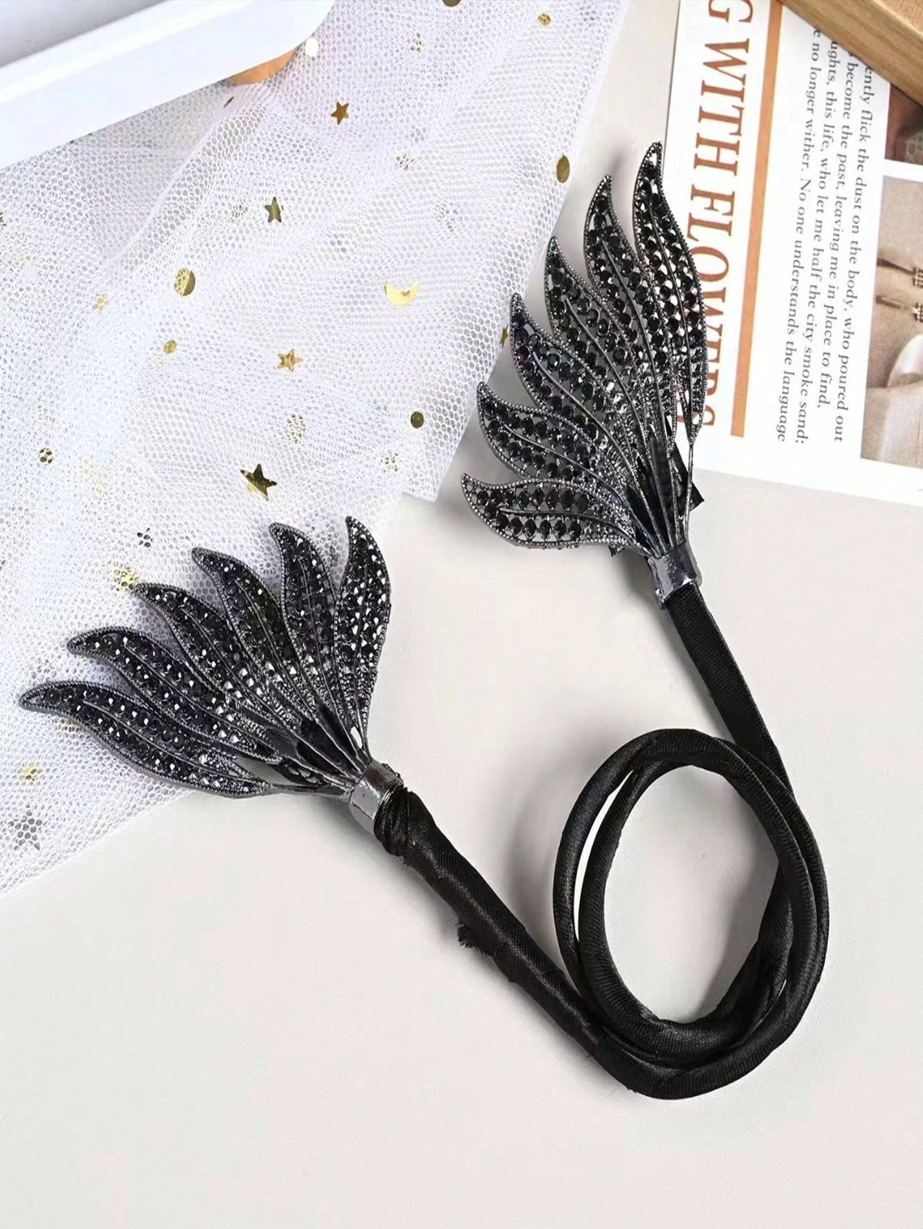 قطعة واحدة من صانعة كعكة الشعر المصنوعة من خليط معدني أسود للسيدات مع ديكور من حجر الراين، تسريحة شعر عاصي ملتوية بطول السماء