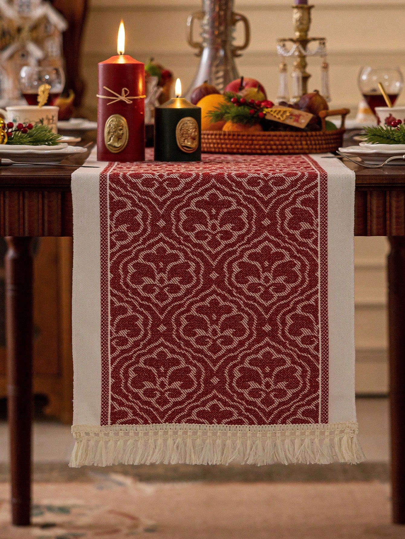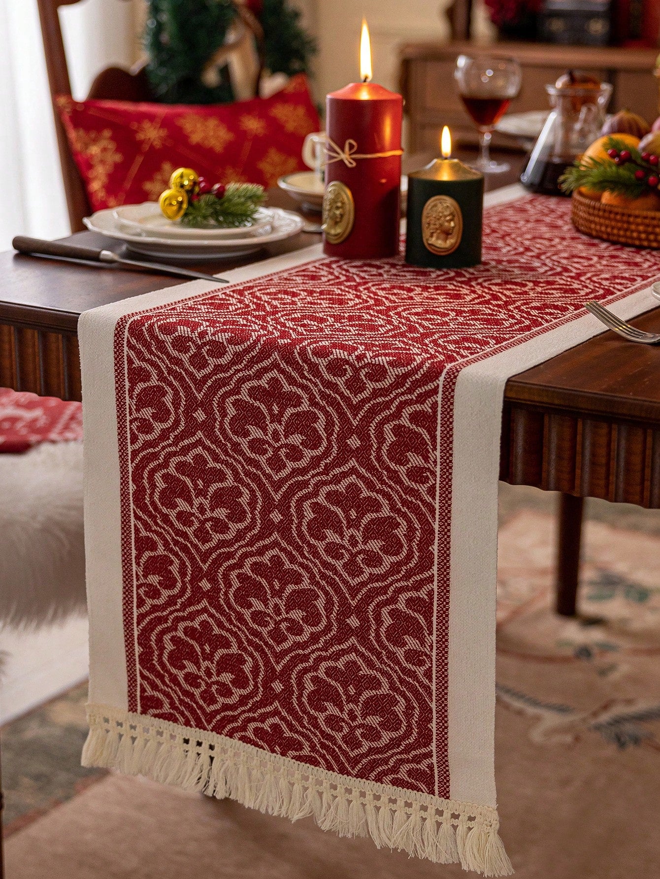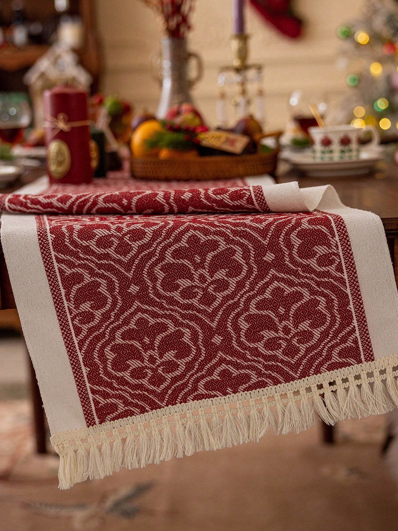 قطعة واحدة من غطاء طاولة مطرز بشراريب حمراء مقاوم للماء، ديكور المنزل والمطبخ وغرفة المعيشة