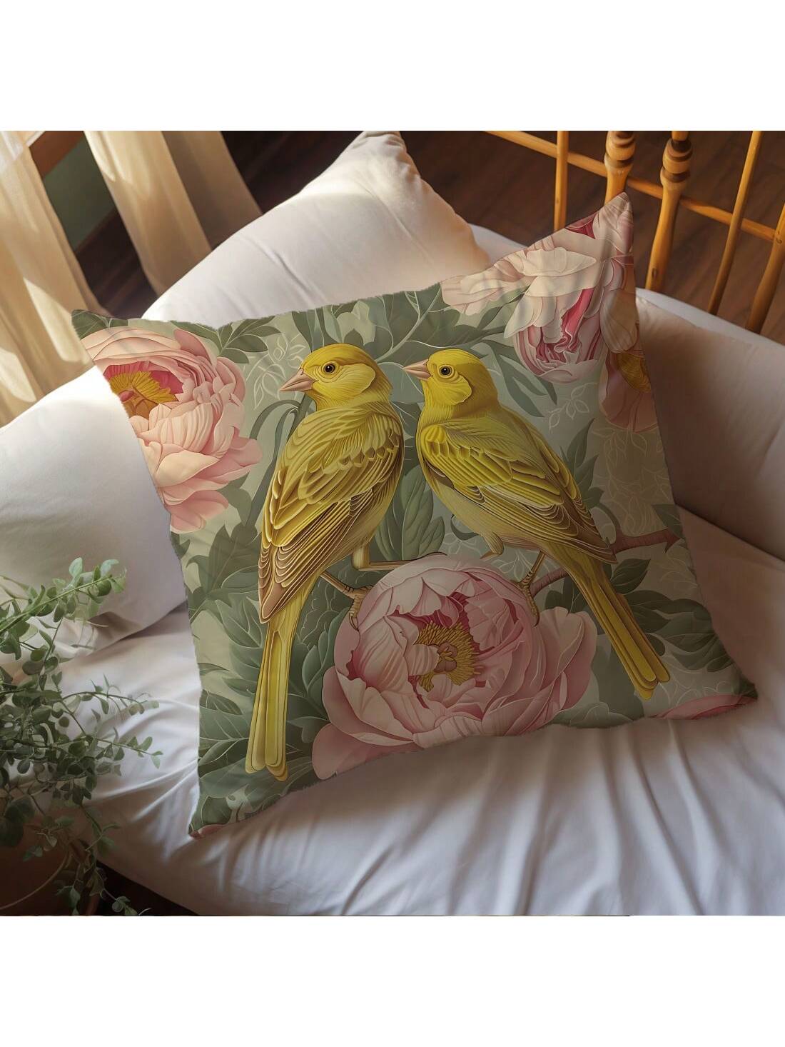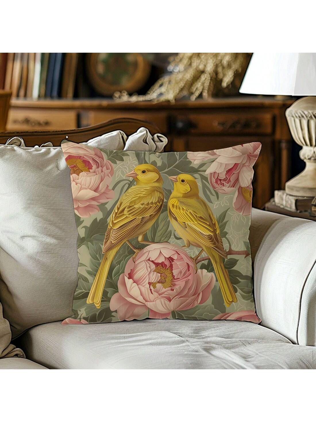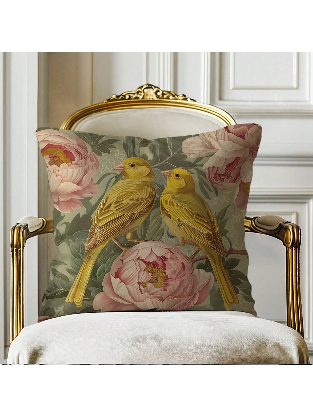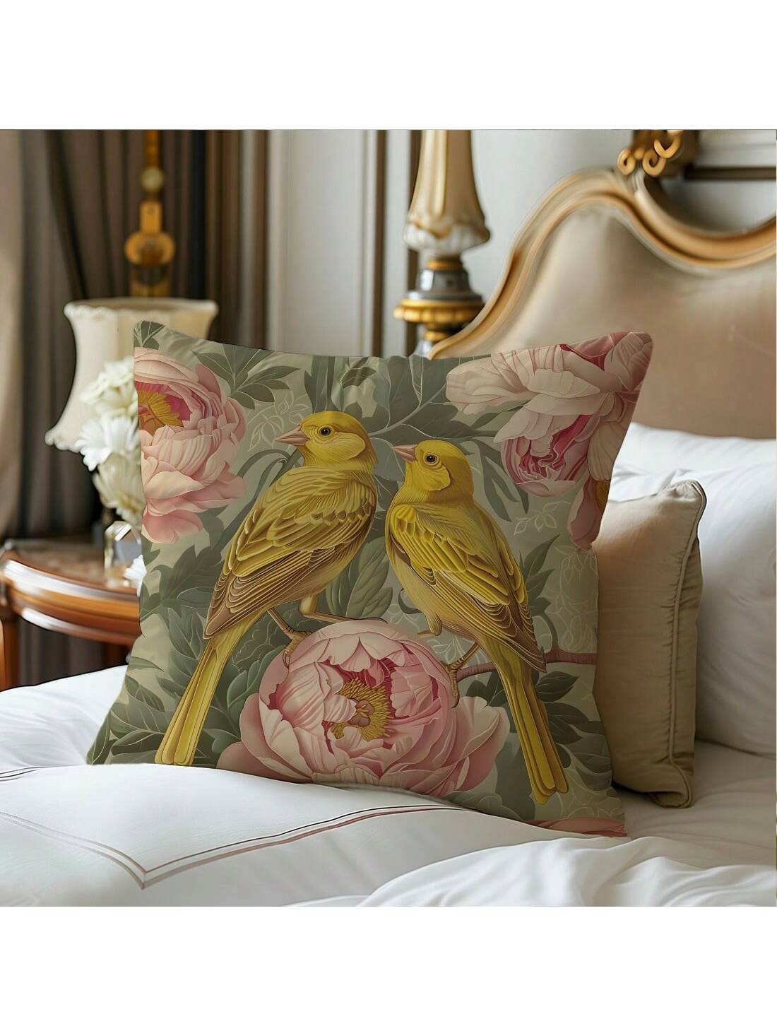 قطعة واحدة من غطاء وسادة مزخرف باللون الوردي الكناري الذهبي العتيق