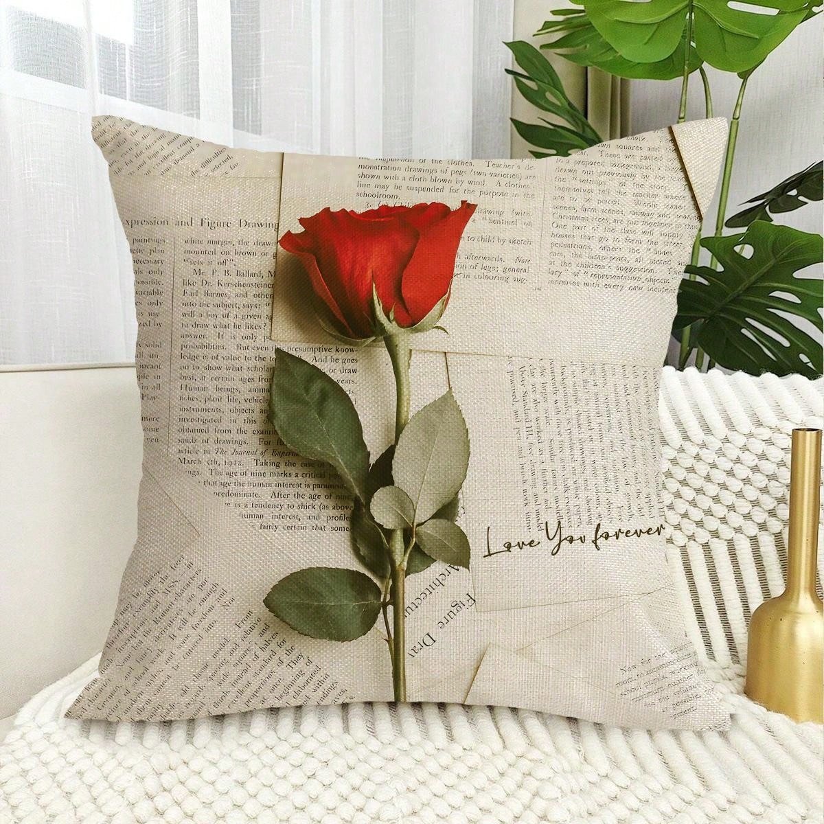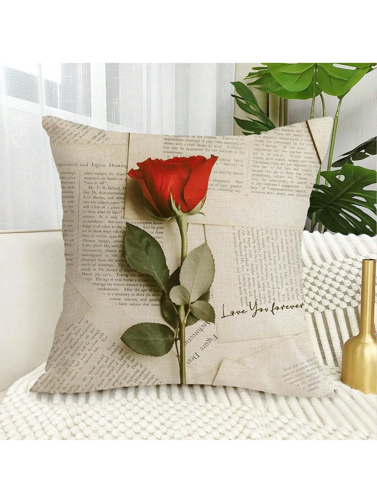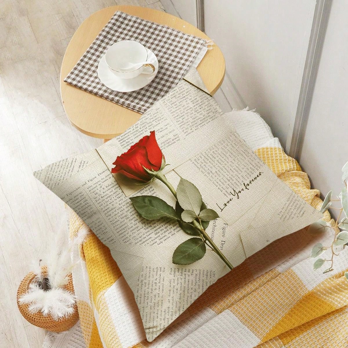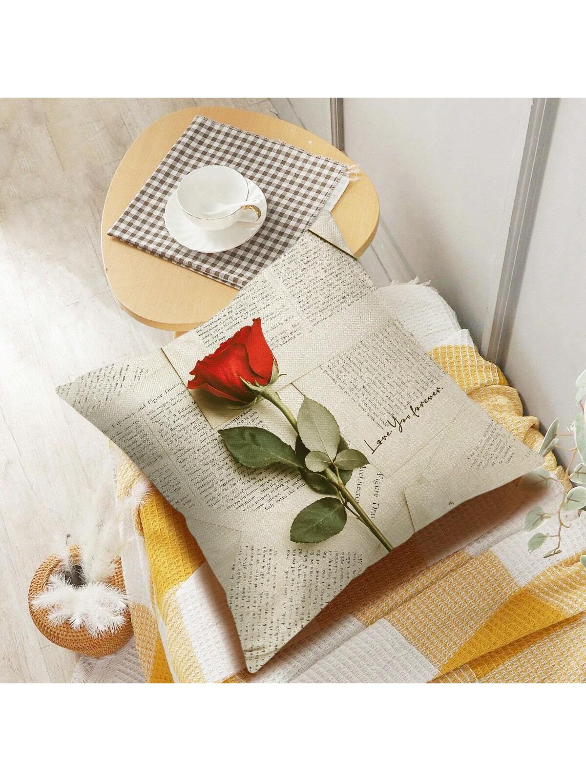 قطعة واحدة من غطاء وسادة من الكتان من جانب واحد بنمط الورد،