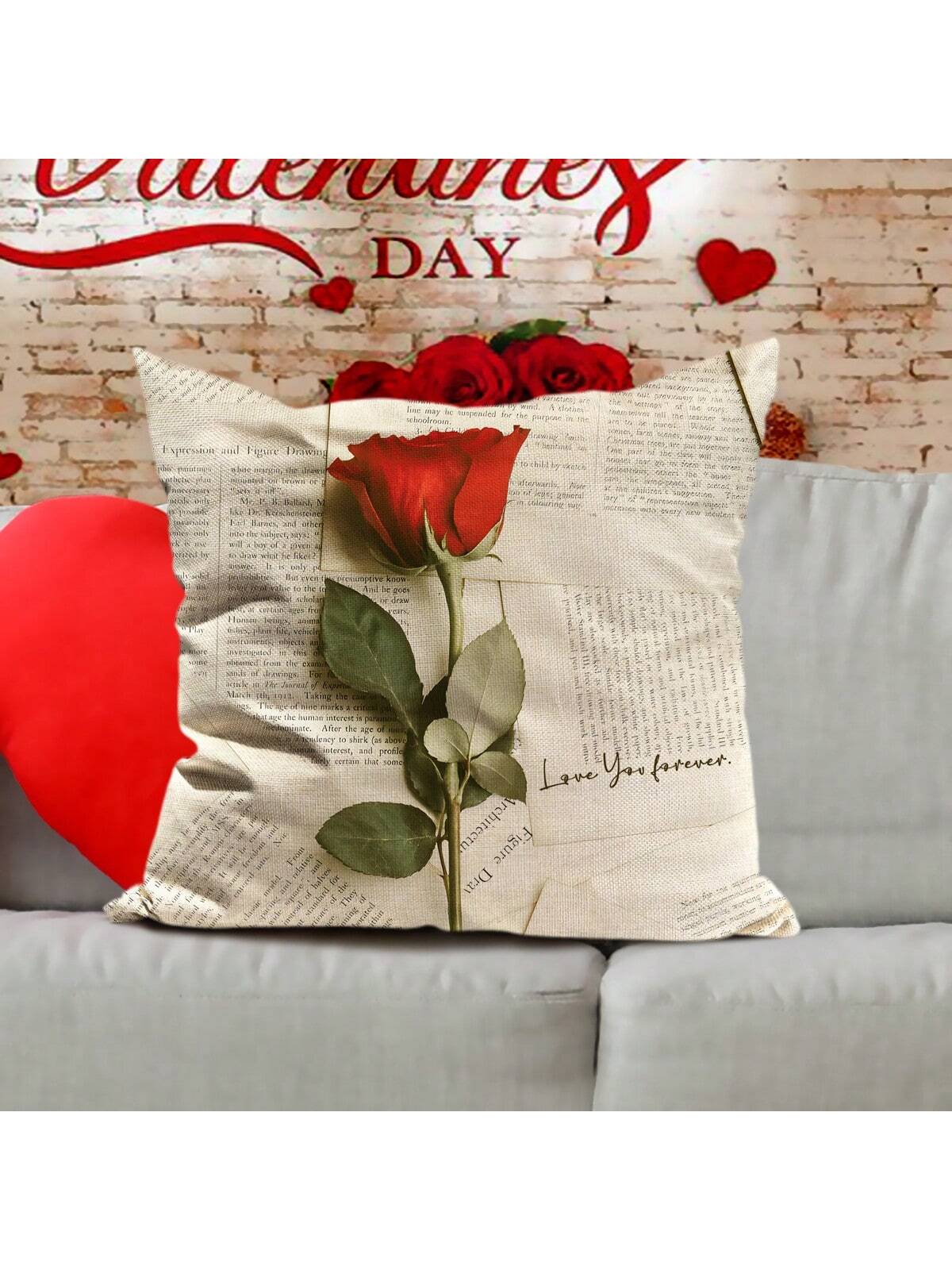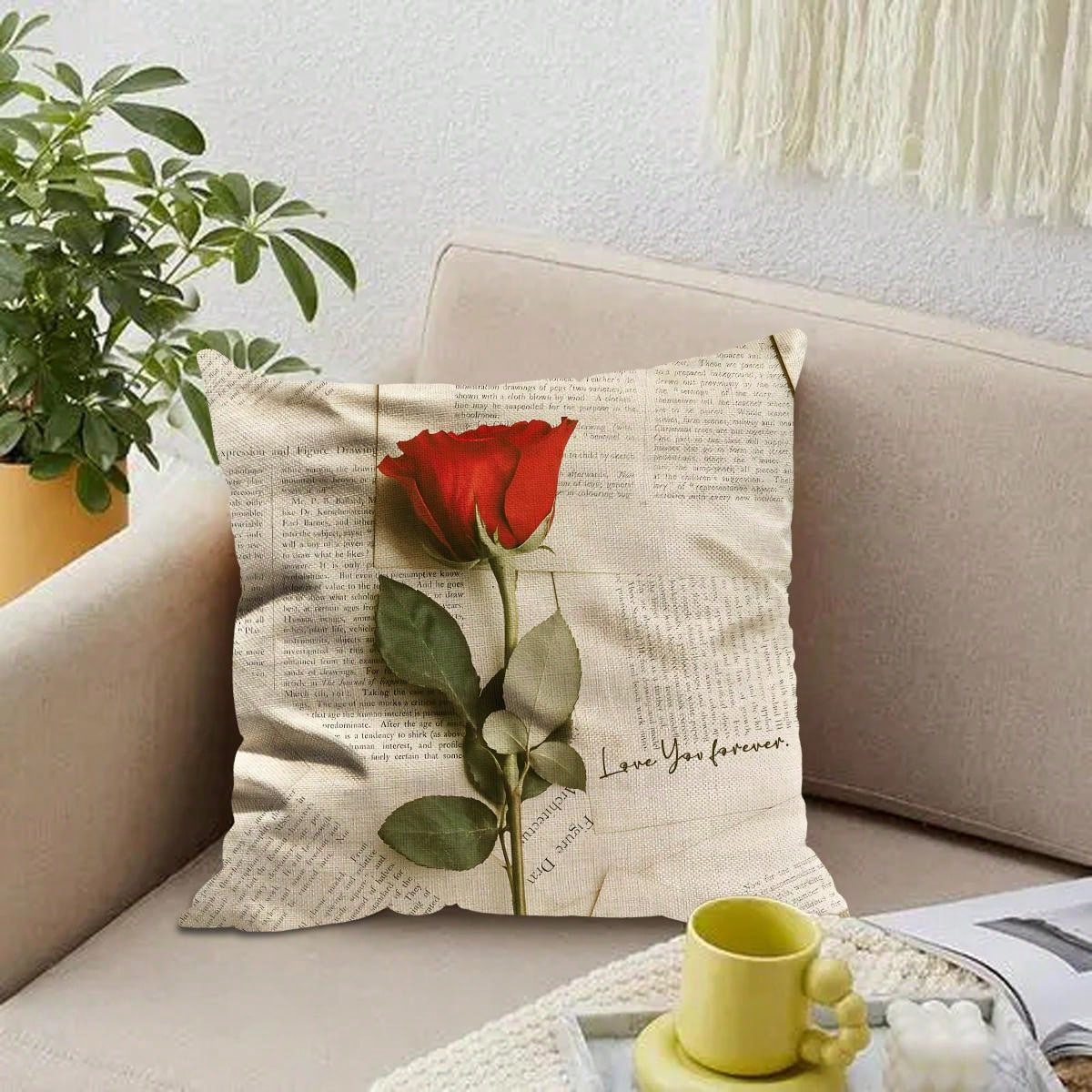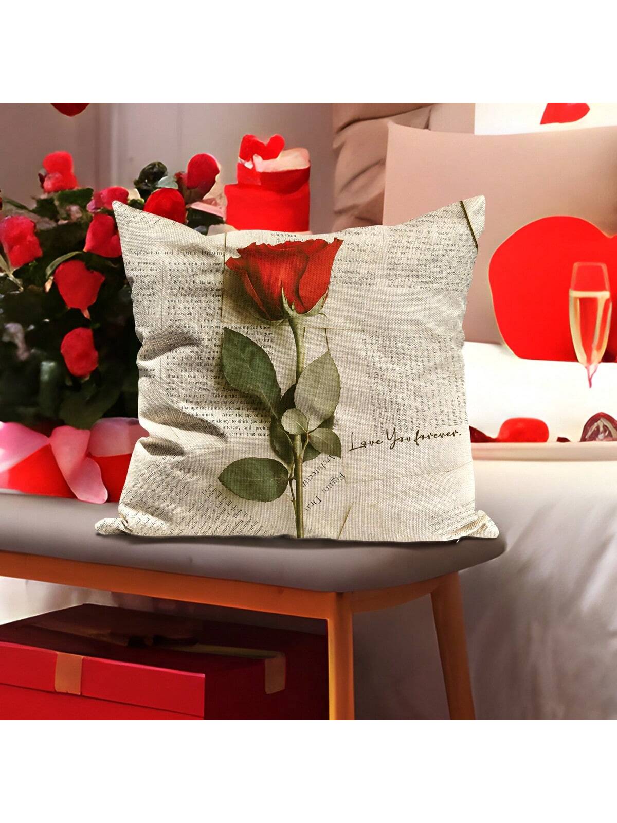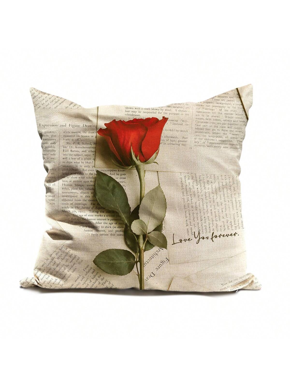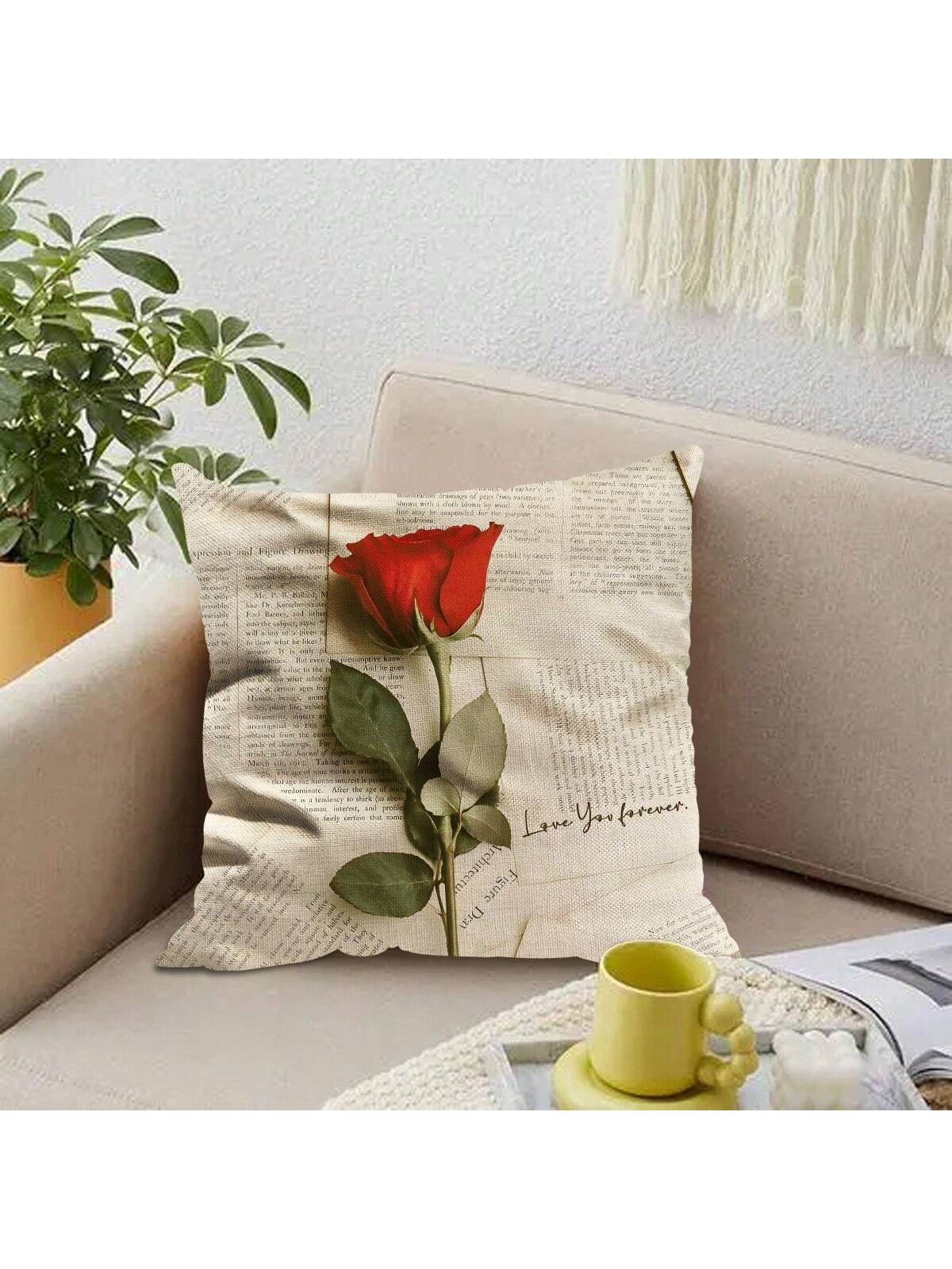 قطعة واحدة من غطاء وسادة من الكتان من جانب واحد بنمط الورد،