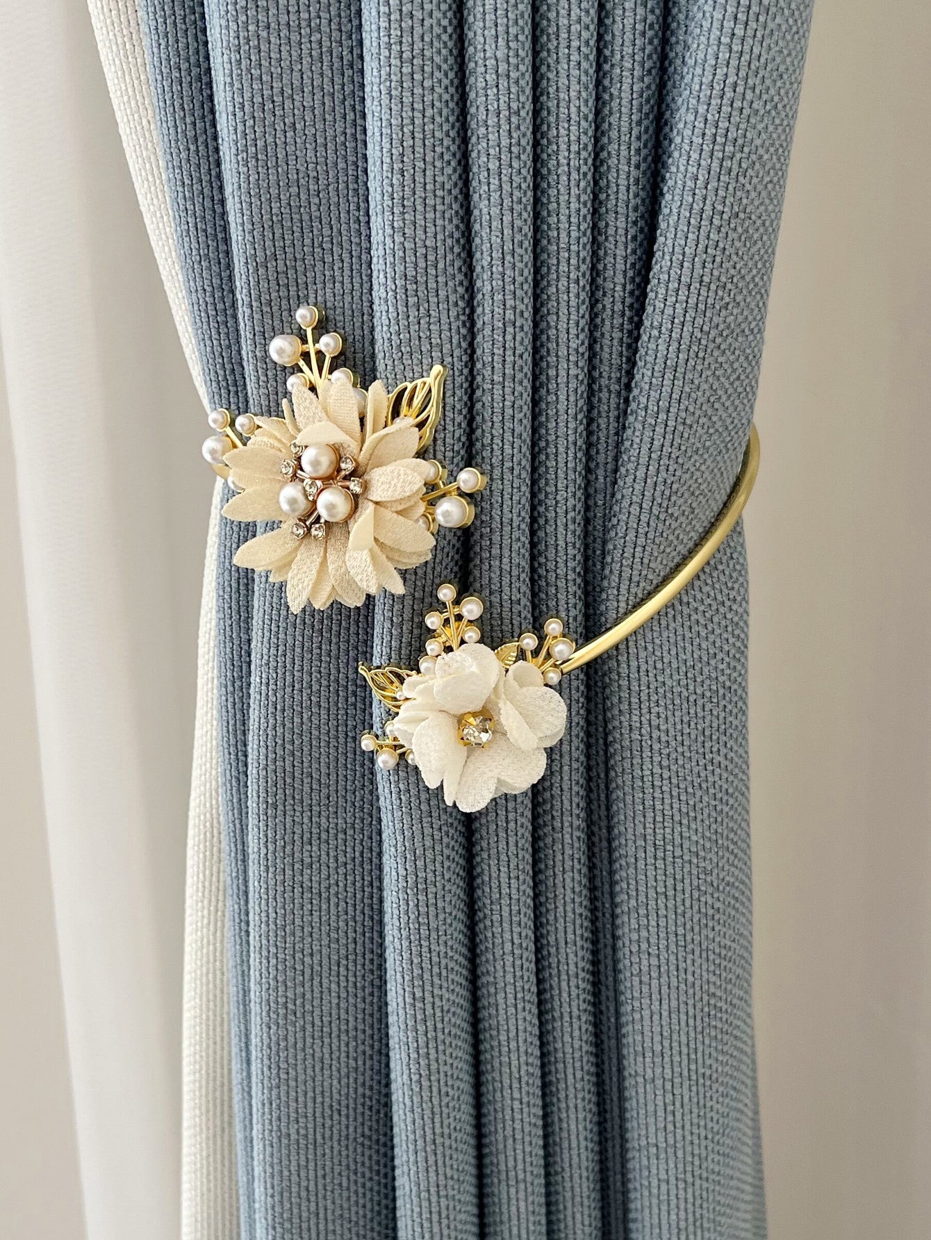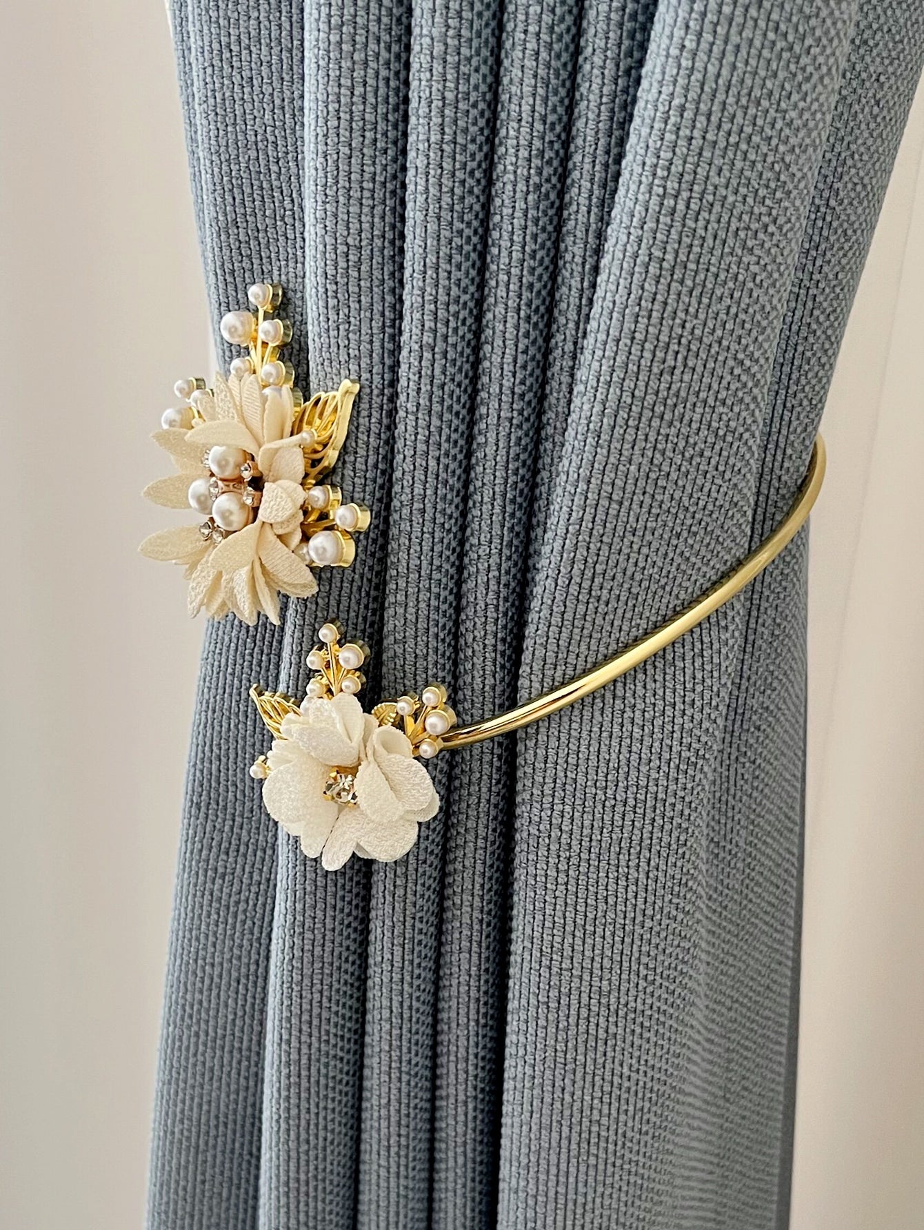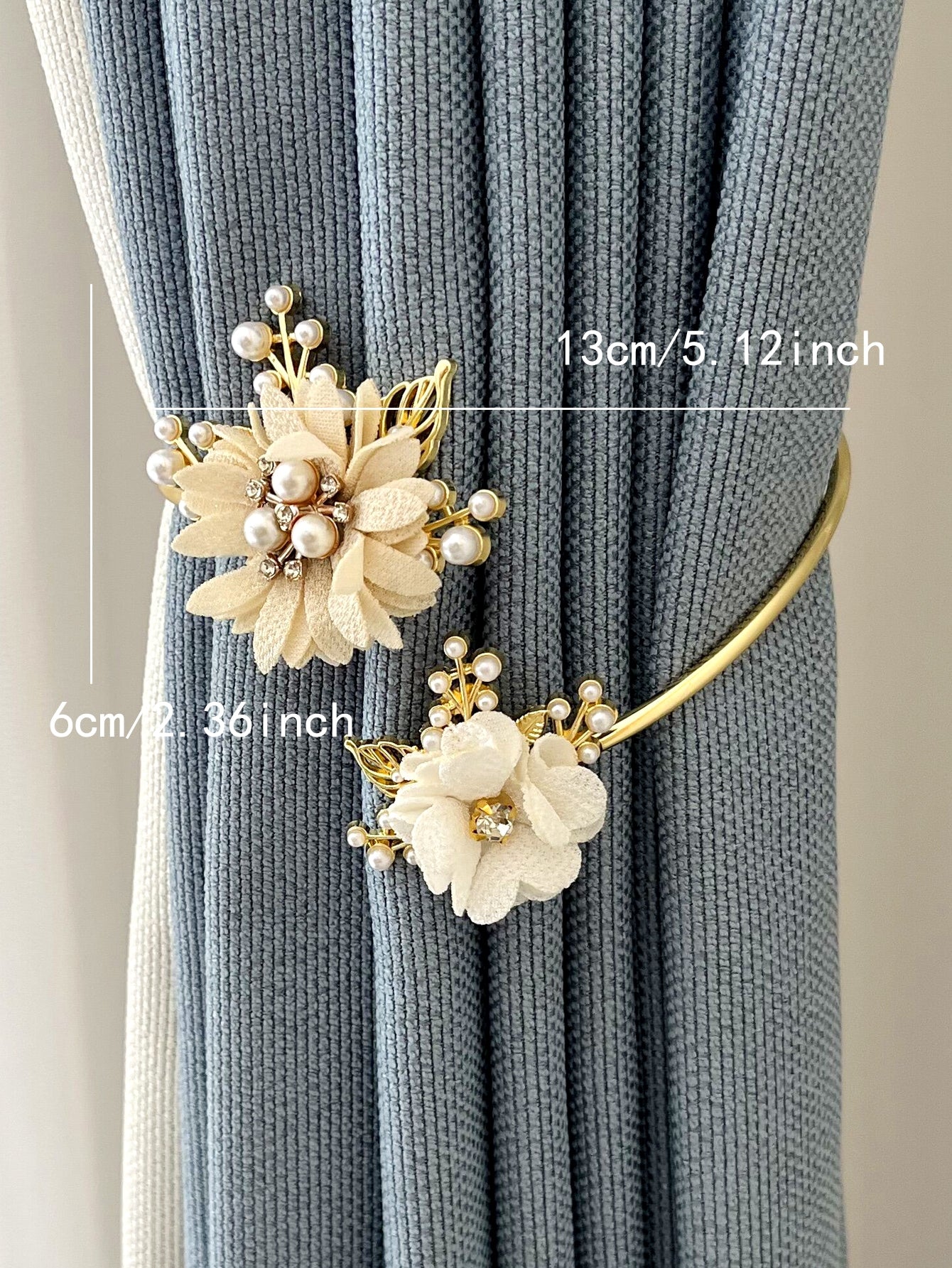 قطعة واحدة من مشبك ستارة النافذة من سبيكة فاخرة مع خرز اللؤلؤ الاصطناعي، لا يتطلب الحفر، رباط ستارة ناعم لغرفة المعيشة وغرفة النوم