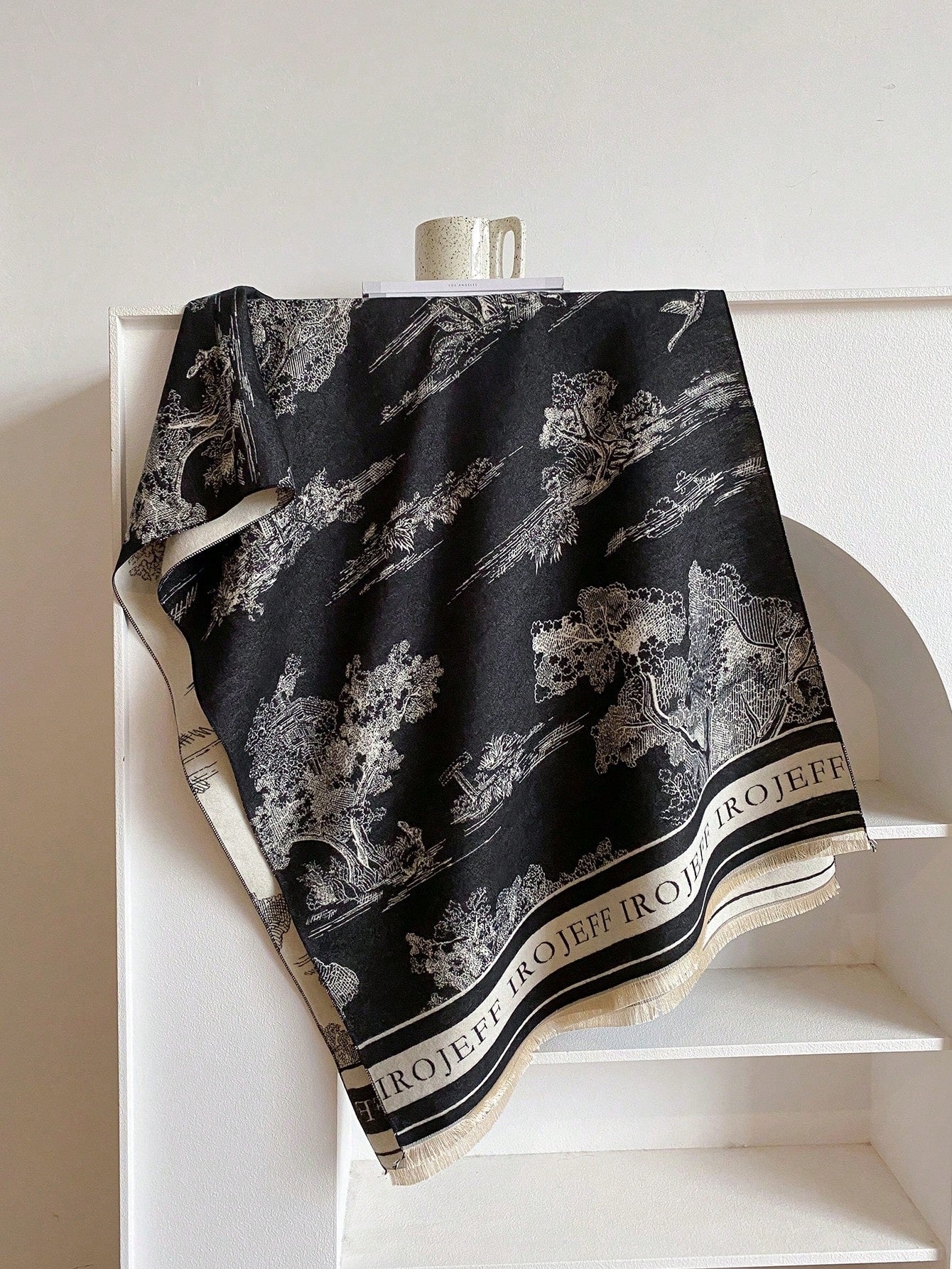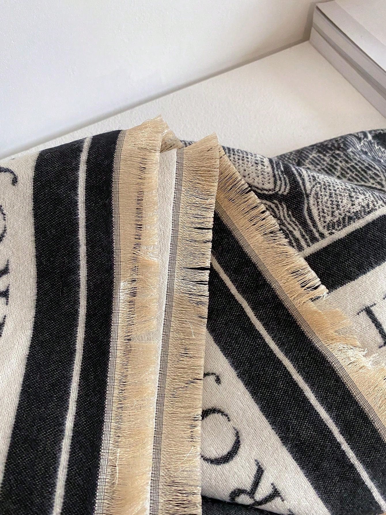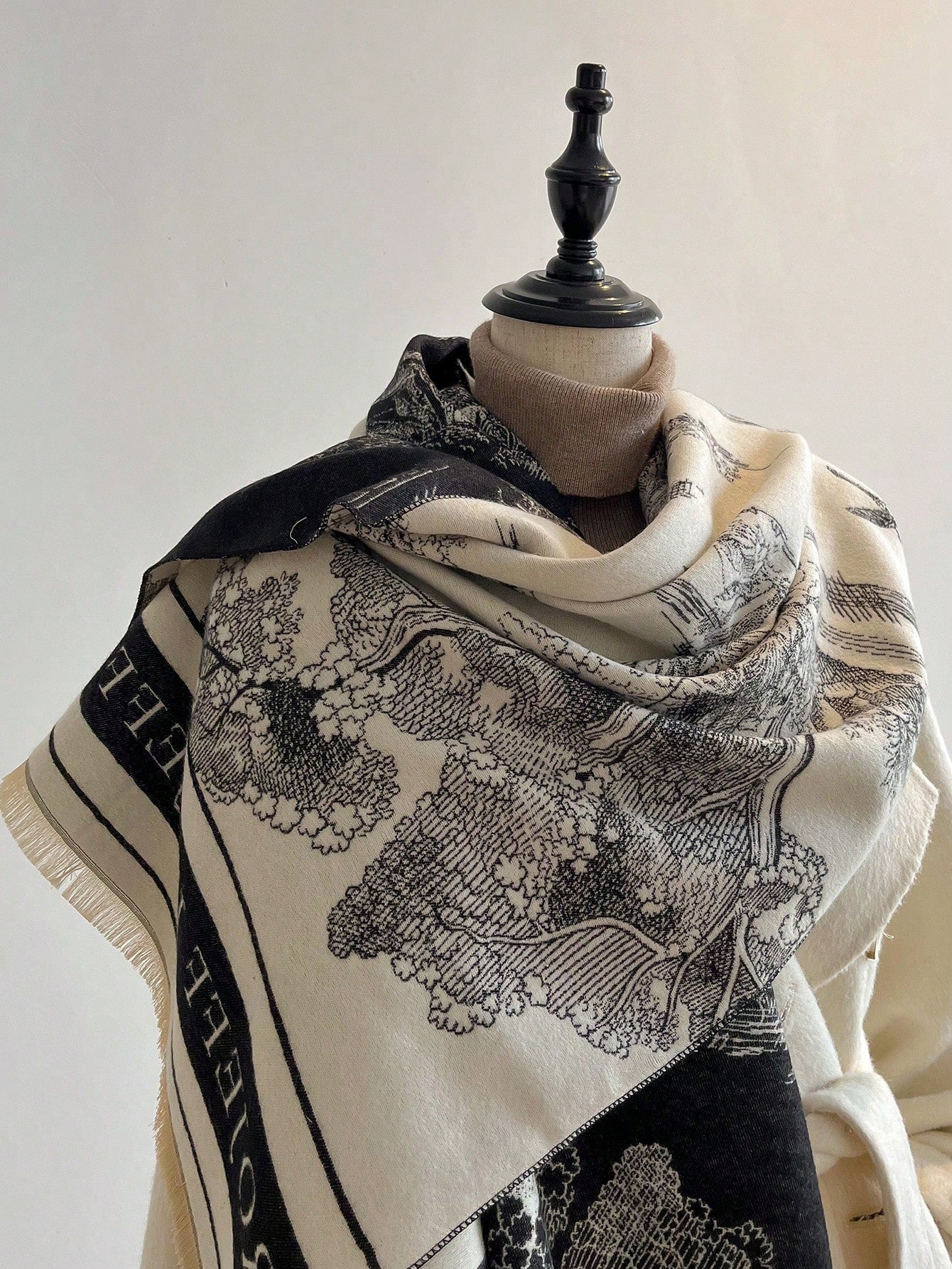 قطعة واحدة من وشاح الكشمير المقلد على الوجهين للسيدات منسوج بأنماط نباتية، شال للدفء في الخريف والشتاء، مناسب للاستخدام اليومي