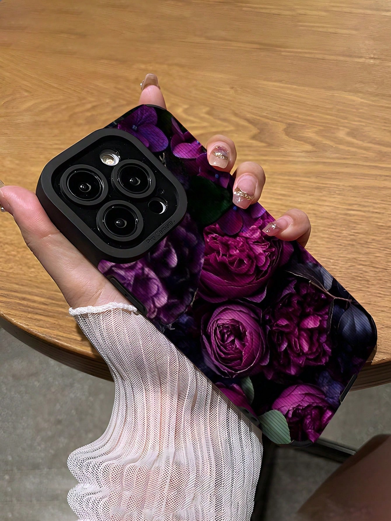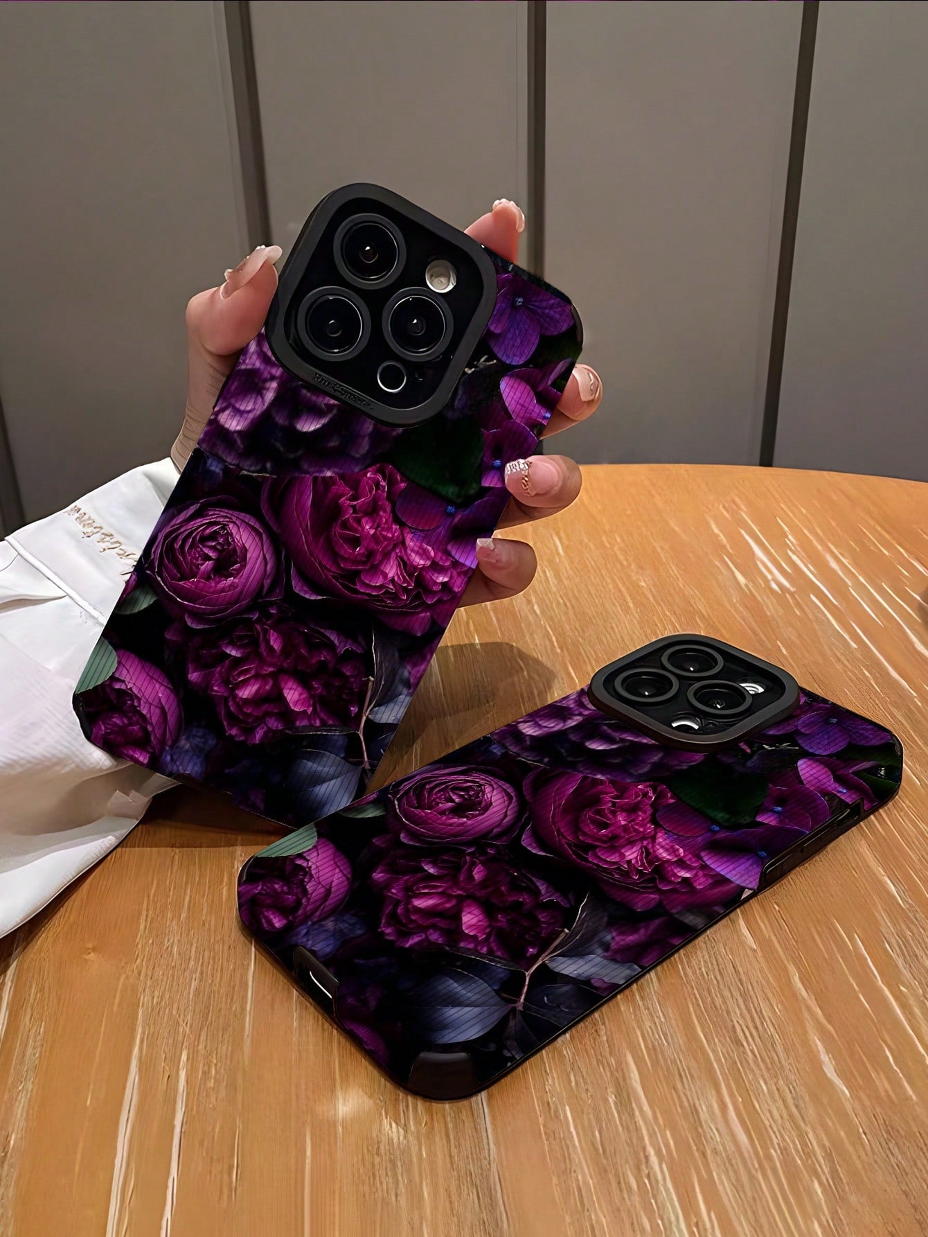 قطعة واحدة واقي هاتف من الجلد الناعم المقاوم للصدمات والمطبوع بزهرة الوردة البنفسجية