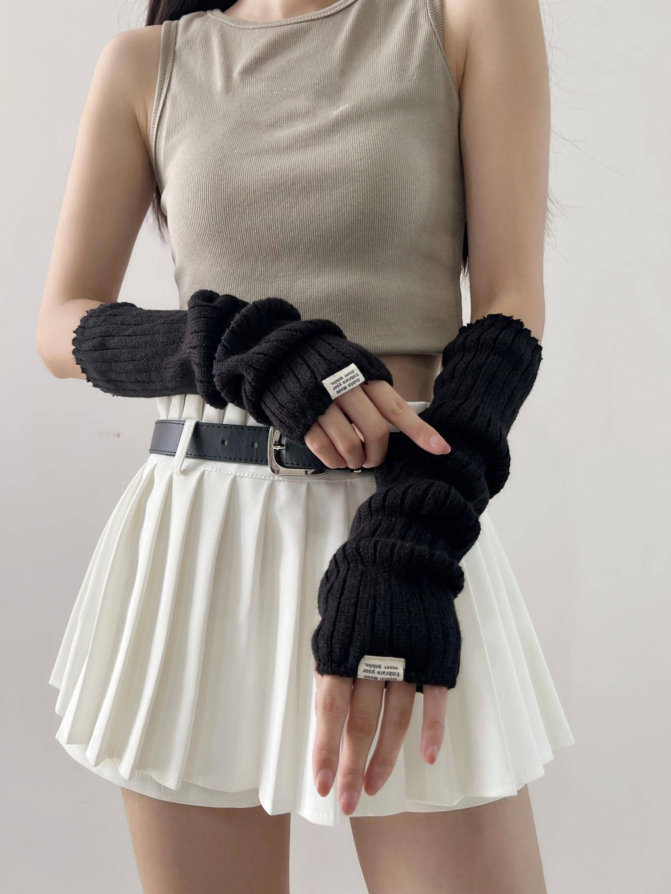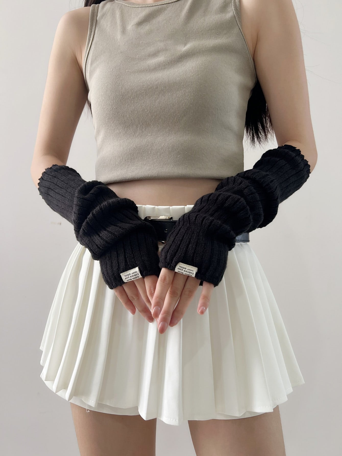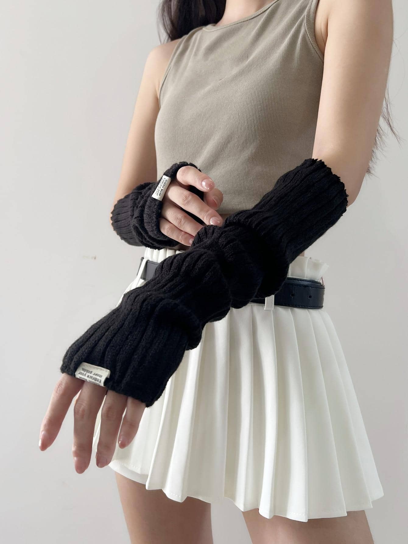 قفازات من الصوف طباعة شعار عصري بدون أصابع للنساء ، كم ذراع دافئ للوقاية من أشعة الشمس