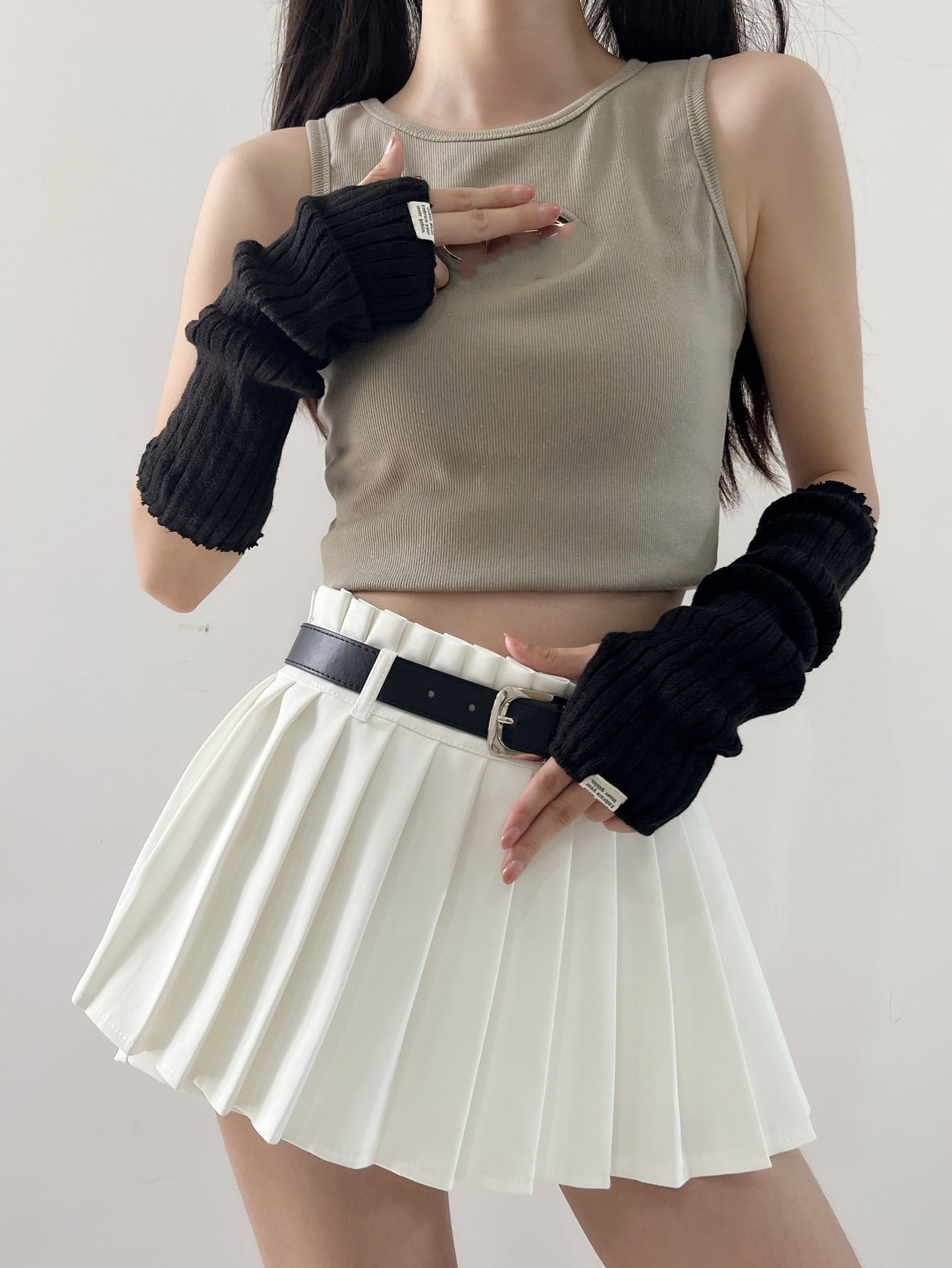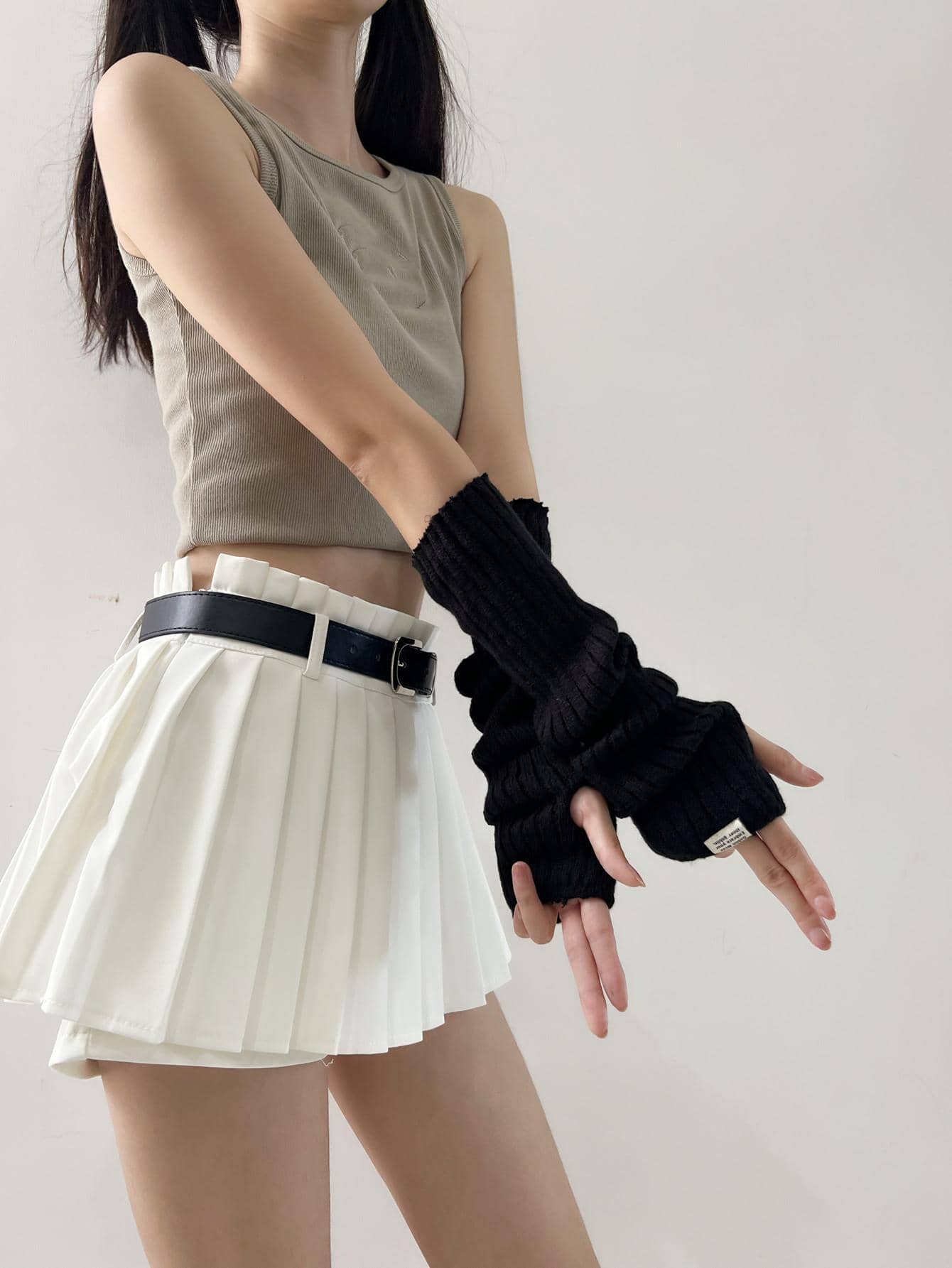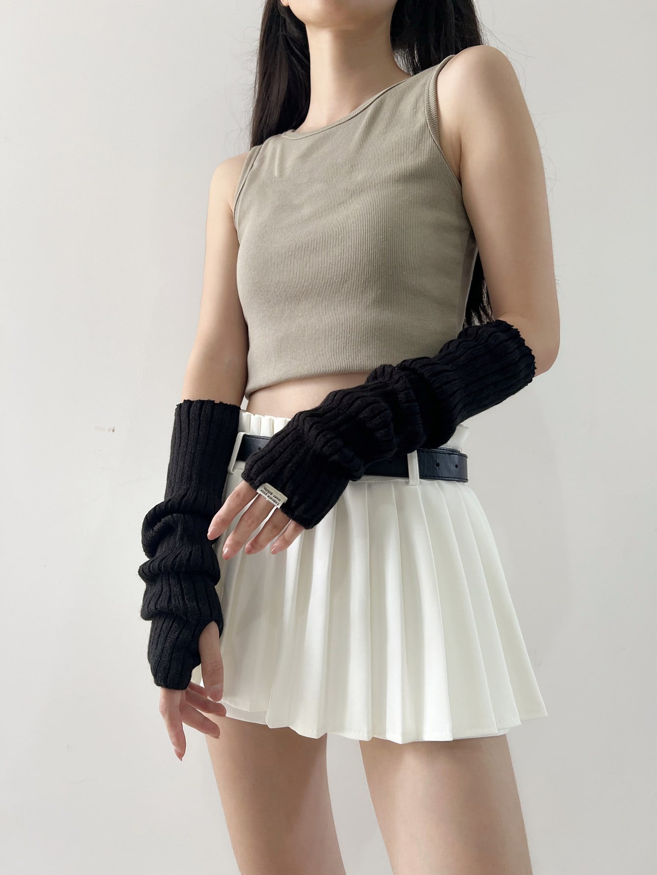 قفازات من الصوف طباعة شعار عصري بدون أصابع للنساء ، كم ذراع دافئ للوقاية من أشعة الشمس
