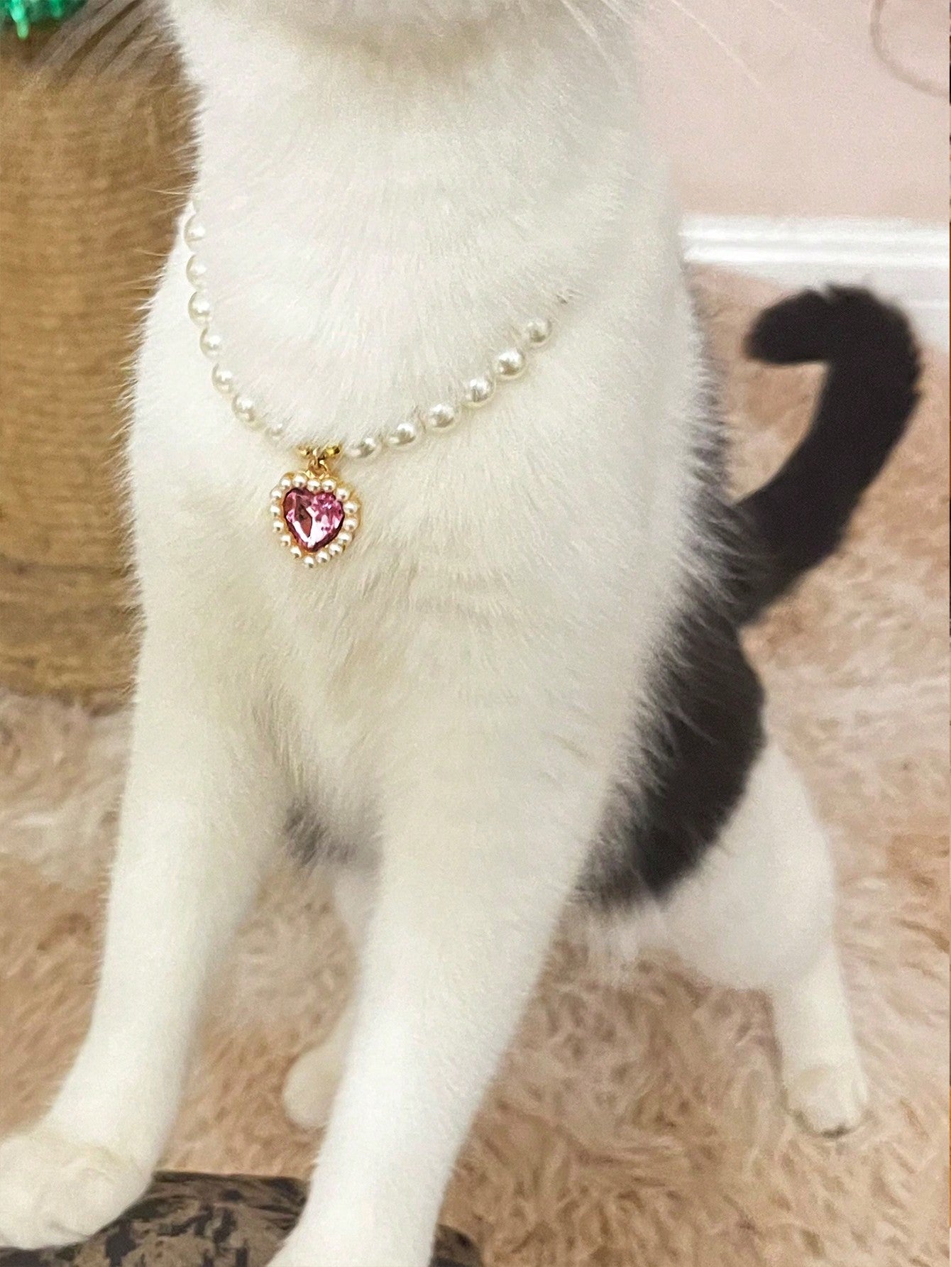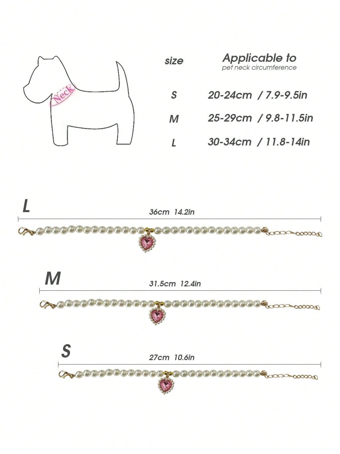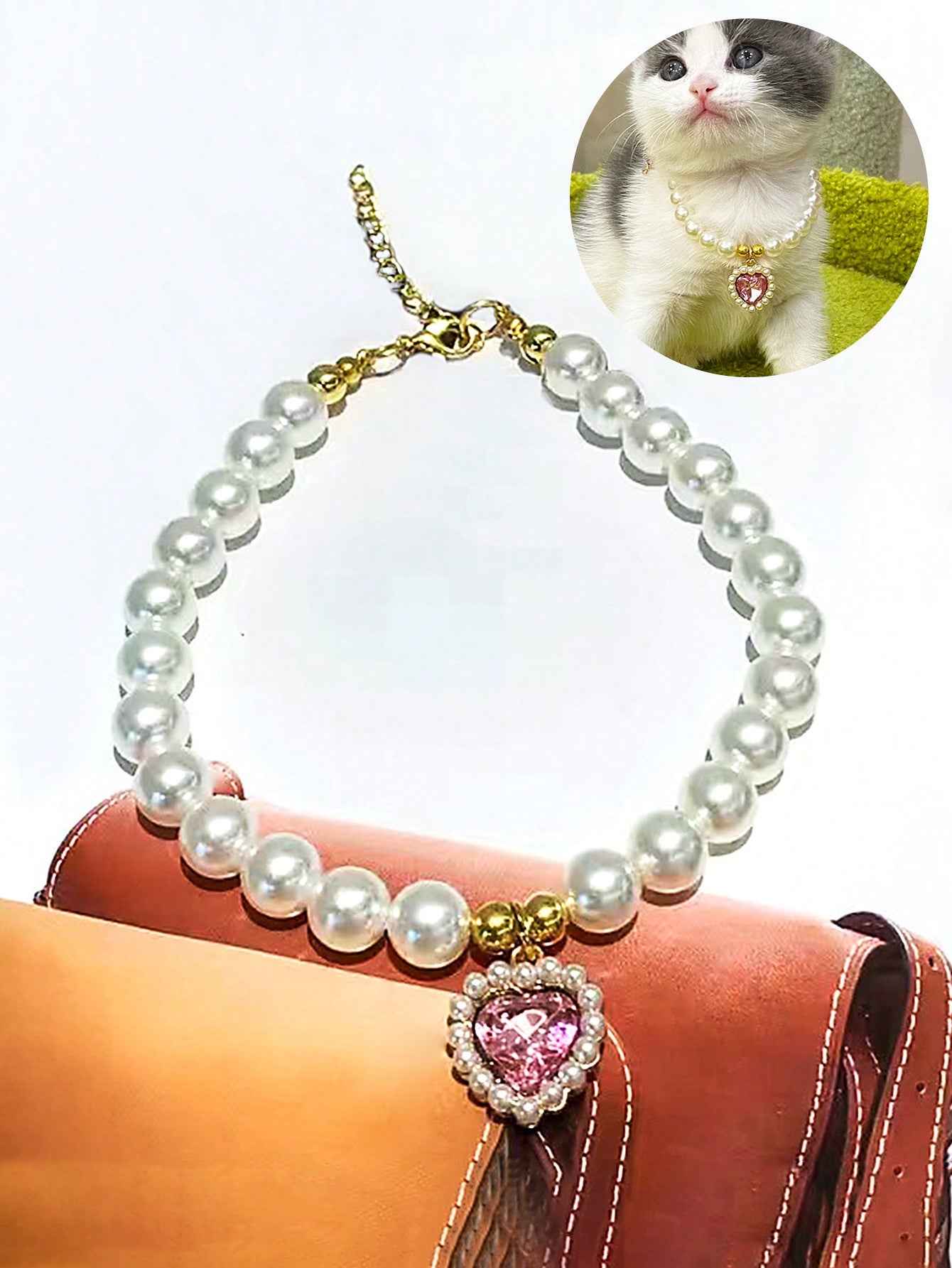 قلادة قلب الحيوانات الأليفة - طوق قابل للتعديل، يحتوي على لؤلؤ صناعي، يناسب الكلاب والقطط والحيوانات الصغيرة - إكسسوار عصري ومريح لحيوانك الأليف الحبيب