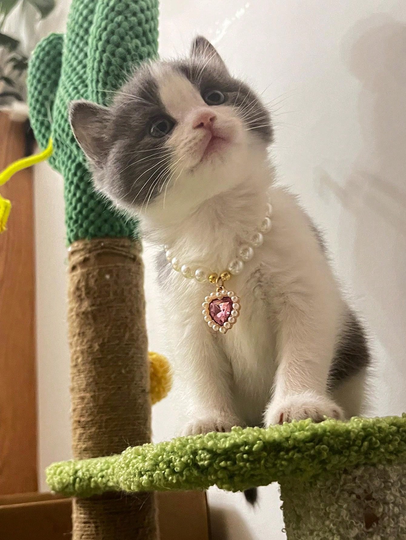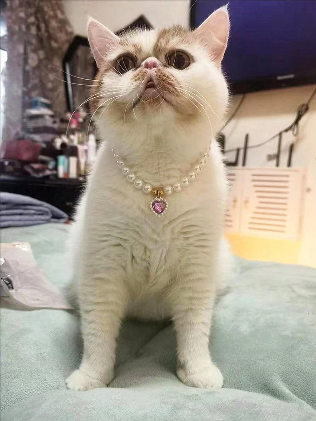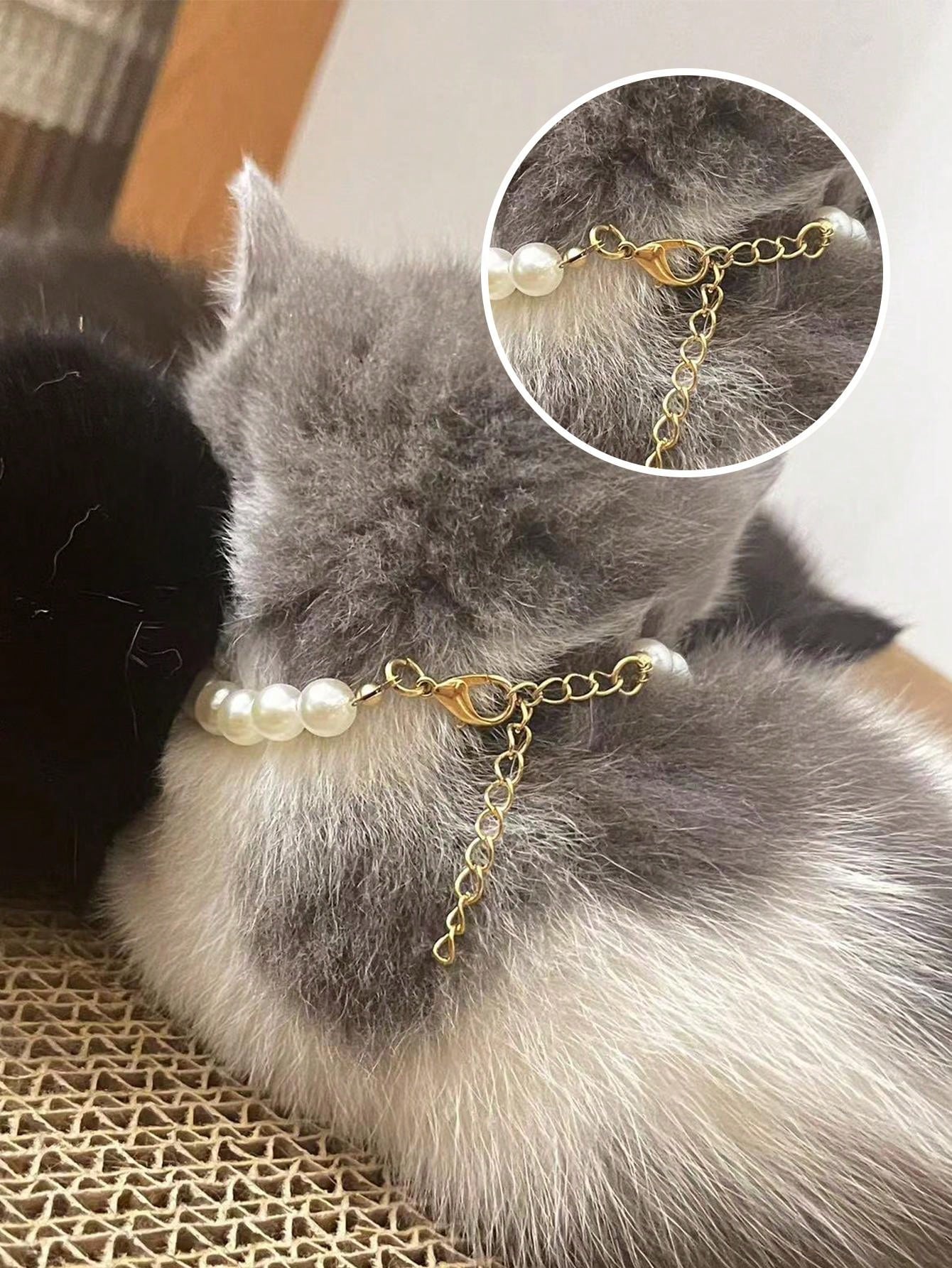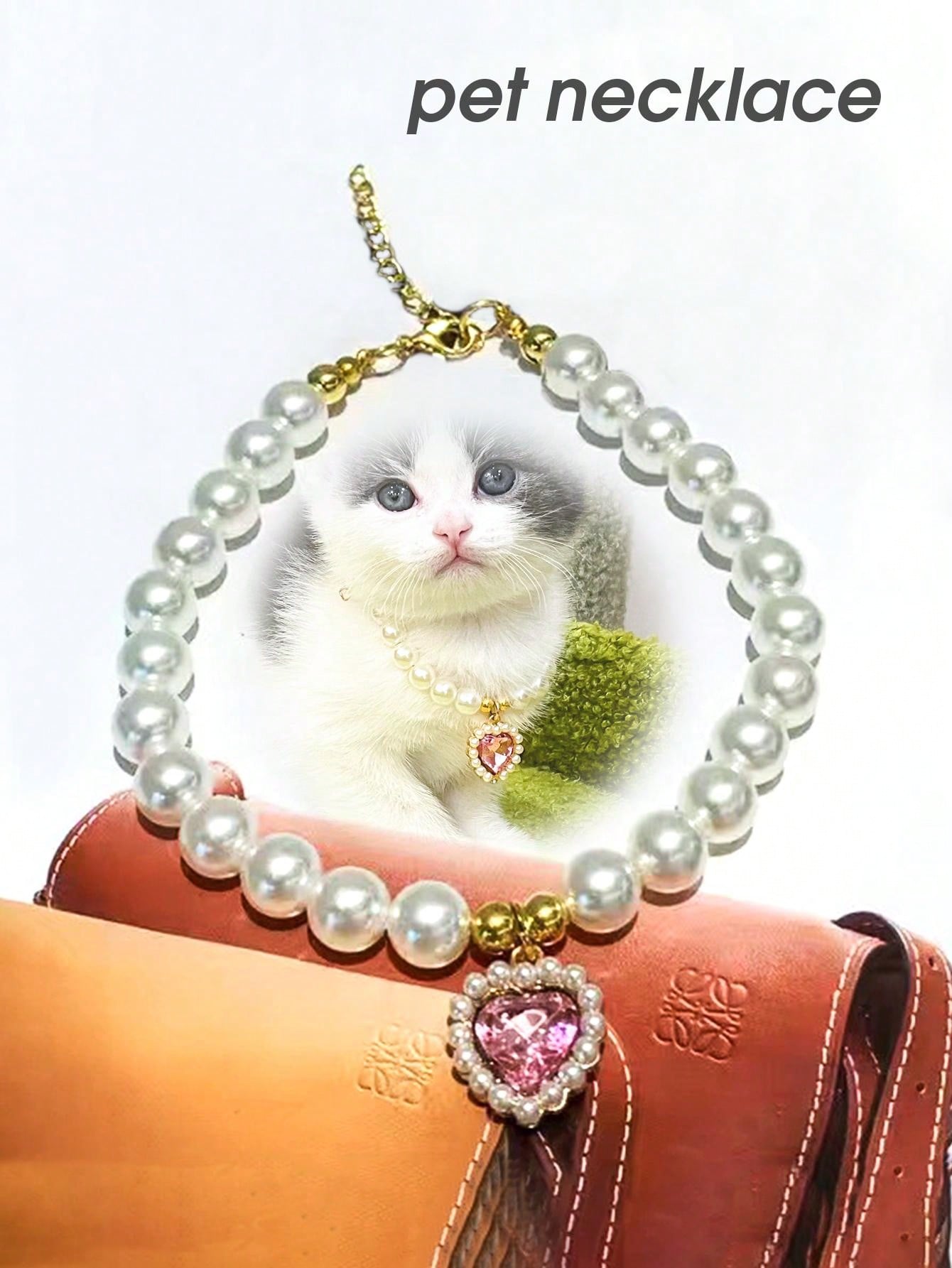 قلادة قلب الحيوانات الأليفة - طوق قابل للتعديل، يحتوي على لؤلؤ صناعي، يناسب الكلاب والقطط والحيوانات الصغيرة - إكسسوار عصري ومريح لحيوانك الأليف الحبيب