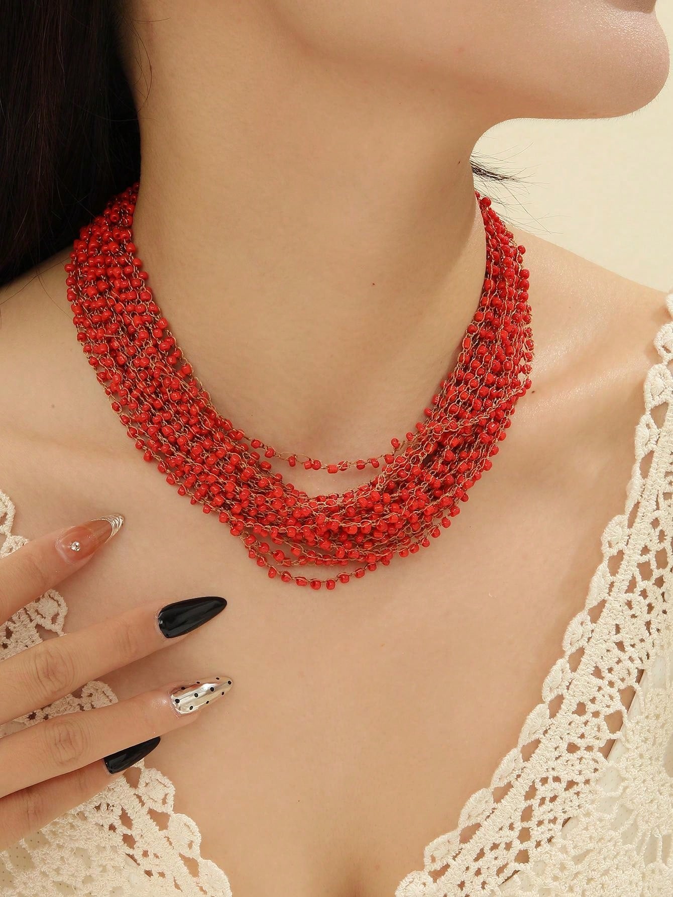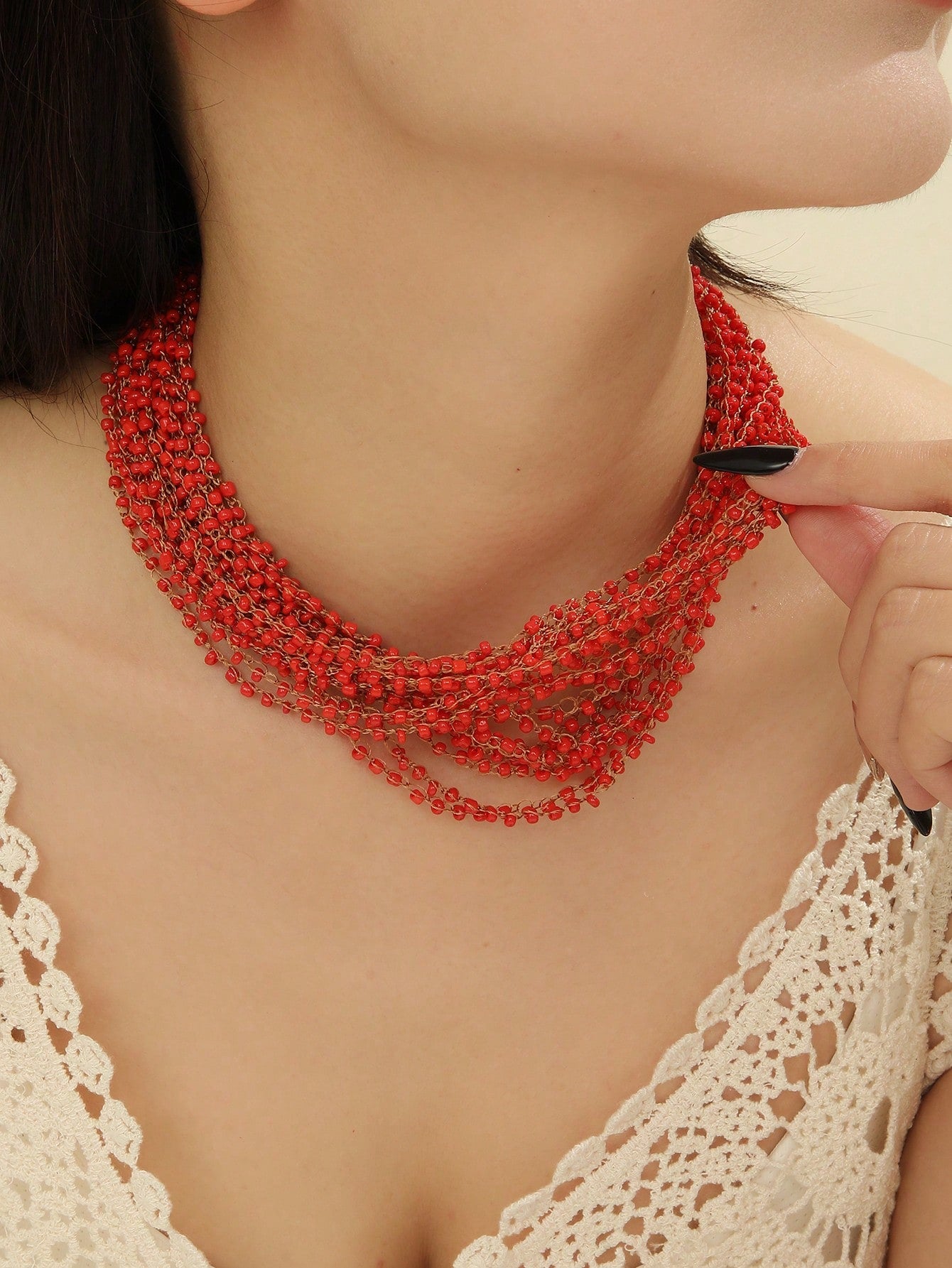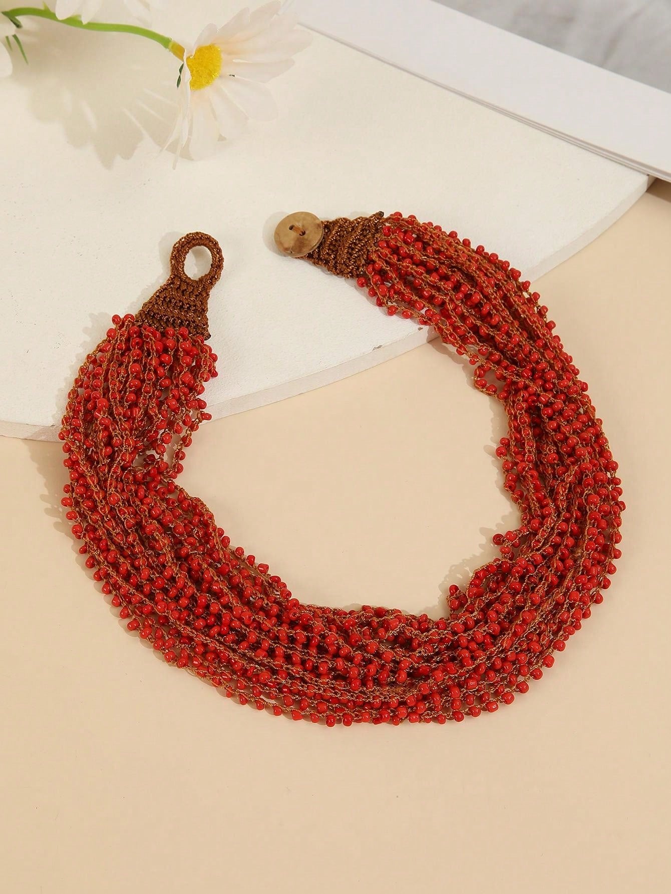 قلادة محبوكة ومزينة بالخرز مصنوعة يدوياً، بأسلوب بوهيمي وأسلوب شعبي في أوروبا وأمريكا