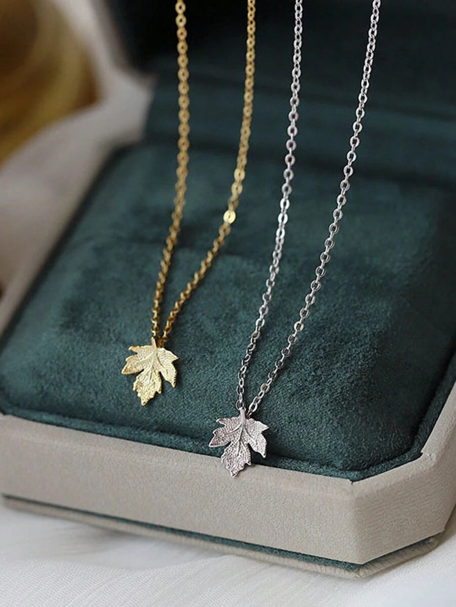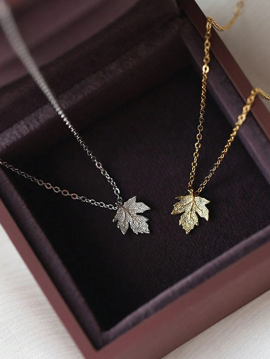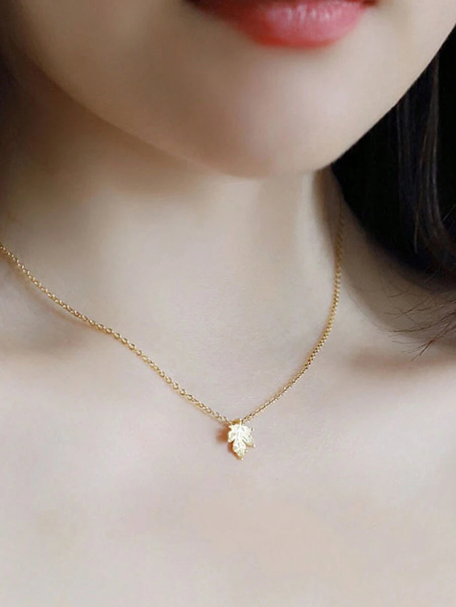 قلادة واحدة تصميم ورقة البلوط البسيط للنساء