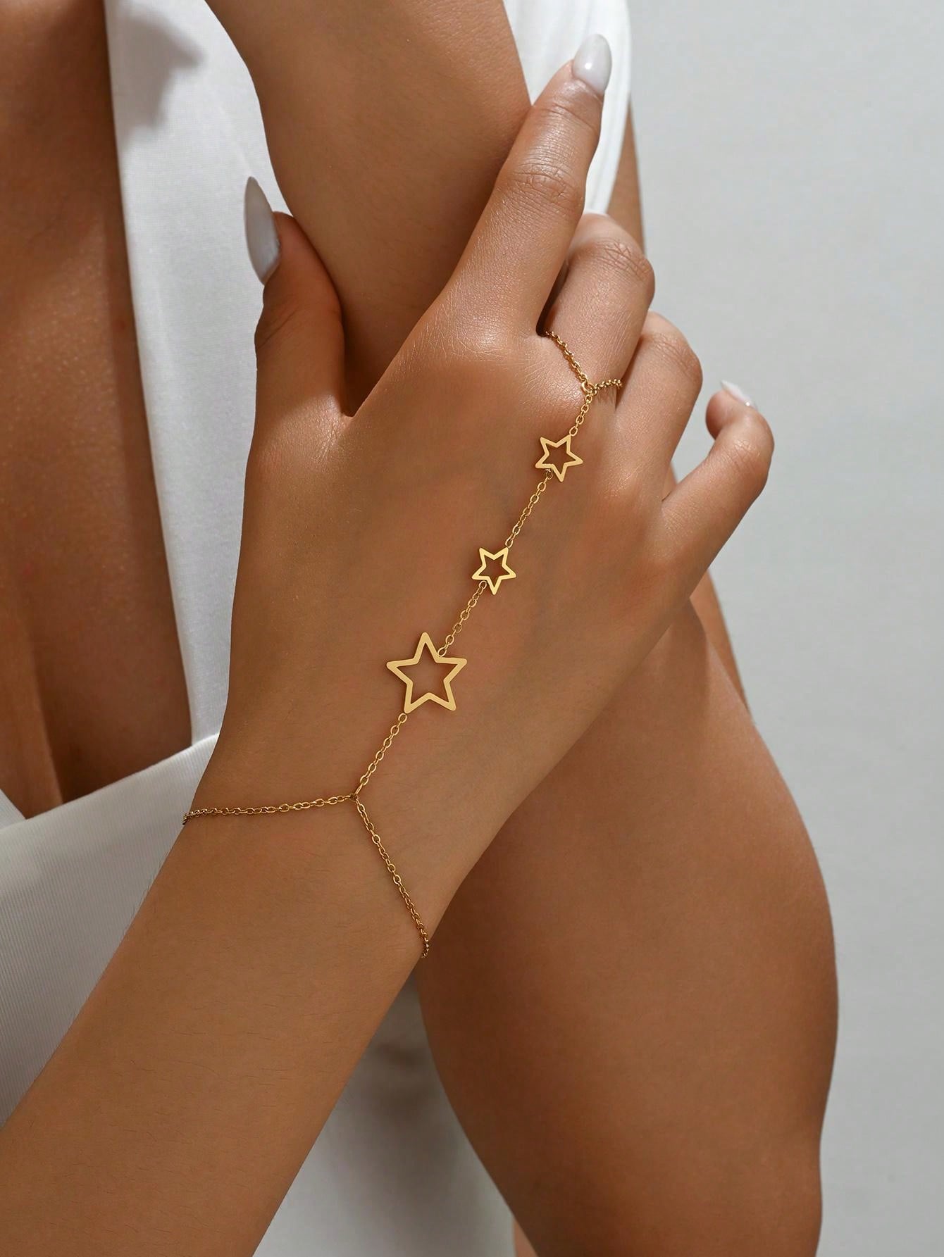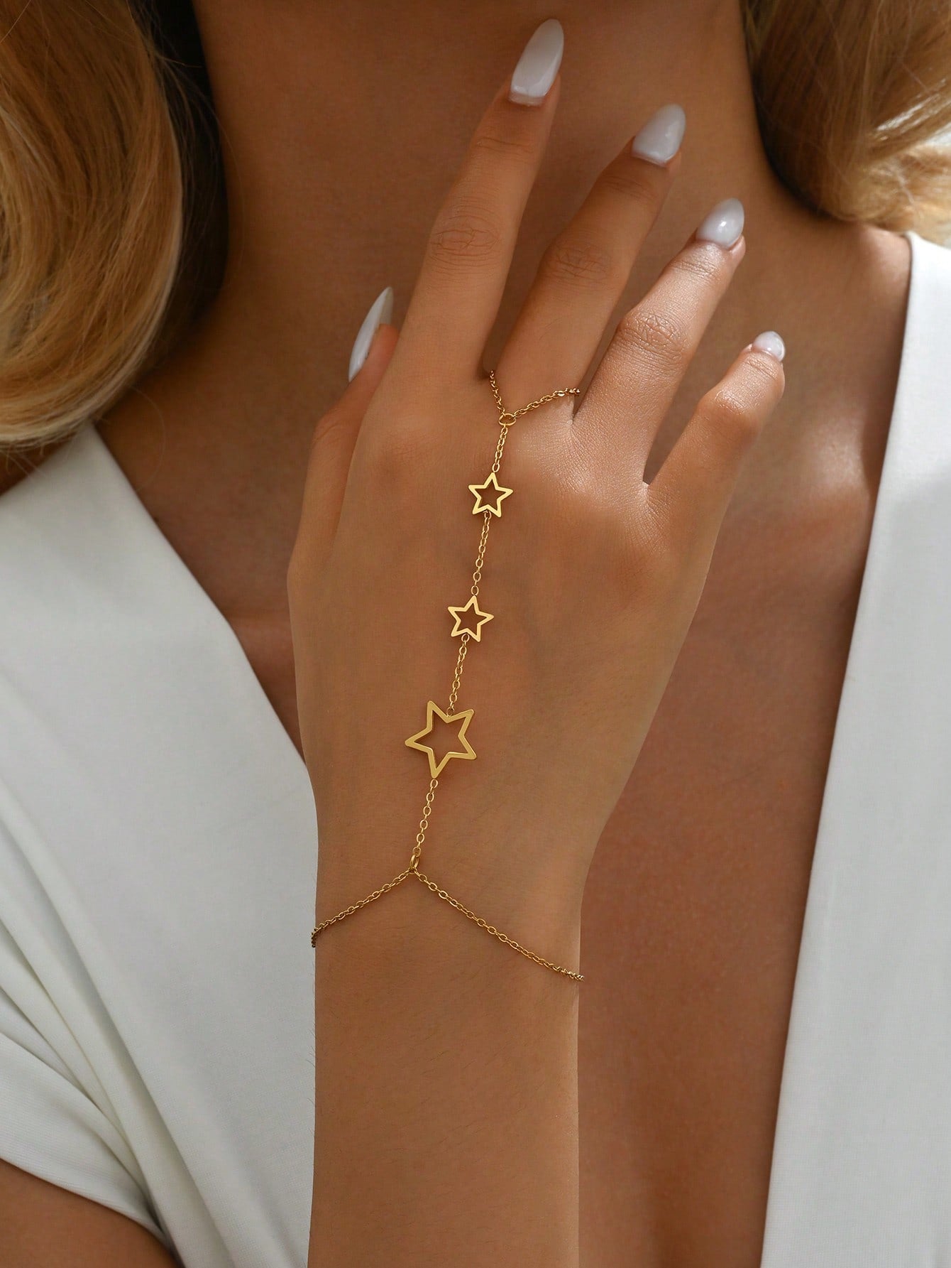 قلادة يد للنساء بتصميم نجوم صغيرة أصلية من الستانلس ستيل قطعة واحدة