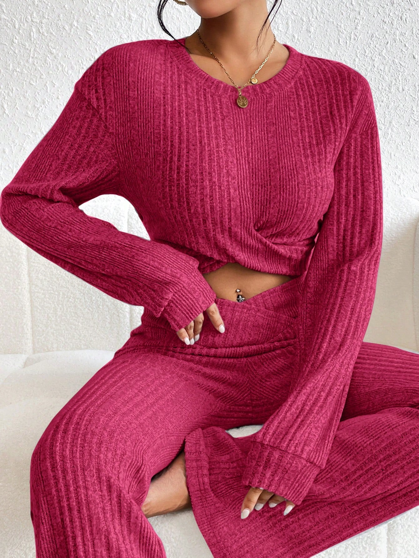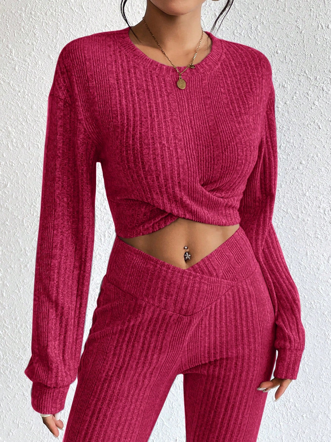 قميص ثقيل قصير موحدة اللون منخفض الاكتاف متقاطع
