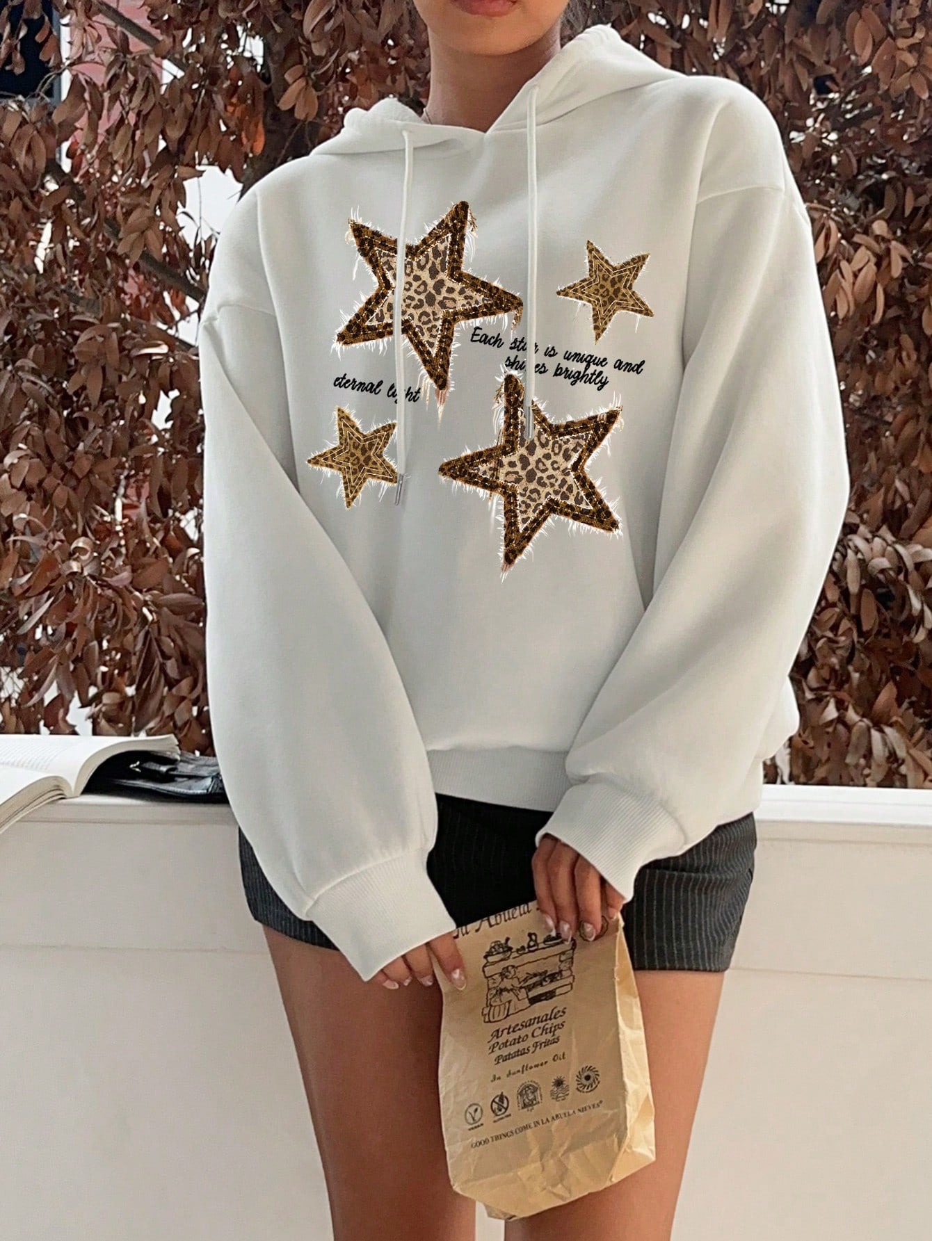 قميص ثقيل هودي نسائي فضفاض مصنوع من قماش لامع سميك بنقوش نمر وكوكب، بدون رسومات بتصميم بسيط عصري