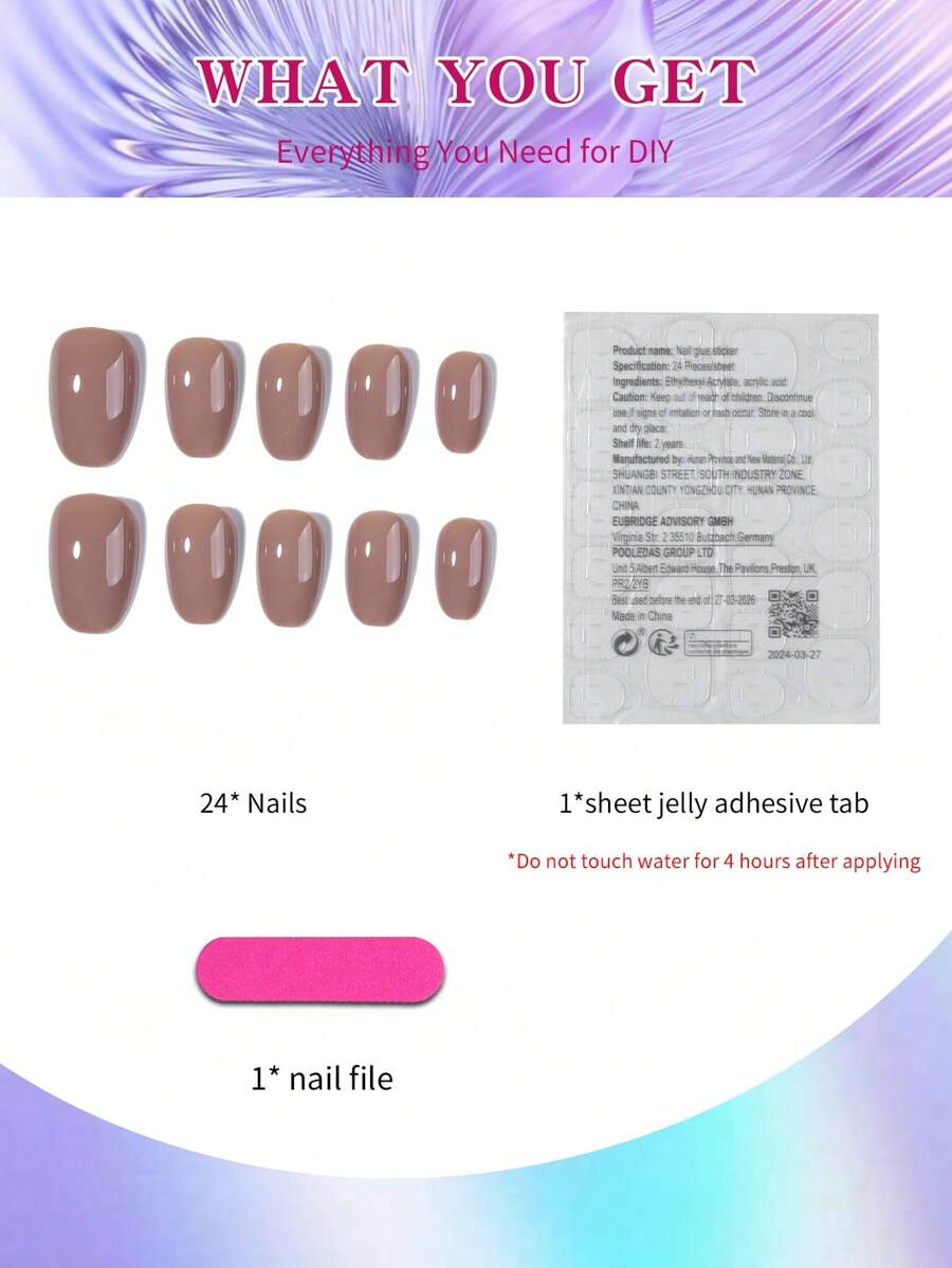 أظافر مزيفة أكريليكية بشكل بيضاوي قصير ناعم 24 قطعة