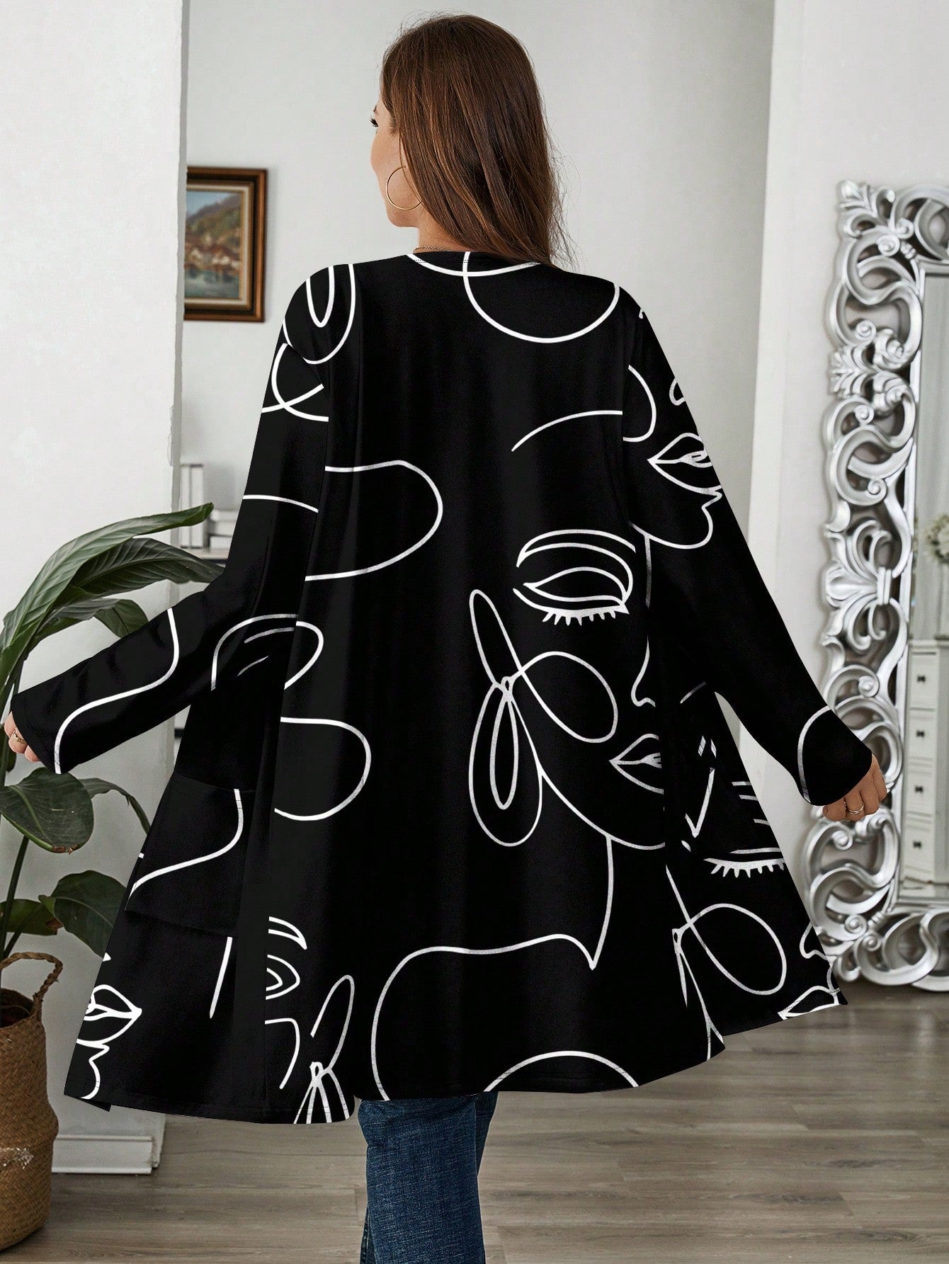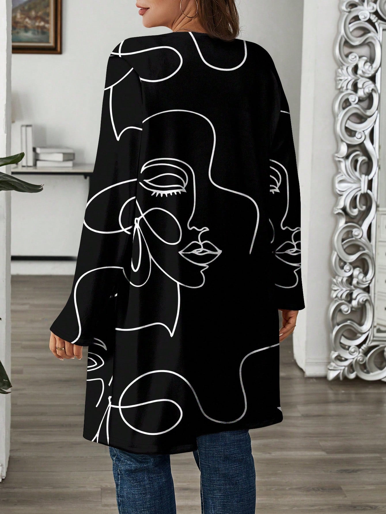 كارديجان كبير الحجم بتصميم فني مجرّد واسع للنساء، بأكمام طويلة