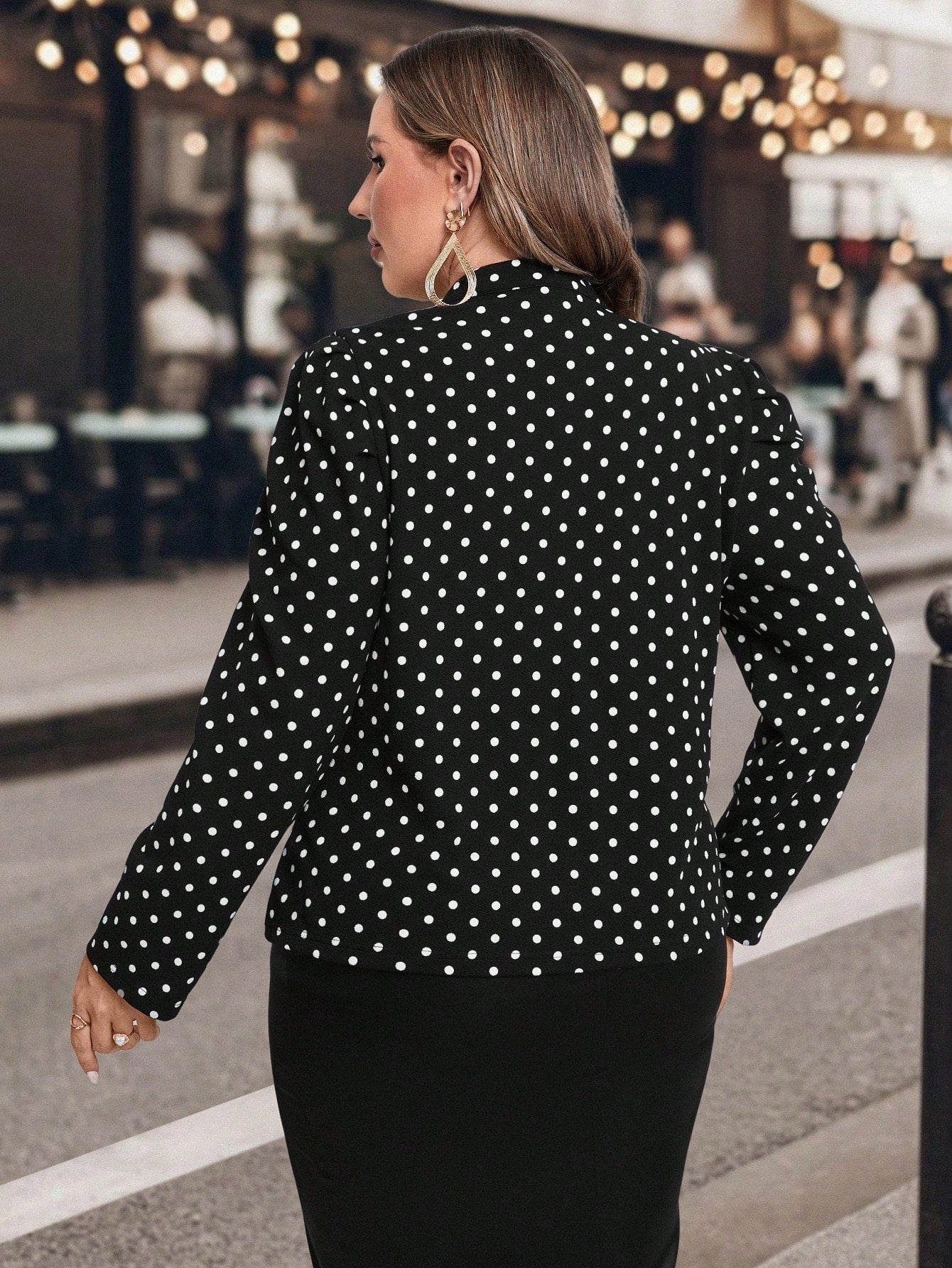 كبير الحجم سيدات جاكيت بأزرار معدنية مزين بنقاط بيضاء وسوداء، أنيق يومي لأعمال عصرية