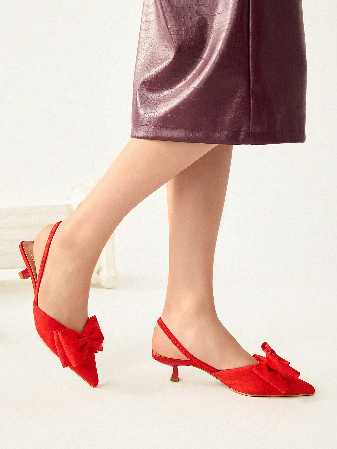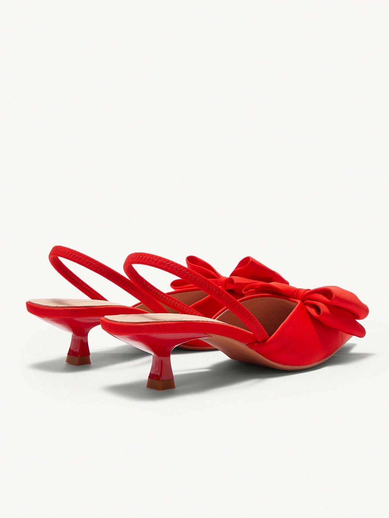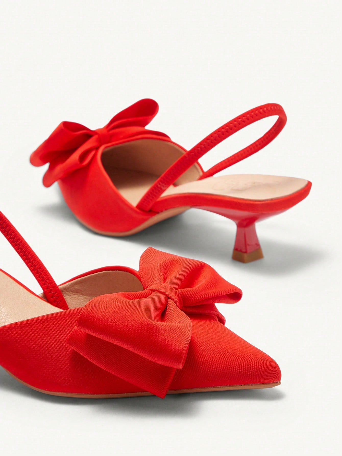 كعب عالي برأس مدبب نسائي بكعب صغير، مزين بفيونكة