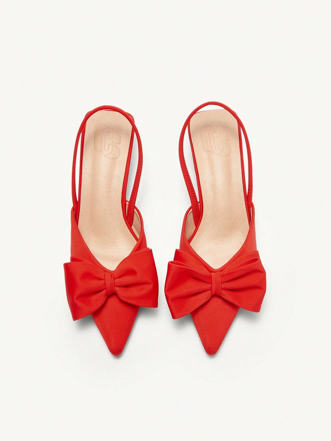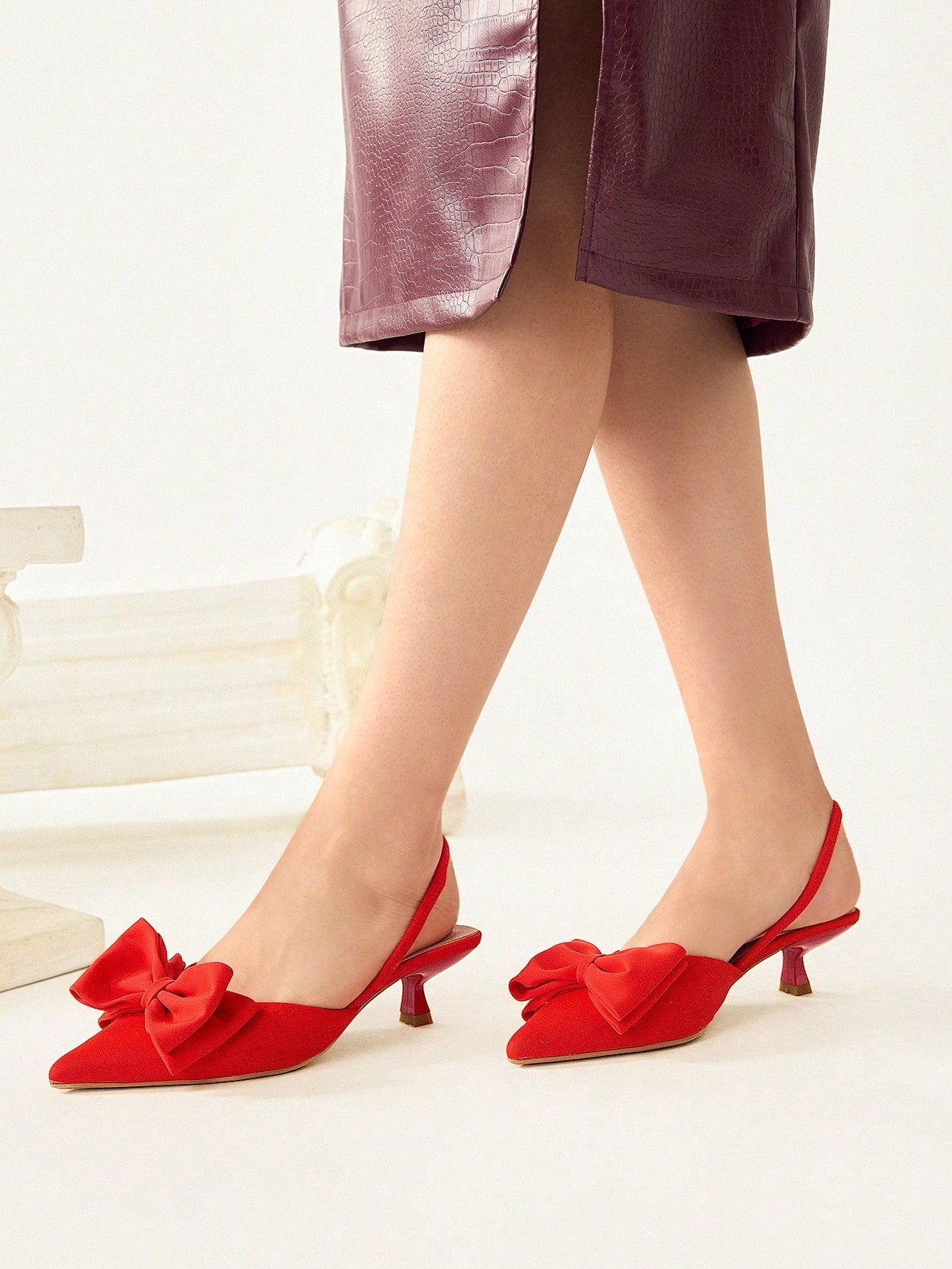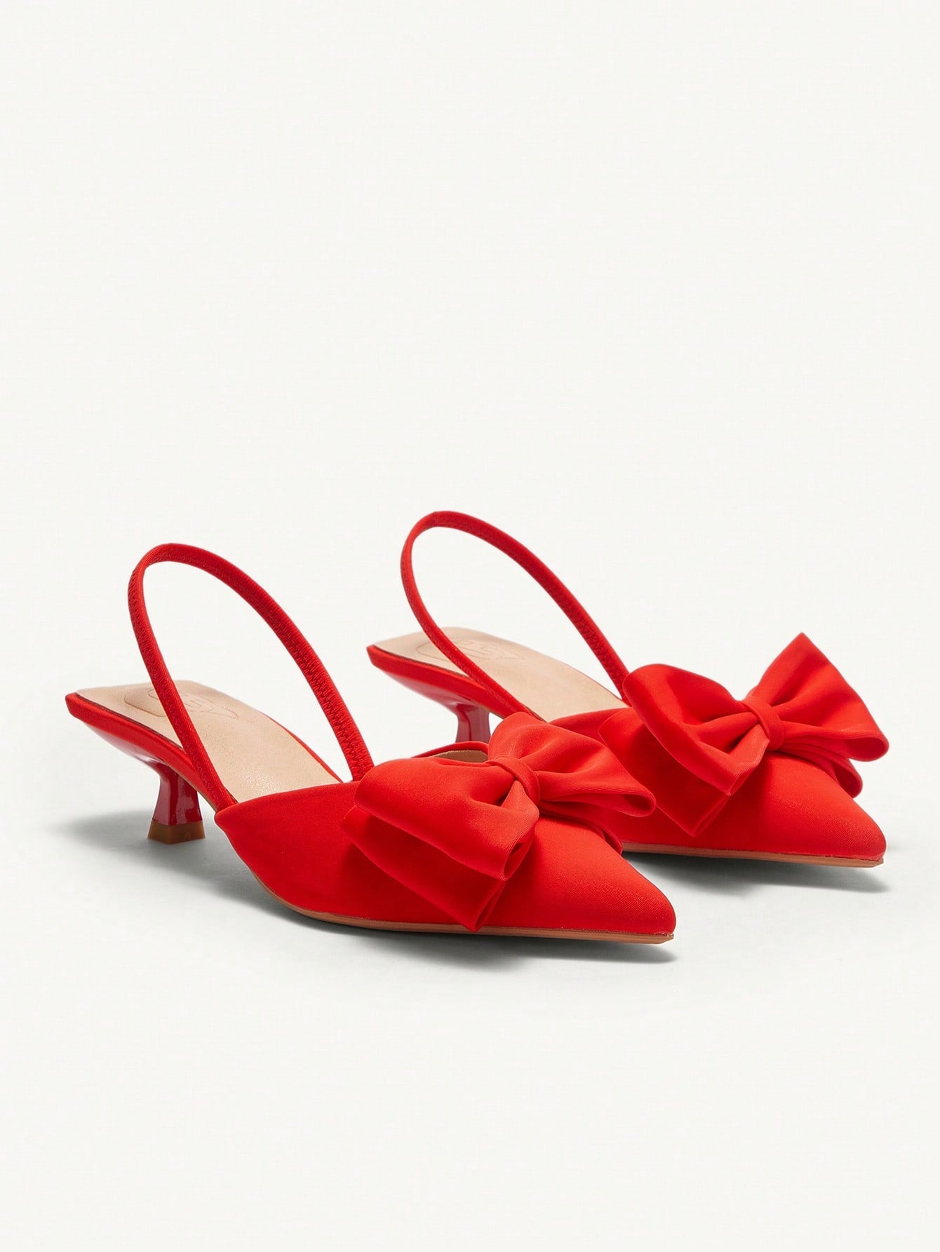 كعب عالي برأس مدبب نسائي بكعب صغير، مزين بفيونكة