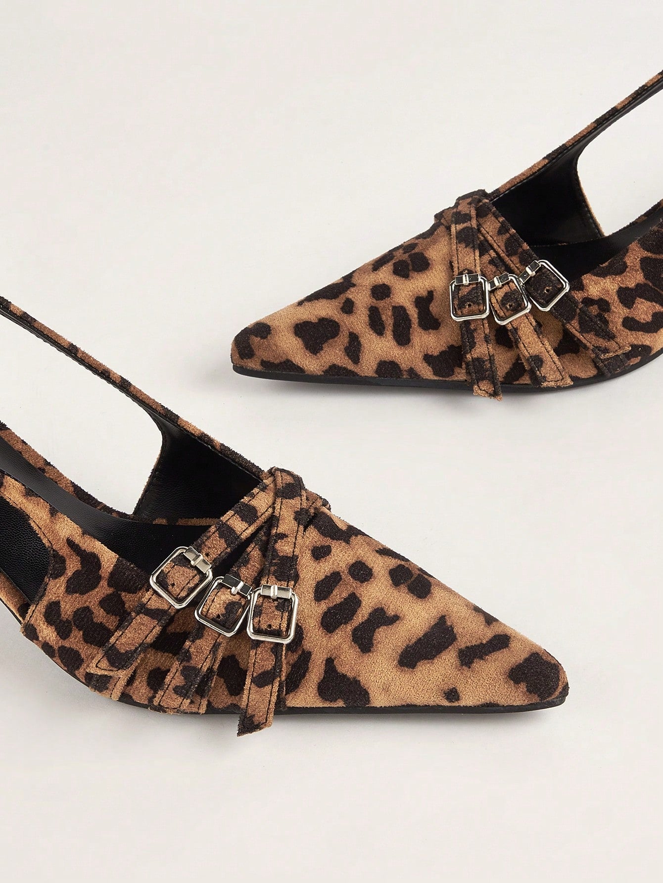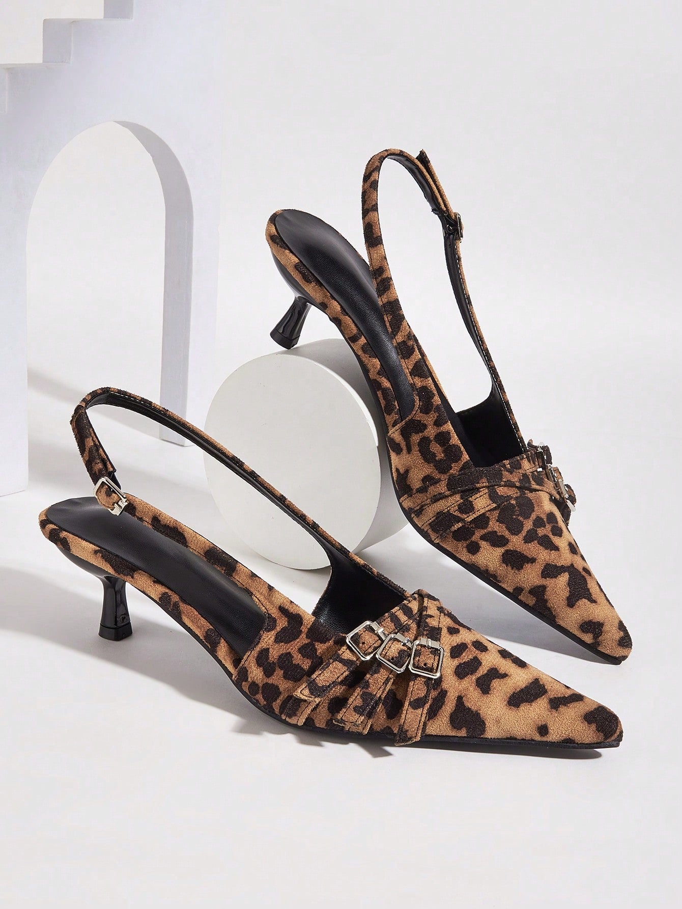 كعب عالي مدبب بتصميم نمر جذاب مزود بحزام معدني إبزيم ، للزفاف والحفلات