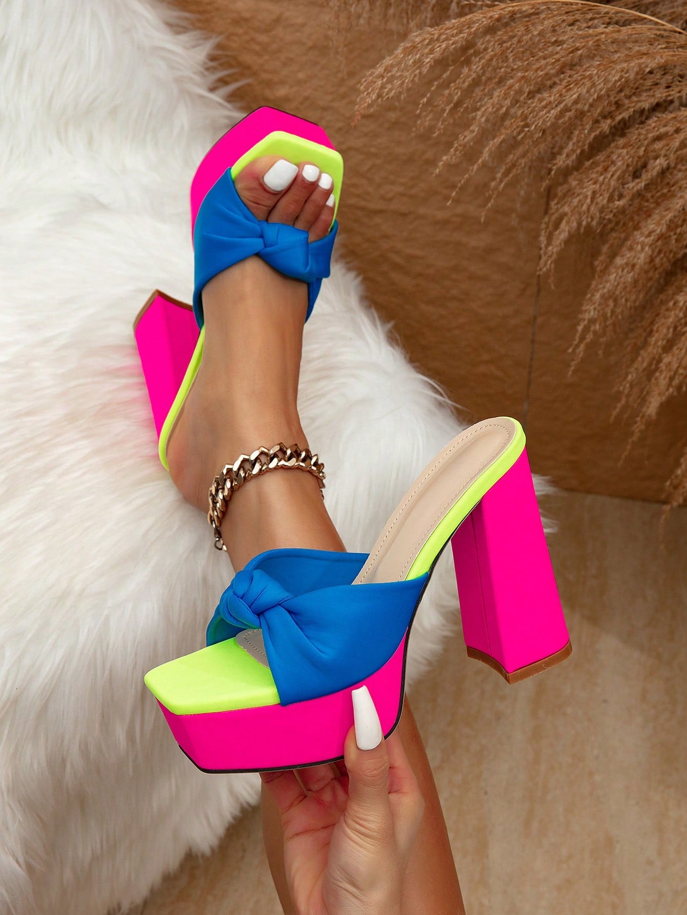 كعب عالٍ على شكل أربطة على طراز فرنسي بالألوان المتعددة ، أحذية شبشب صيفية أنيقة للارتداء اليومي في الخارج.