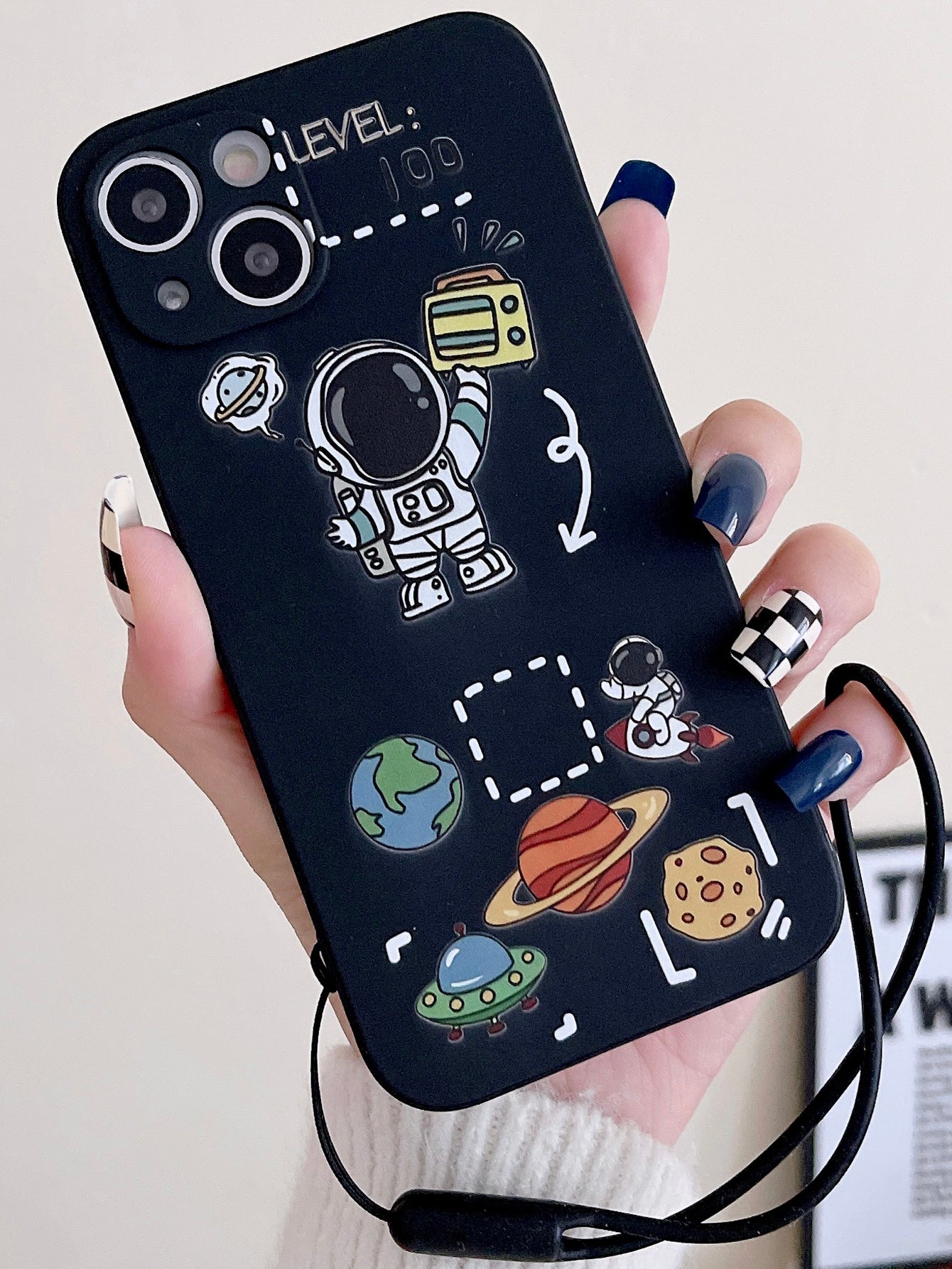 كفر موبايل بالكون بطباعة رائد الفضاء الكارتون مع الحبل