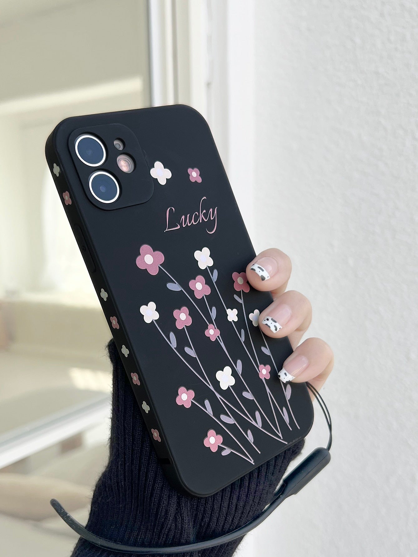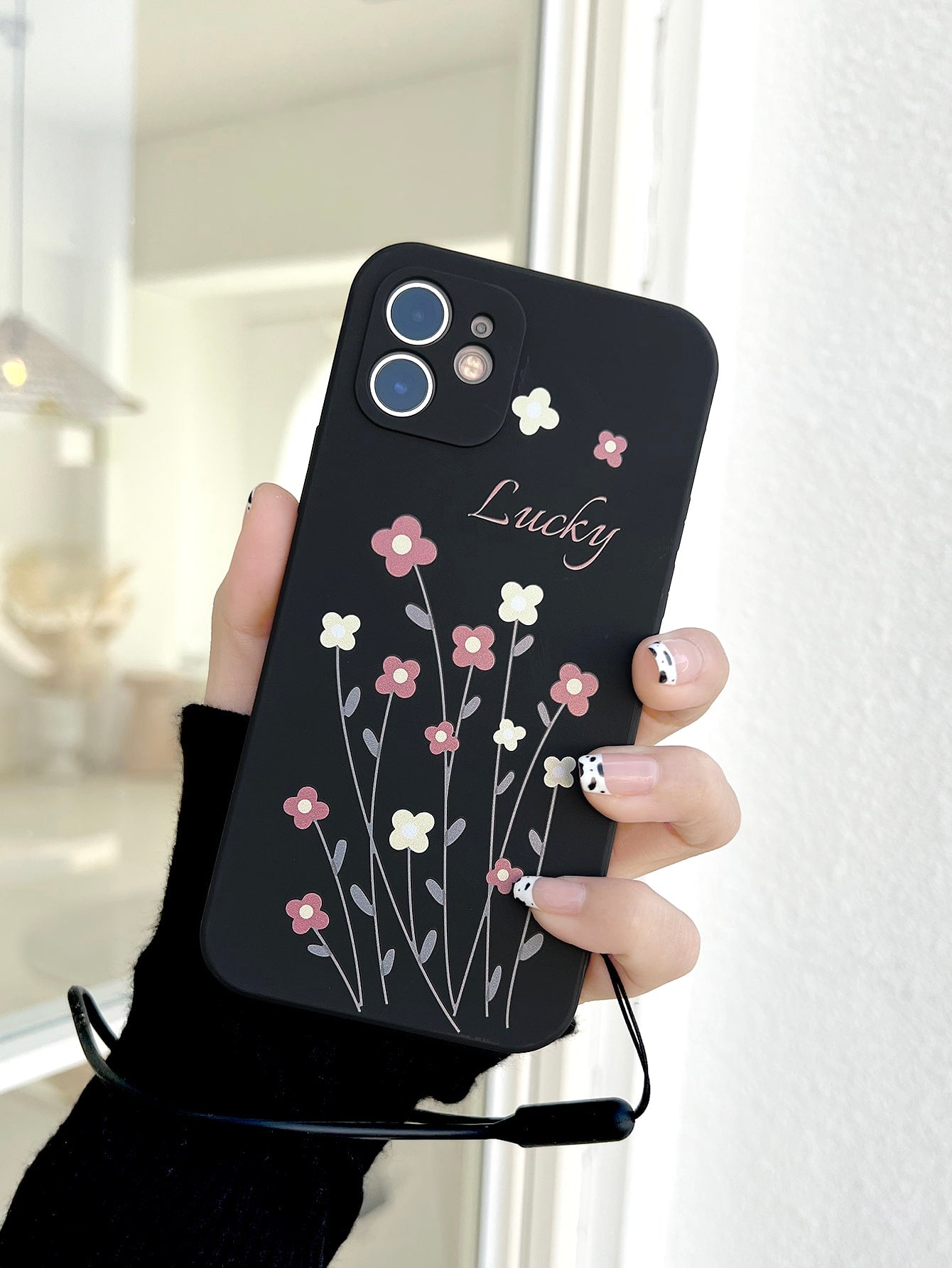 كفر موبايل بطباعة أزهار مع حبل عنق