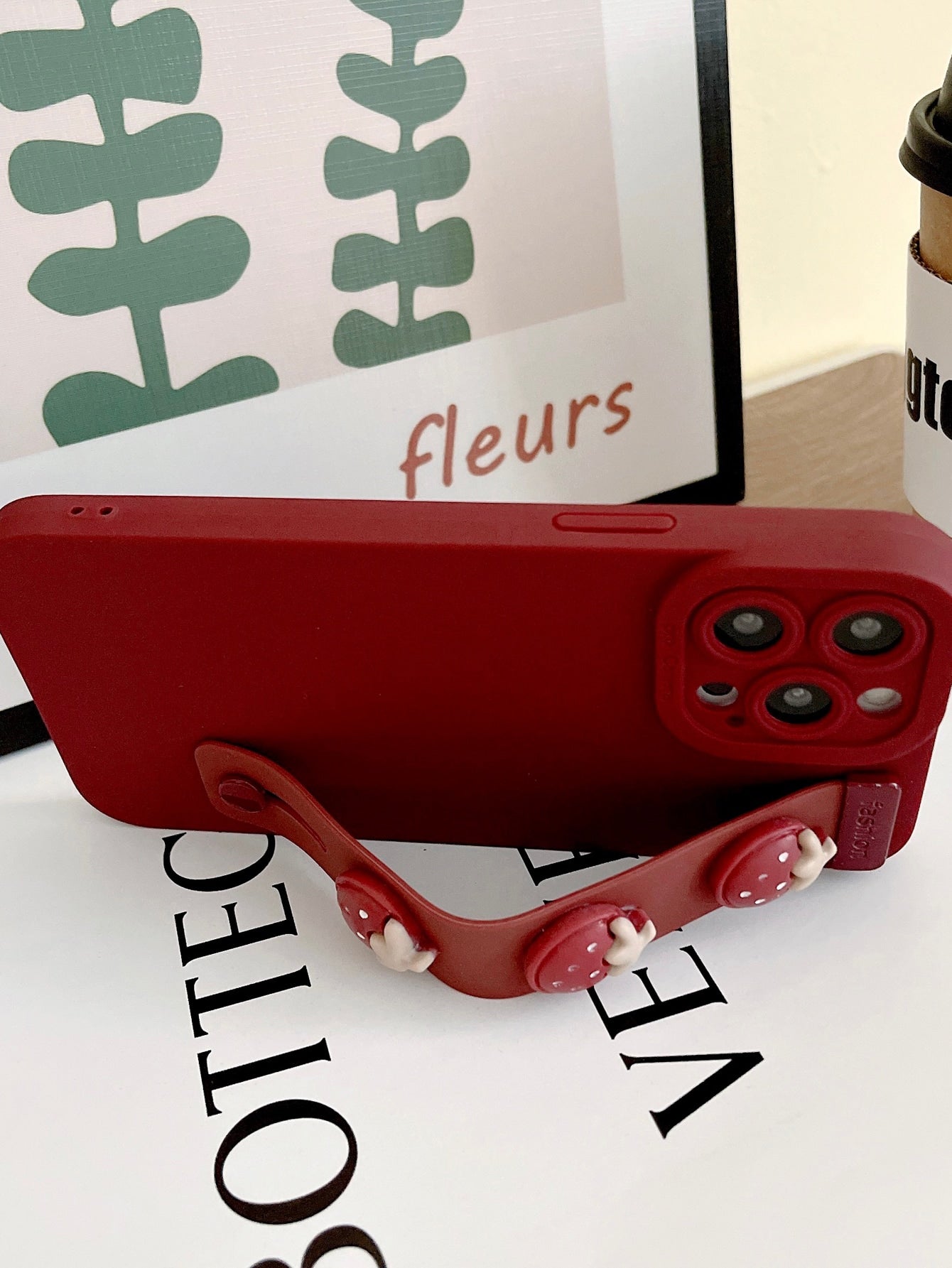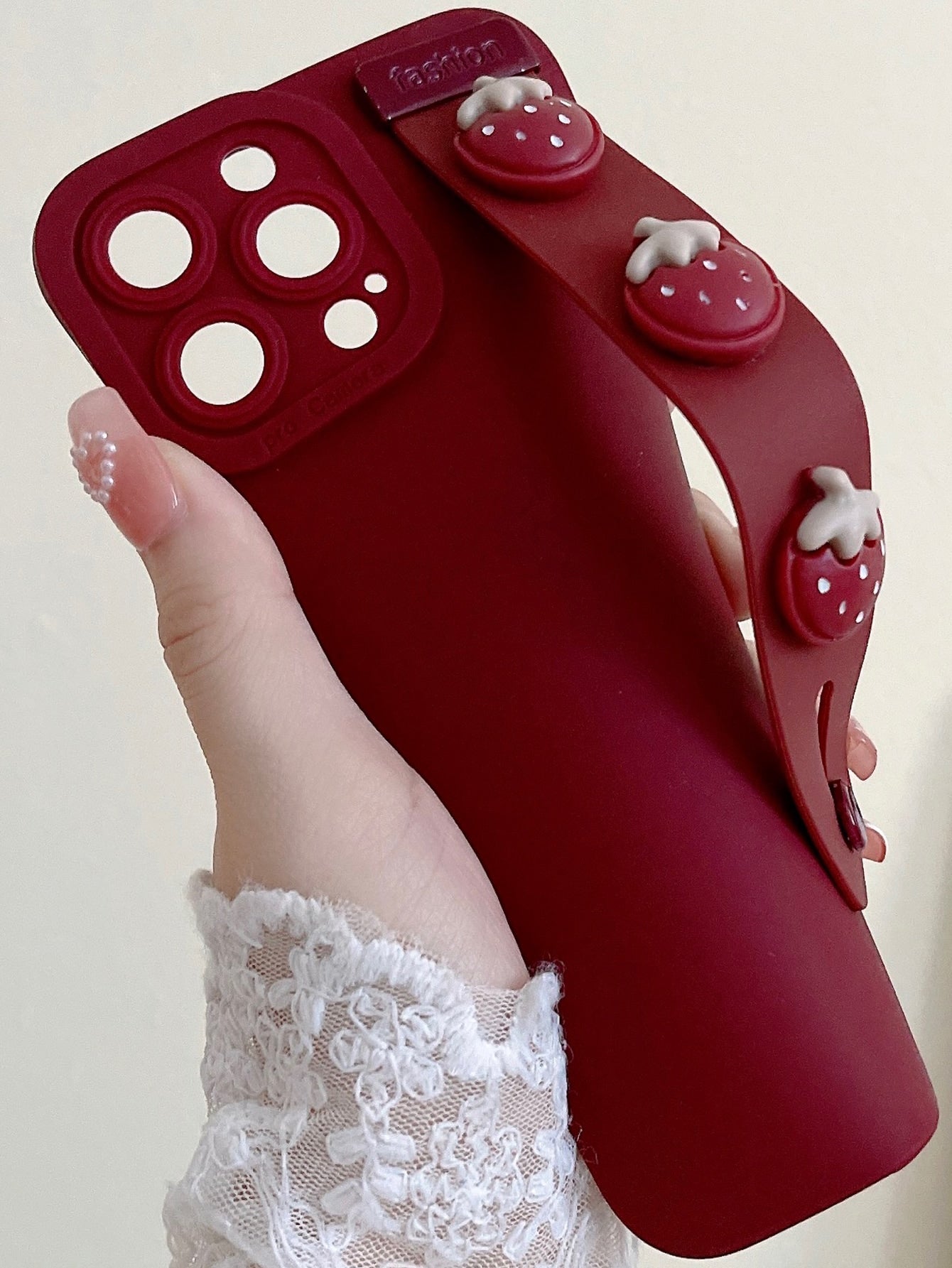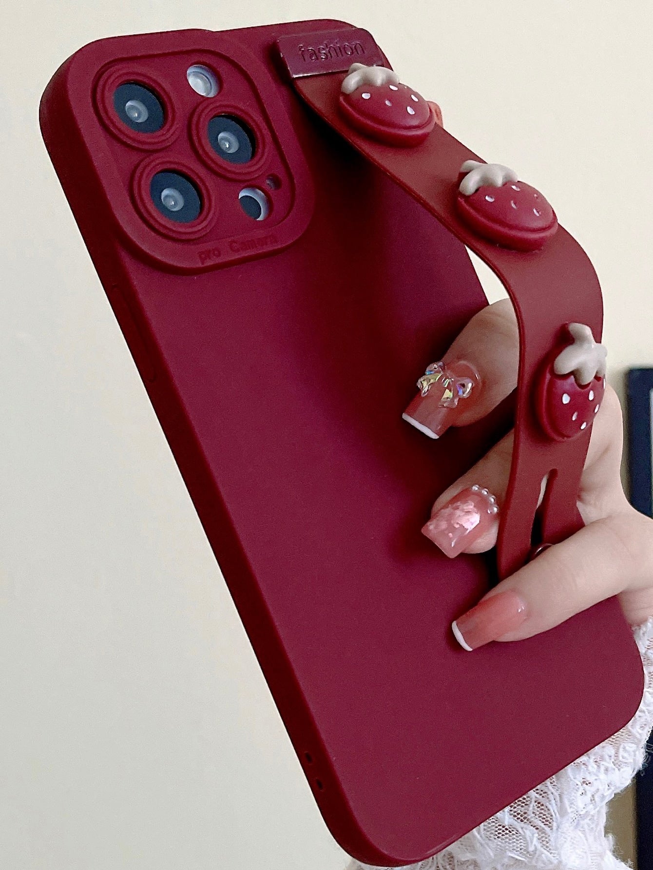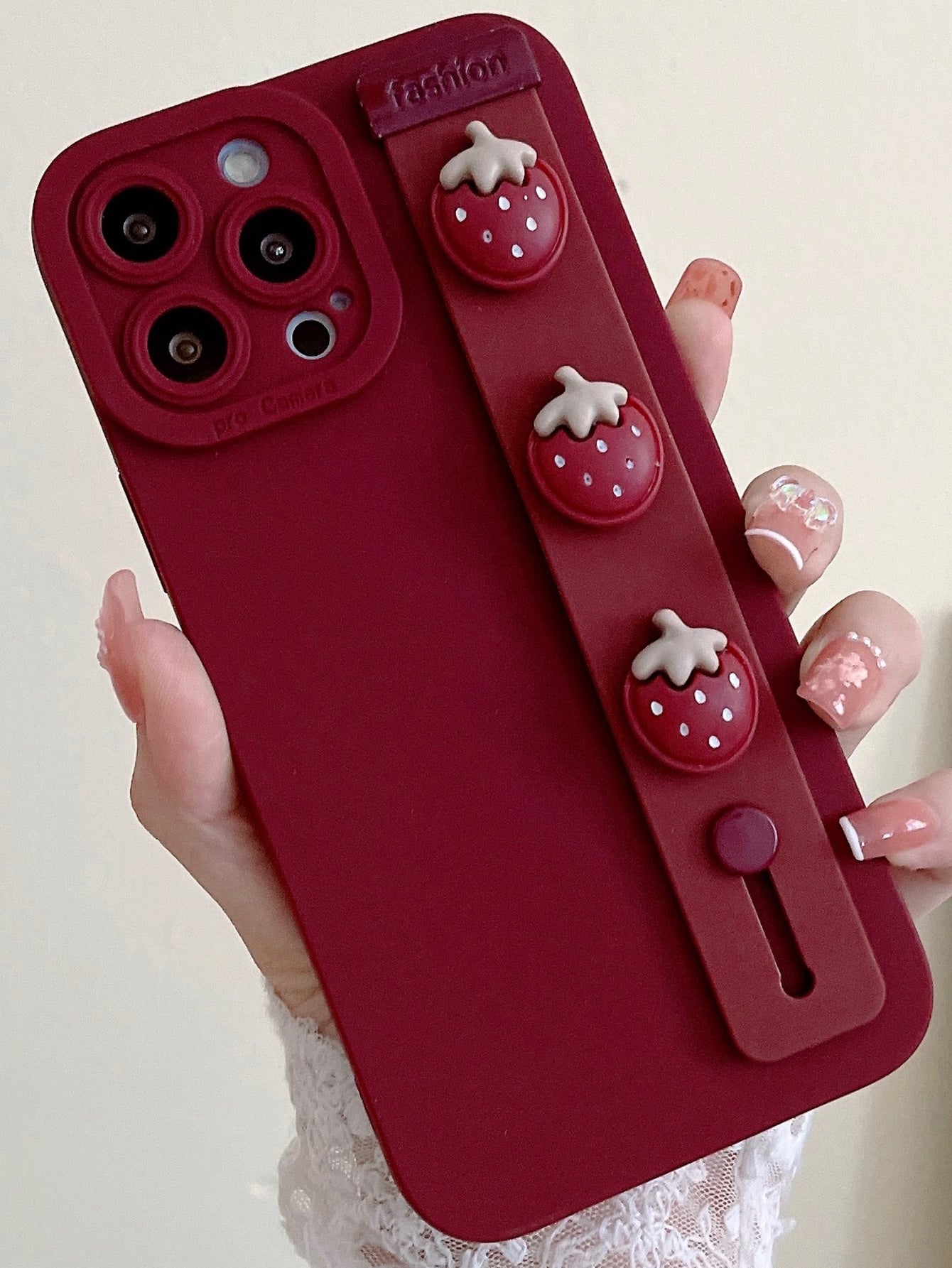 كفر هاتف سادة مع فراولة زخرفة دفع سحب حامل موبايل