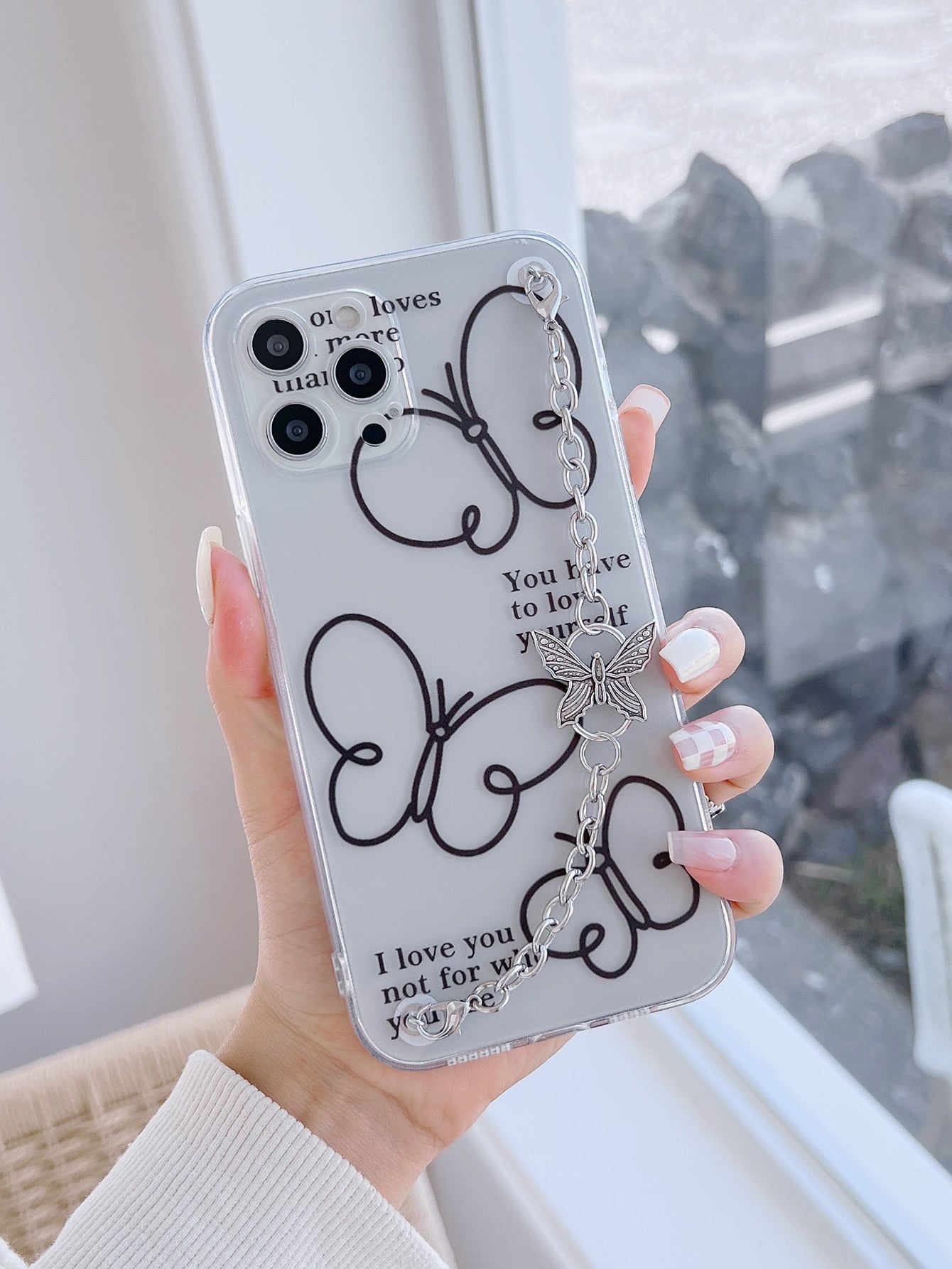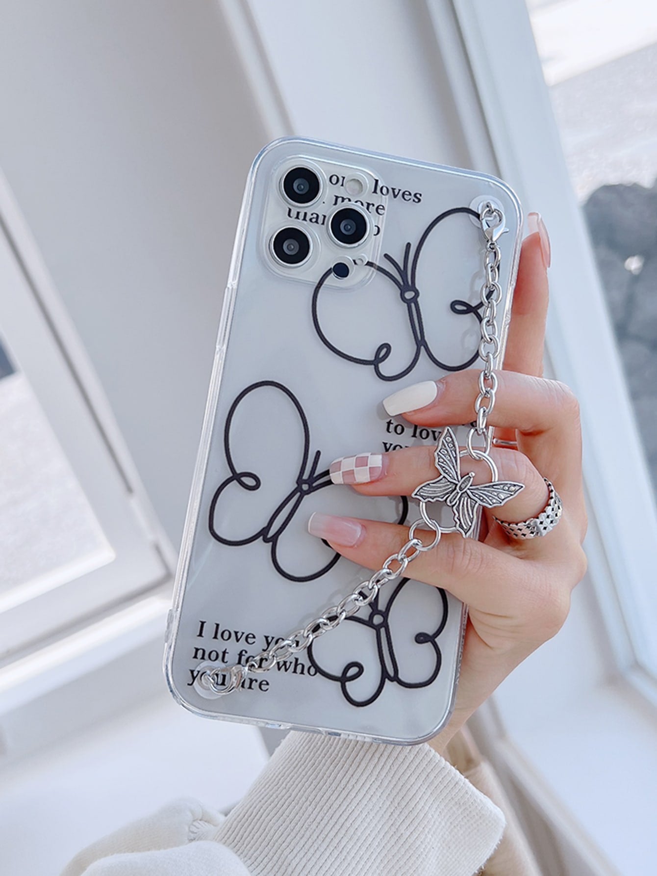 كفر هاتف شفاف جرافيك الفراشة مع سلسلة شريط يد