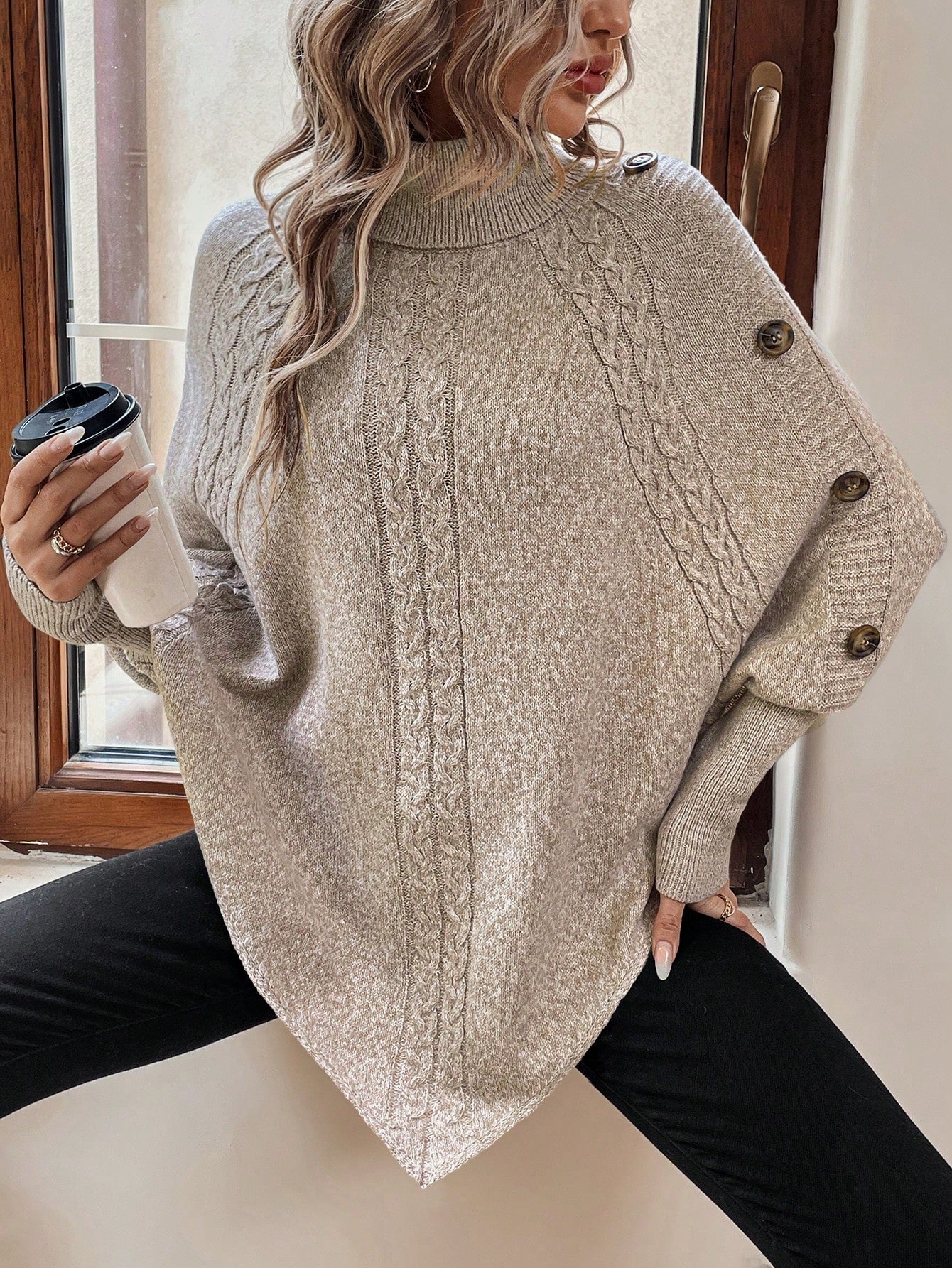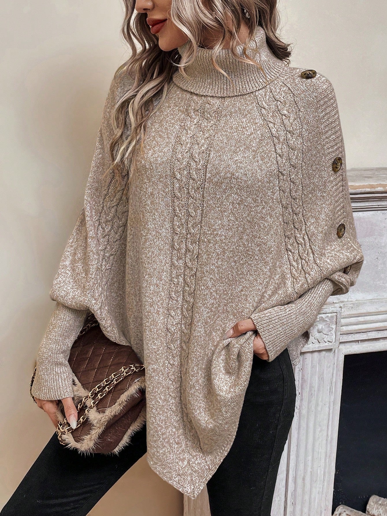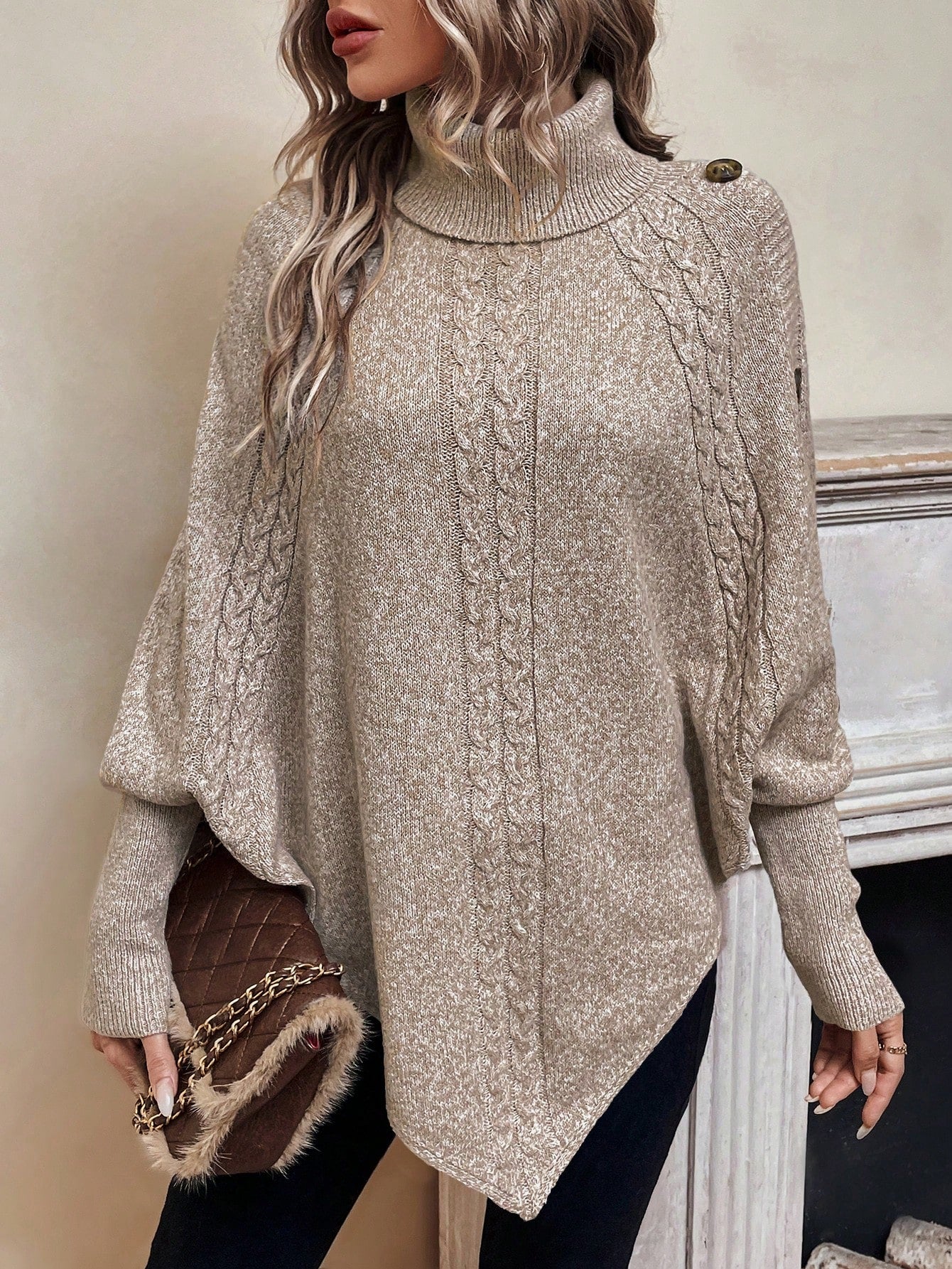 كنزة صوفية كاجوال بياقة ضيقة للنساء، أكمام طويلة