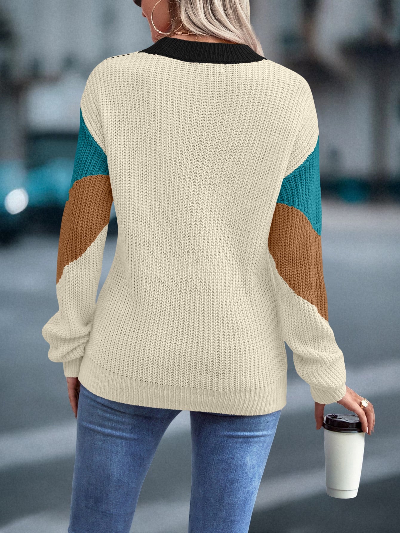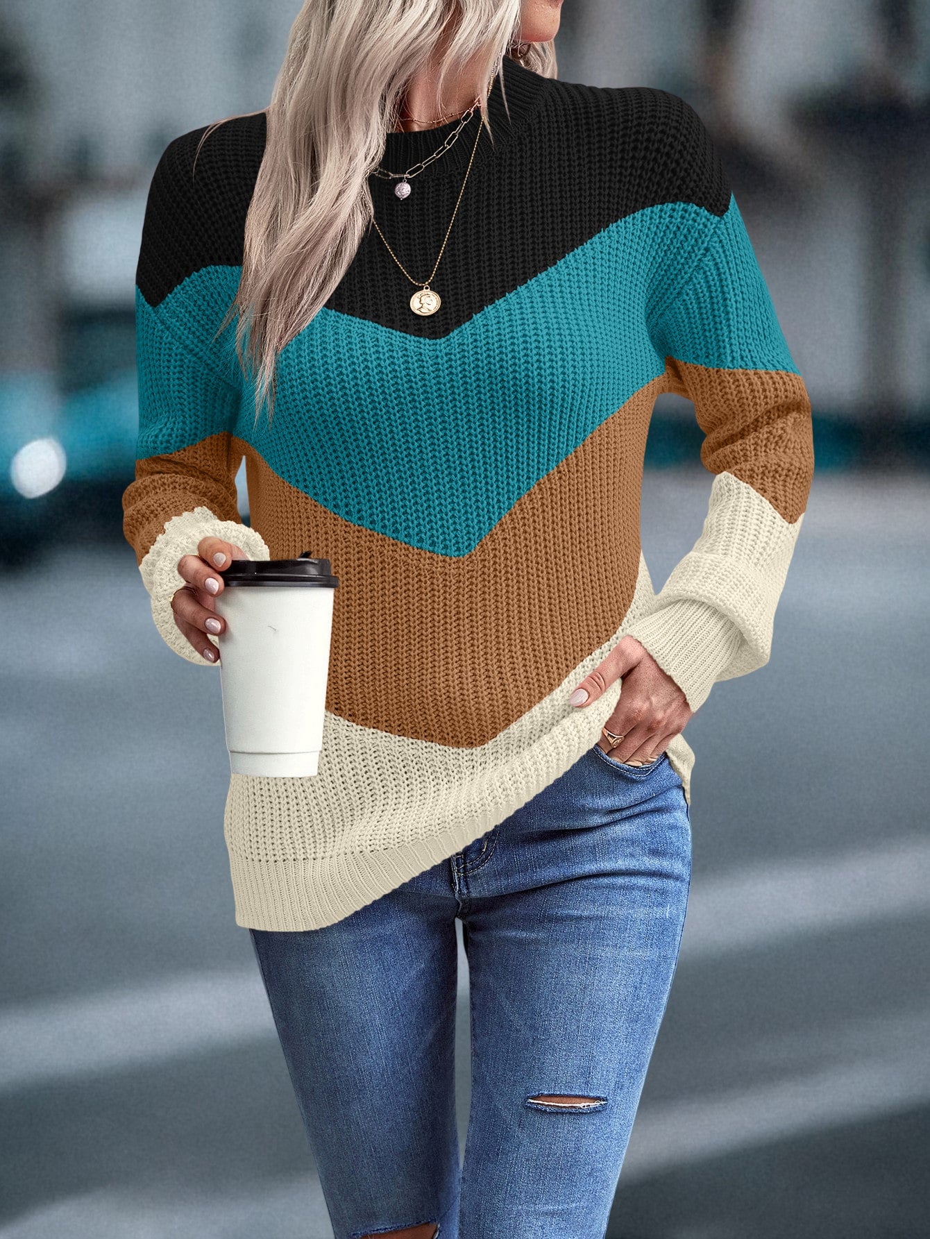 كنزة صوف ألوان متجانسة نمط شيفرون منخفض الاكتاف
