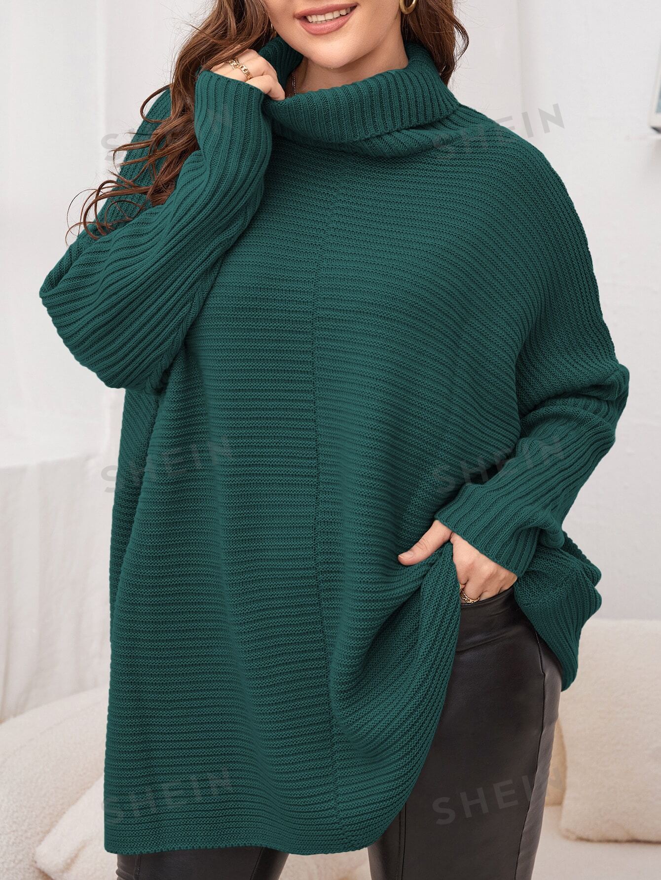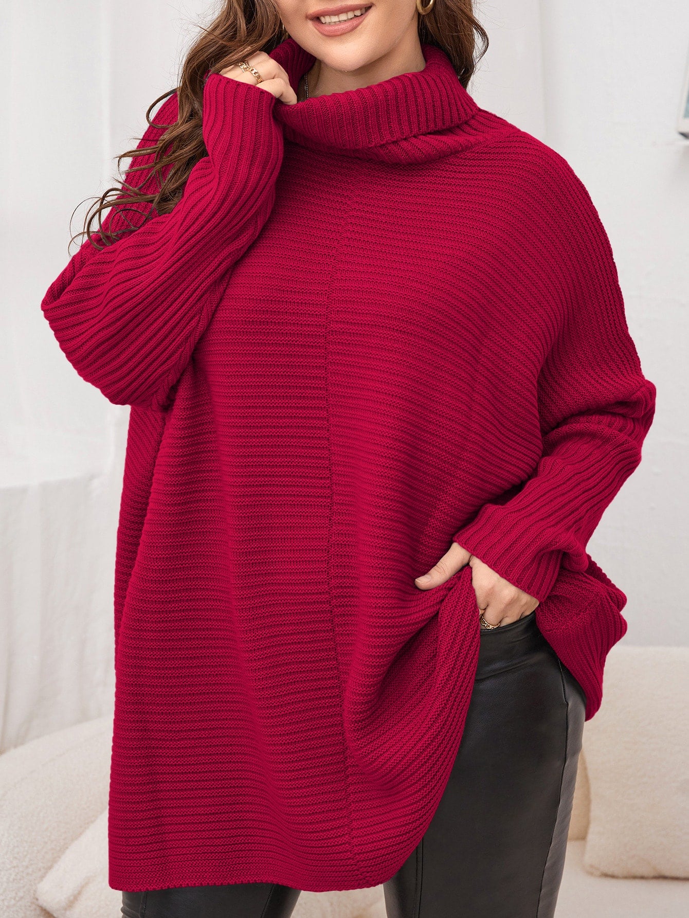 كنزة صوف ياقة دائري اكمام جناح الخفاش مقاس كبير