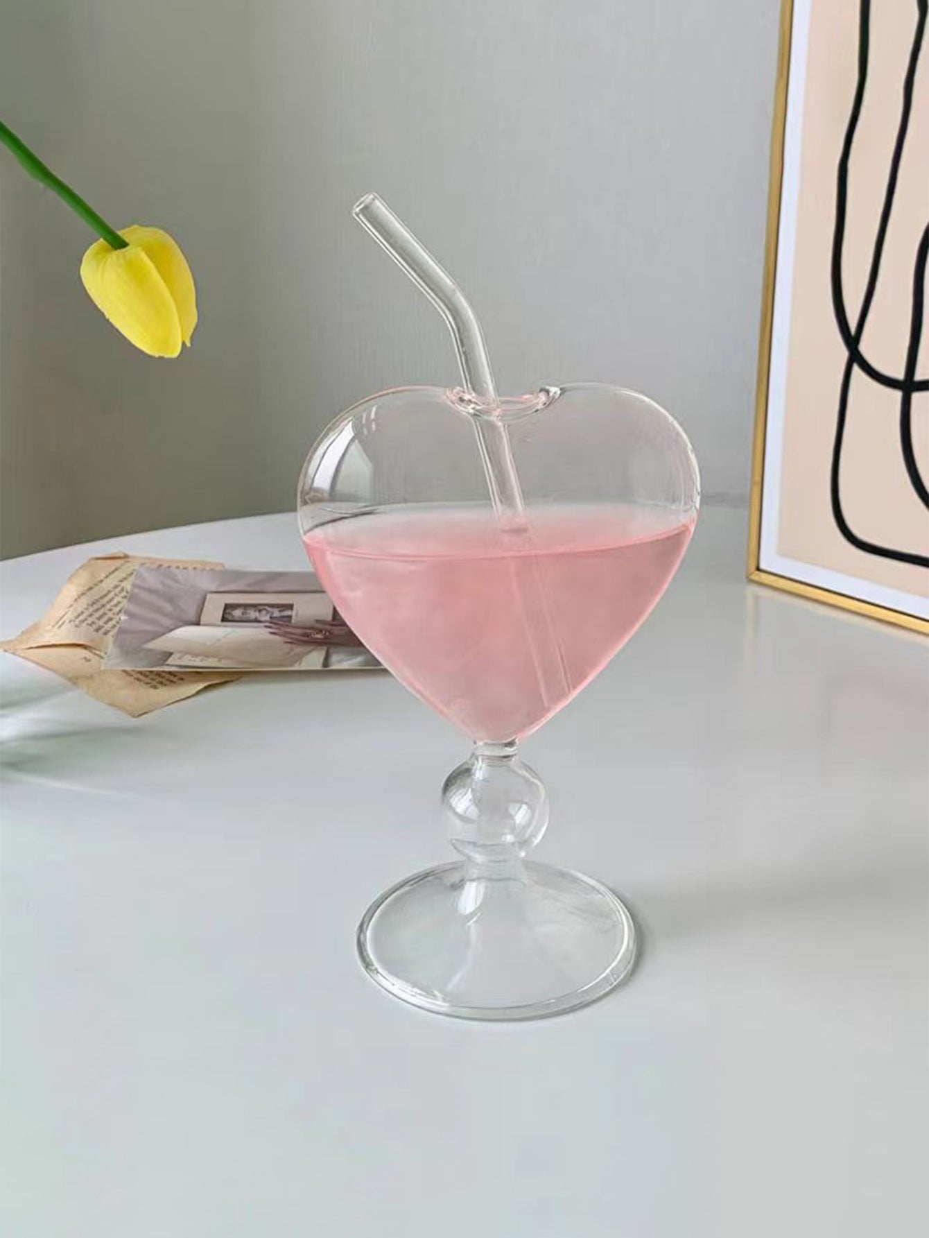 كوب زجاجي على شكل قلب (قطعة واحدة)، كوب كوكتيل إبداعي للزوجين/شاي // حليب/قهوة هدية أنيقة