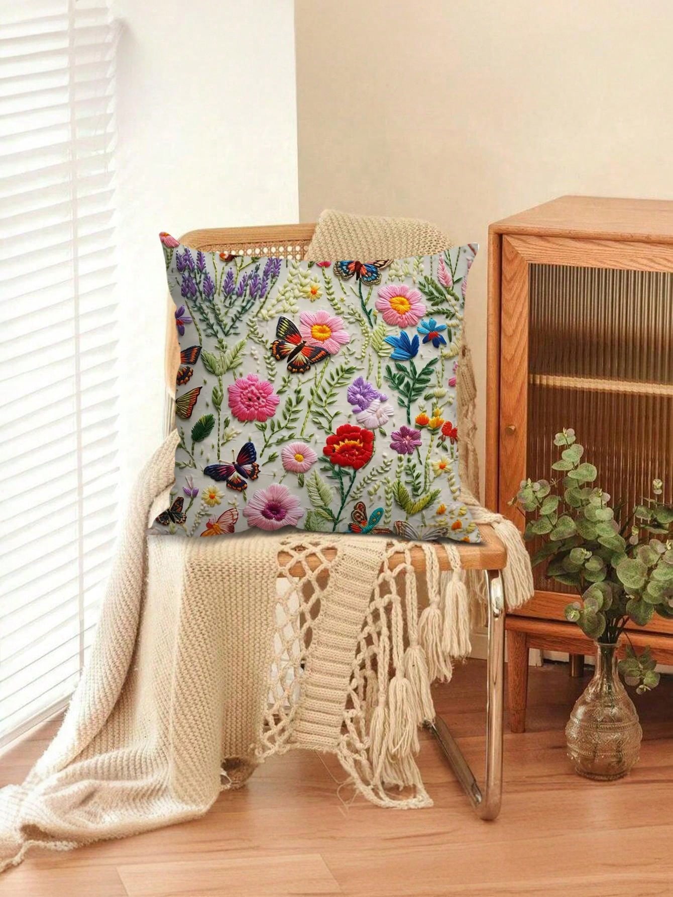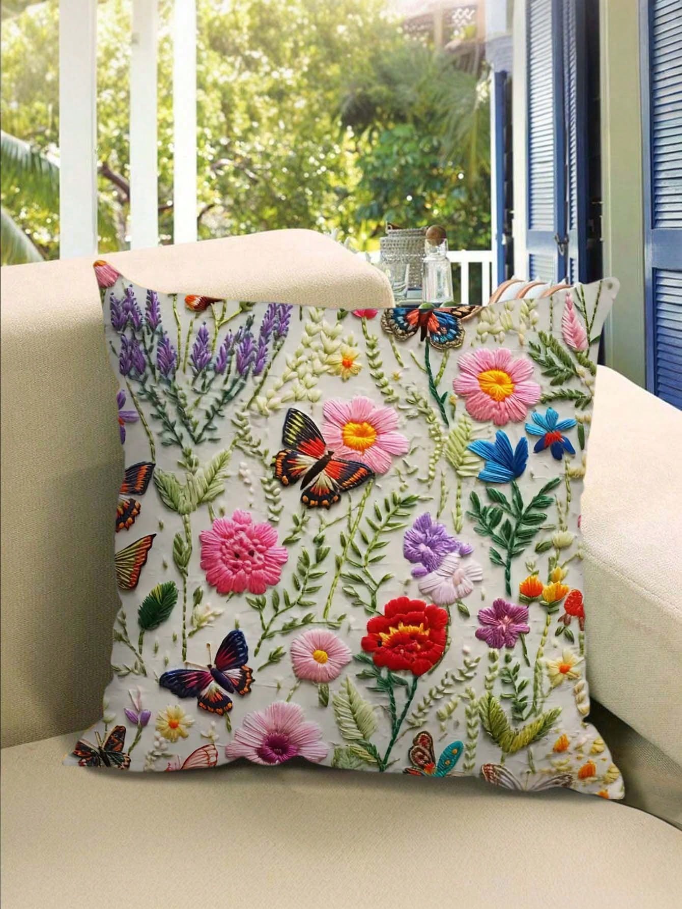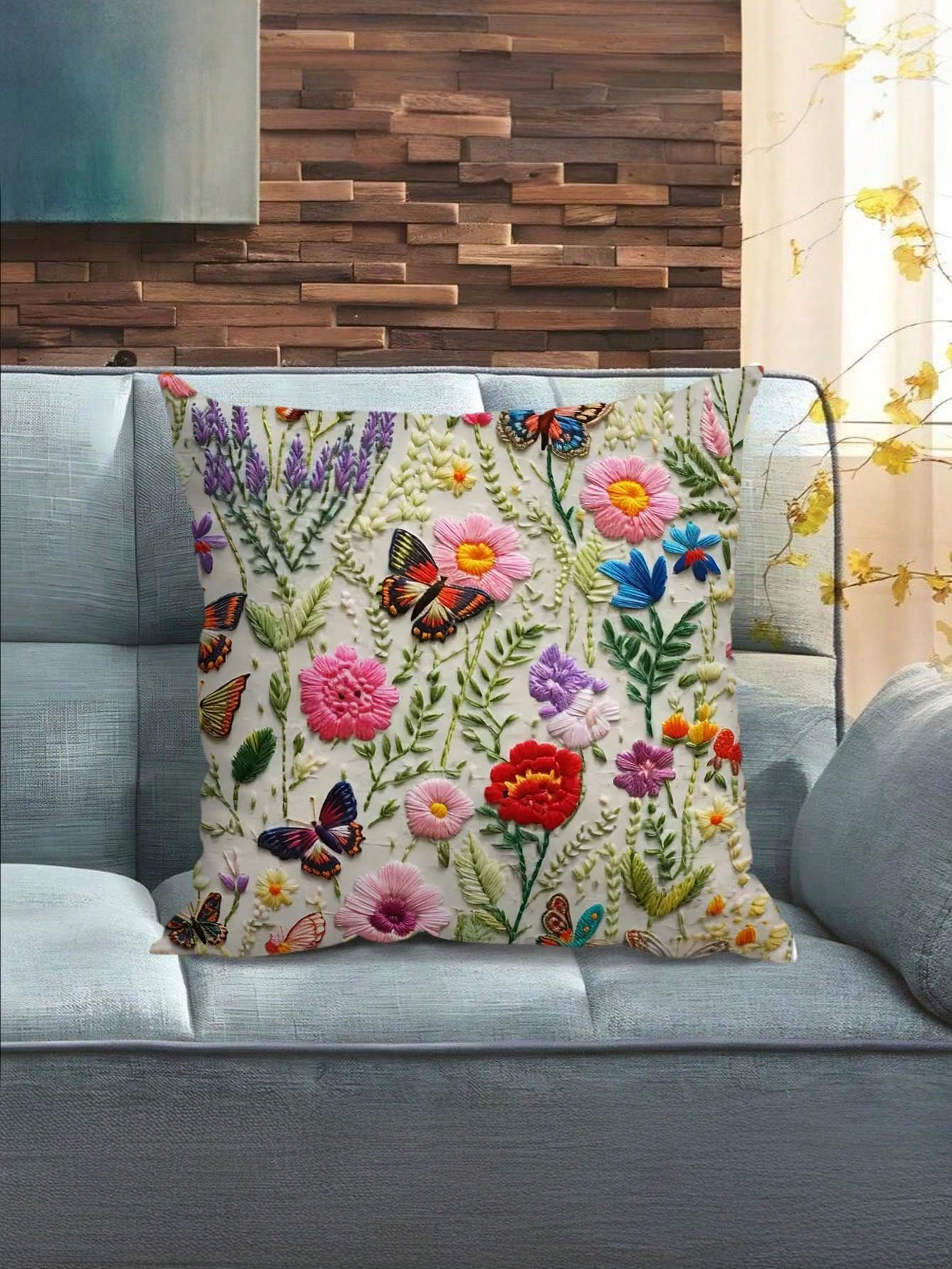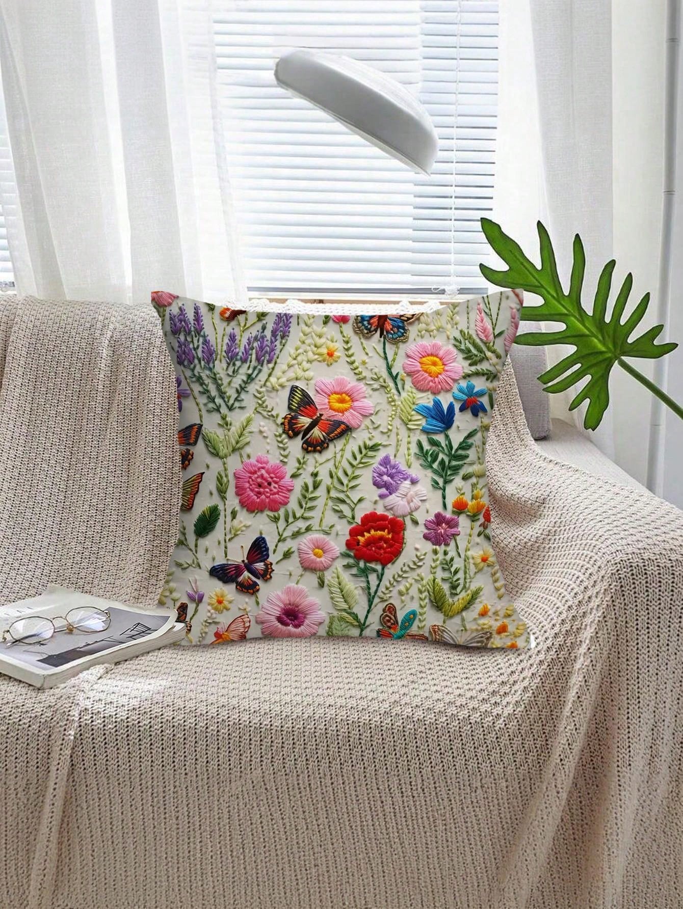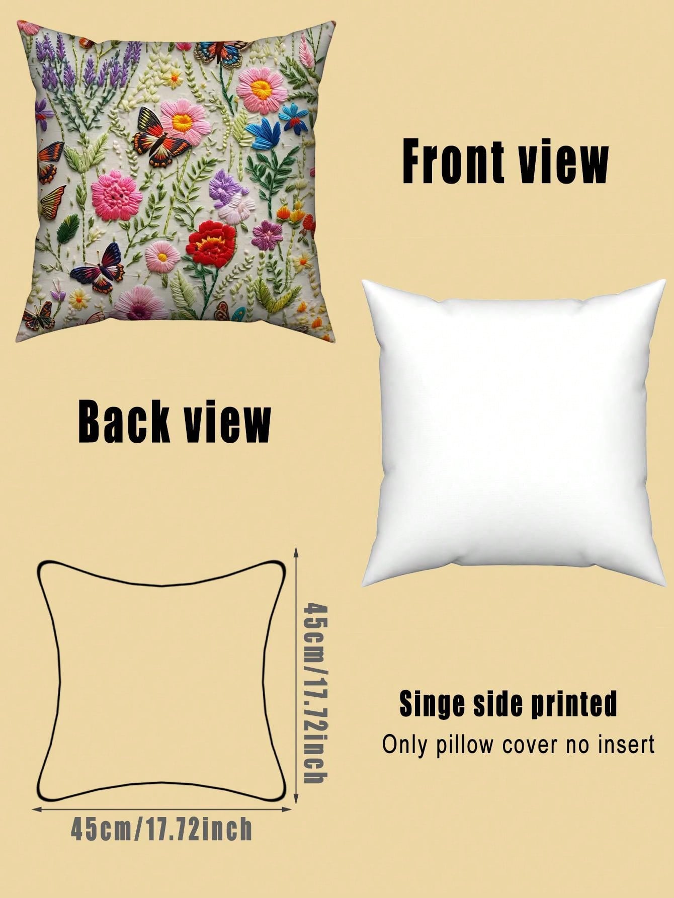 كيس وسادة مطبوع بالأزهار والفراشات من البوليستر قطعة واحدة