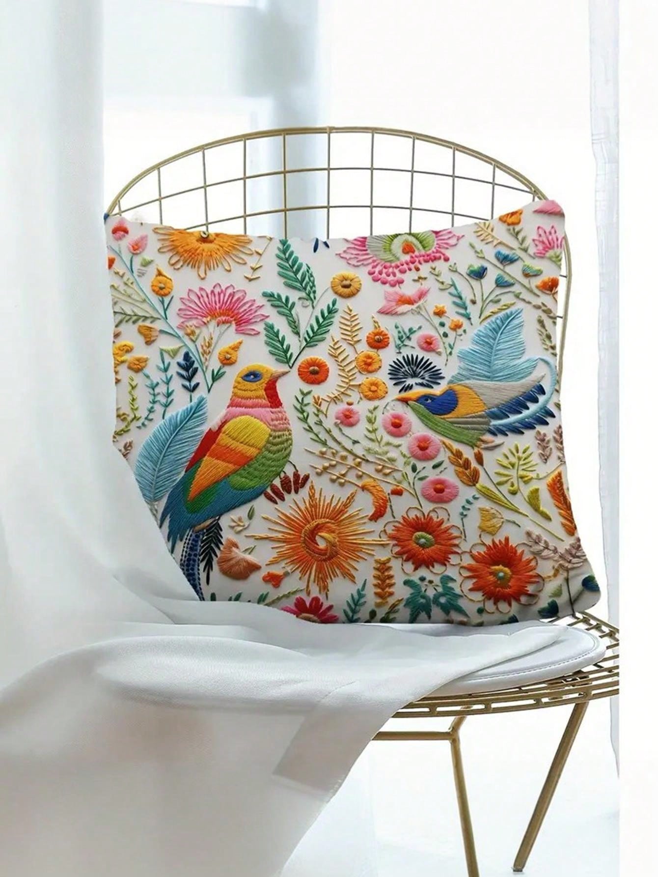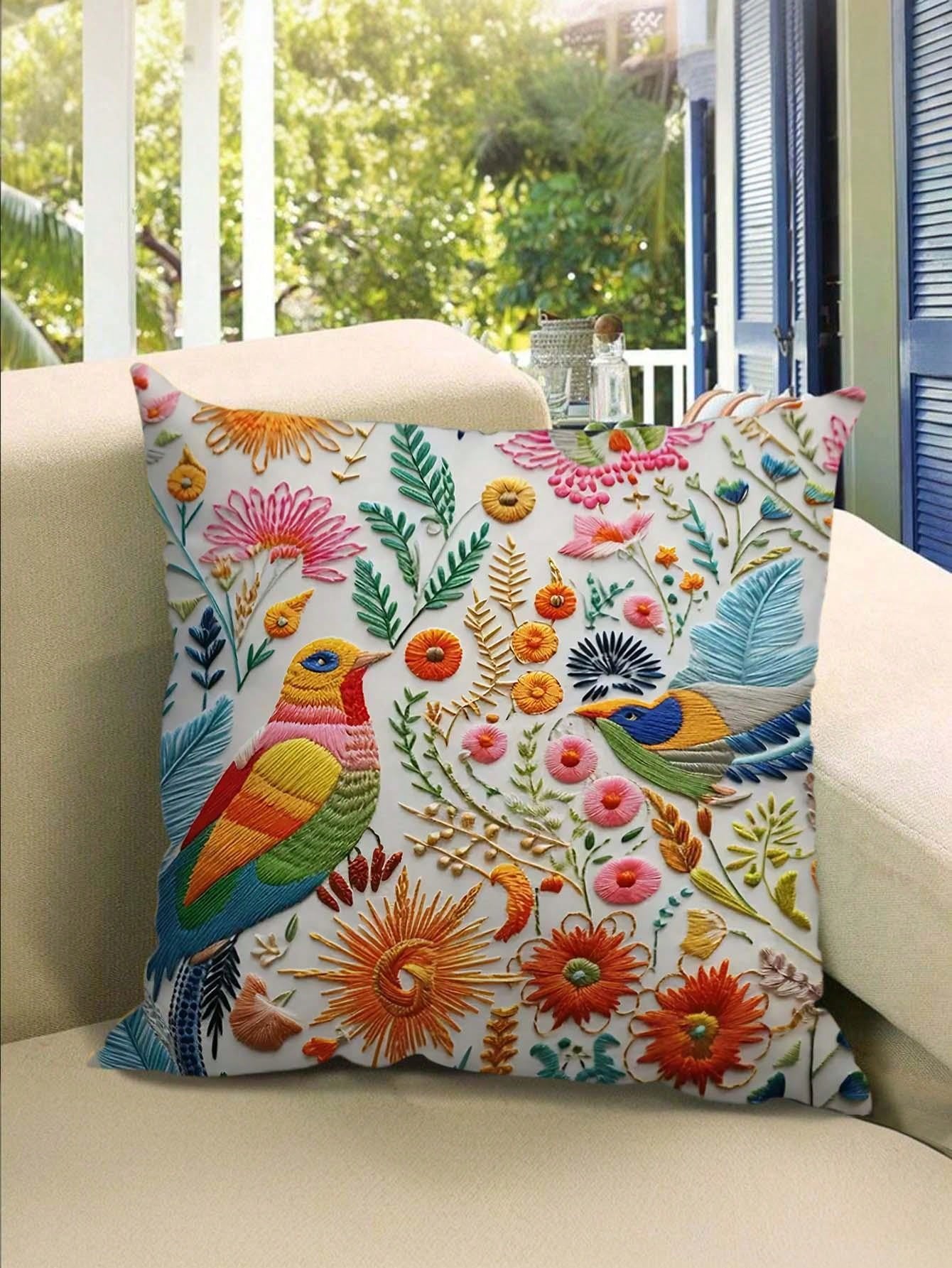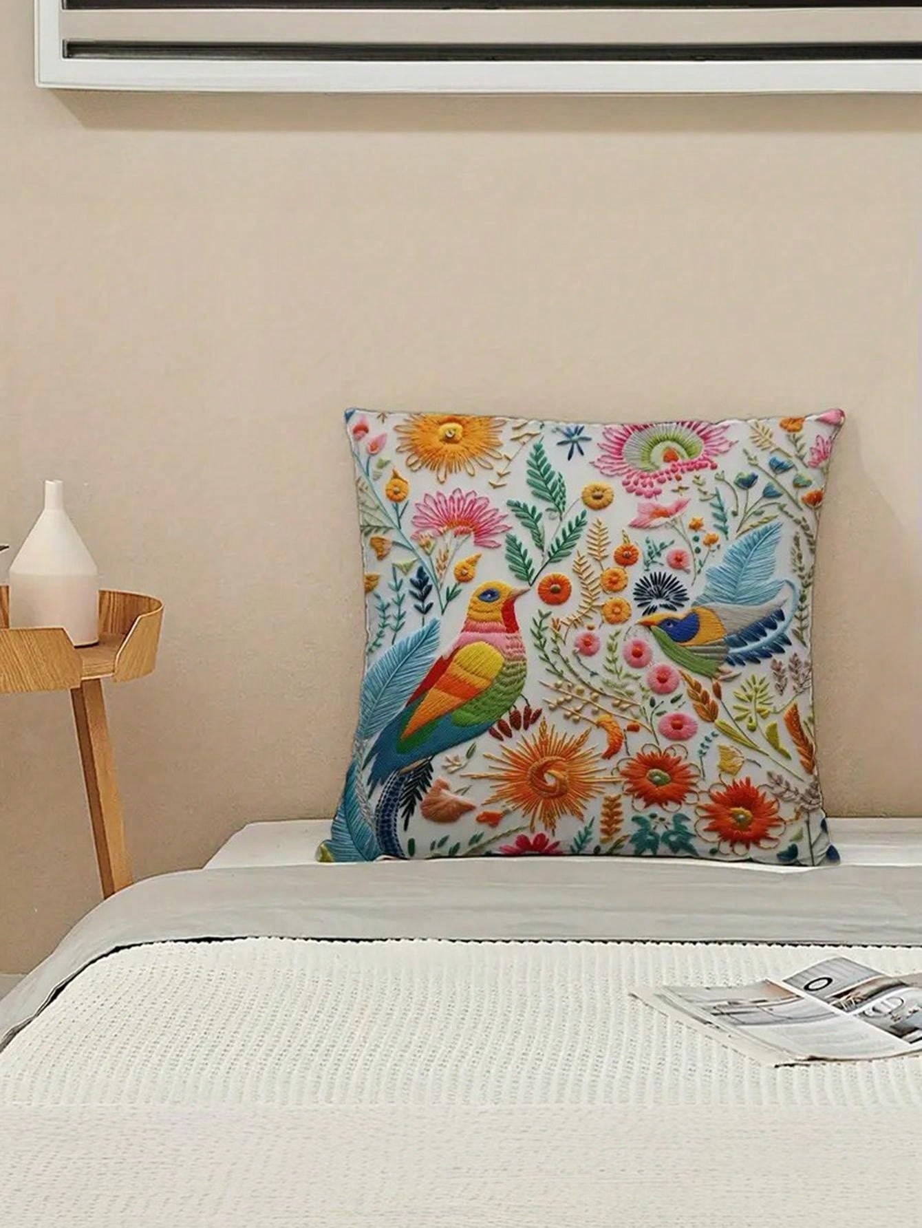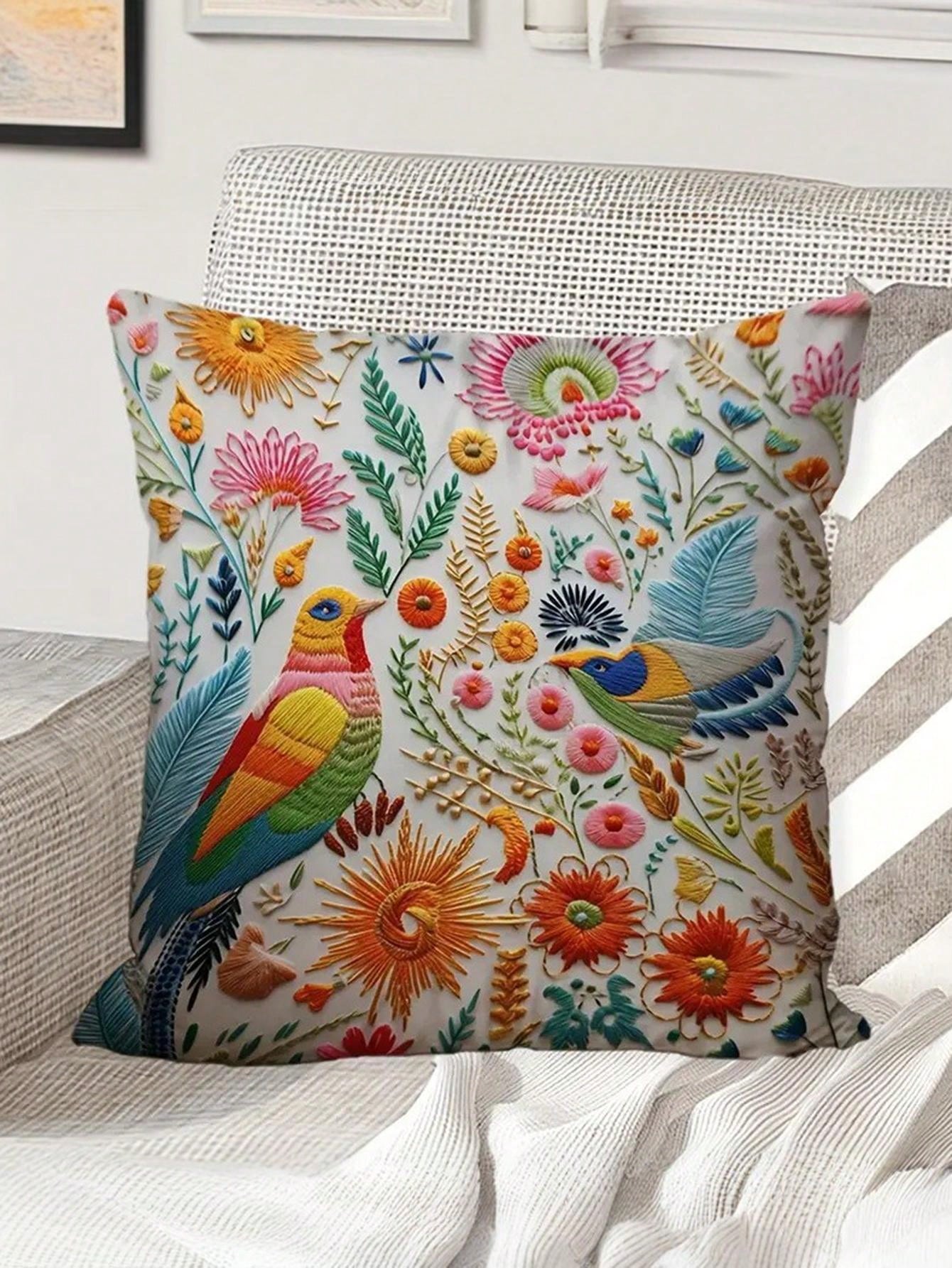 كيس وسادة مطبوع بطبعة زهرية عصفور من البوليستر قطعة واحدة