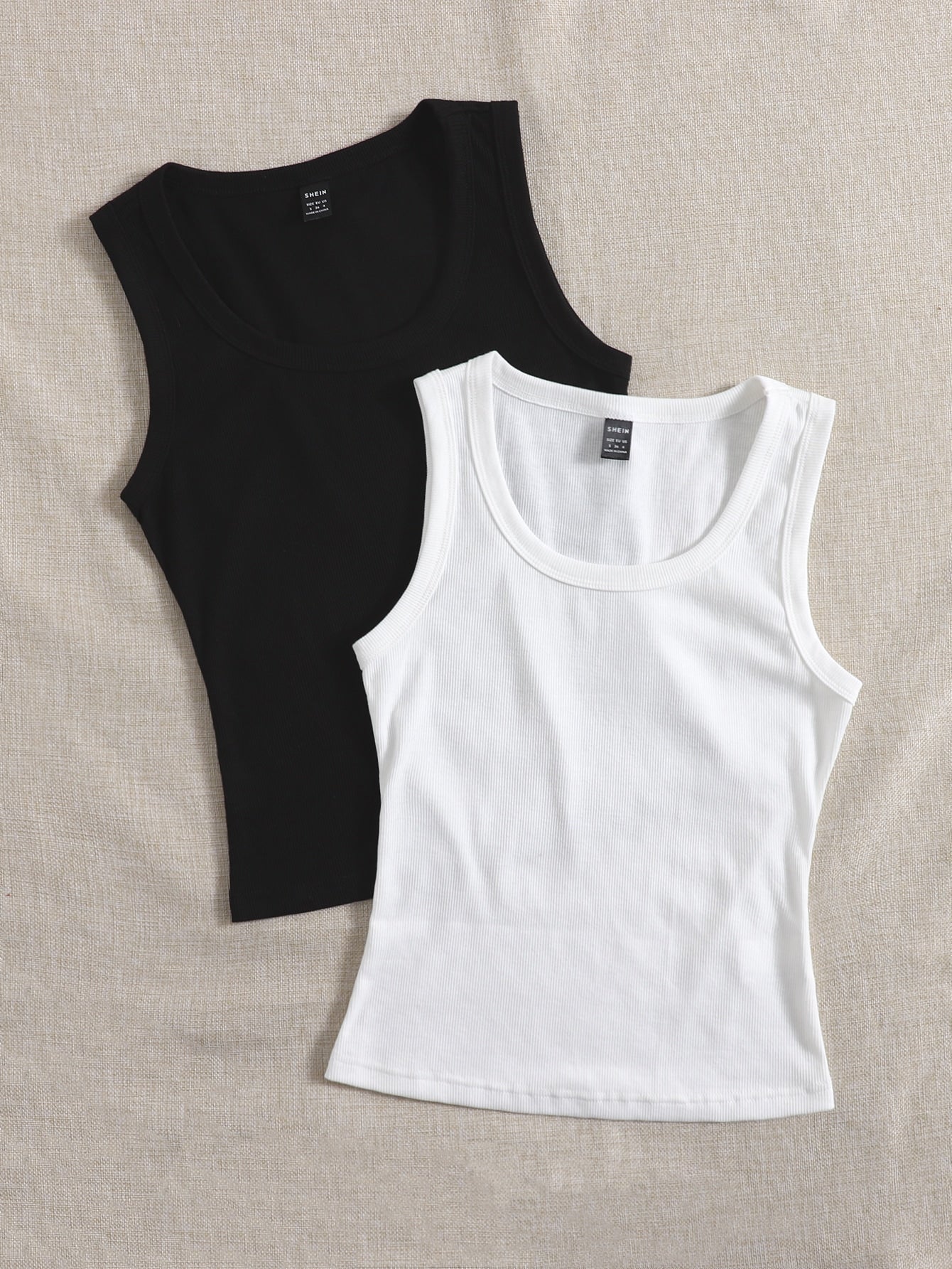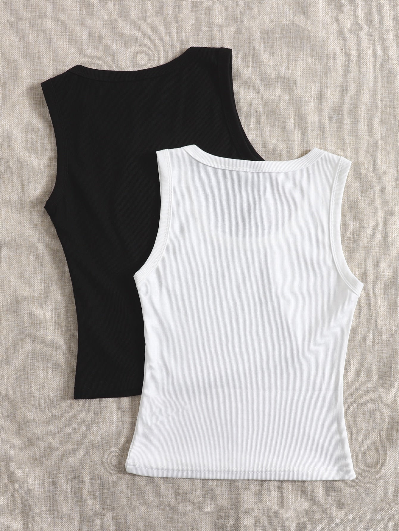 لباس علوي تانك موحدة اللون محبوك مضلع 2 قطع