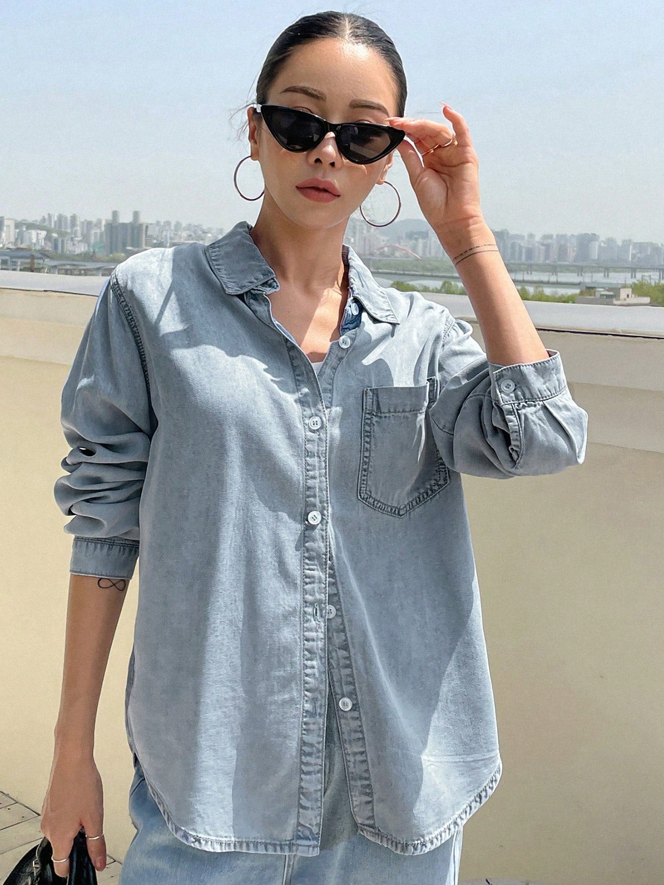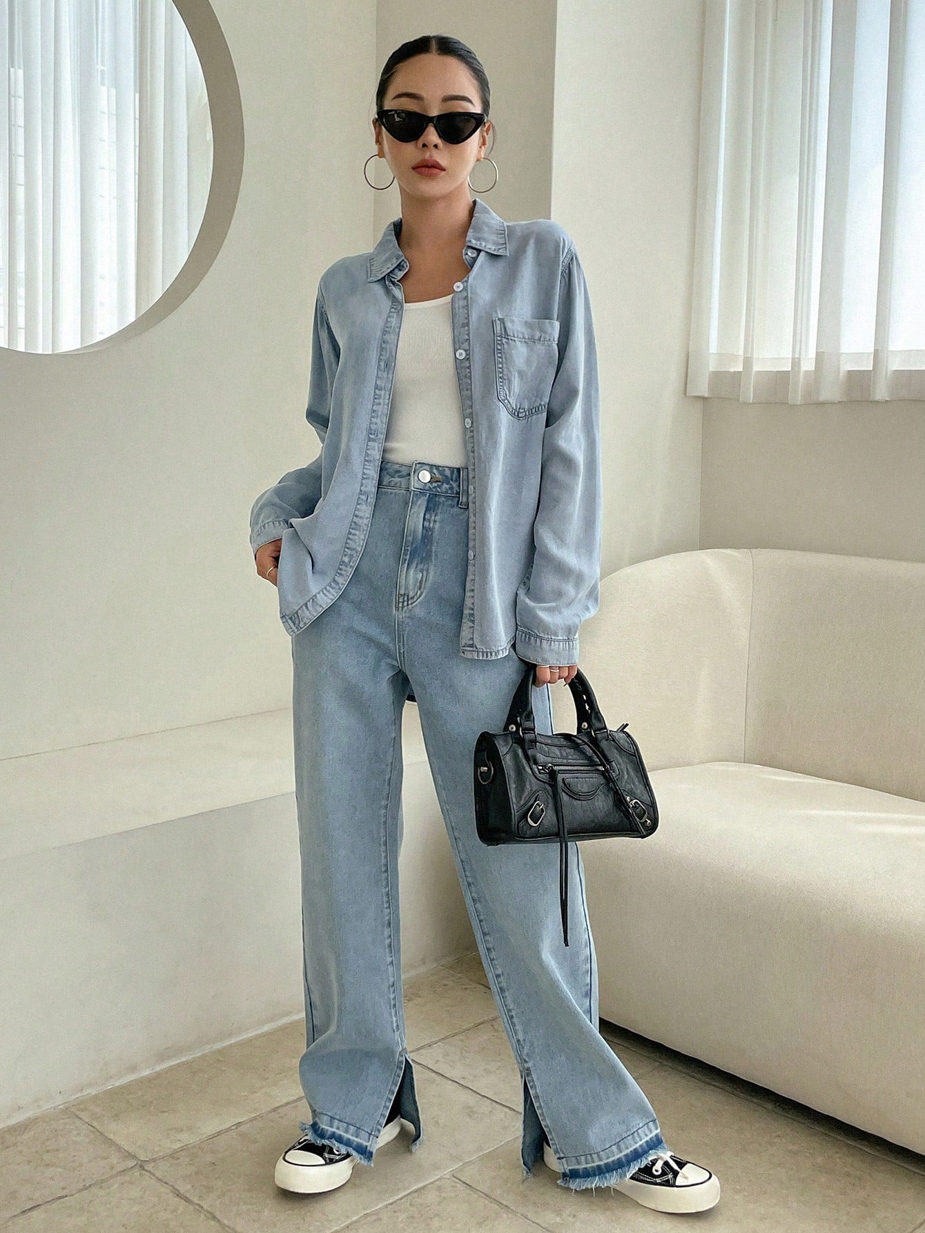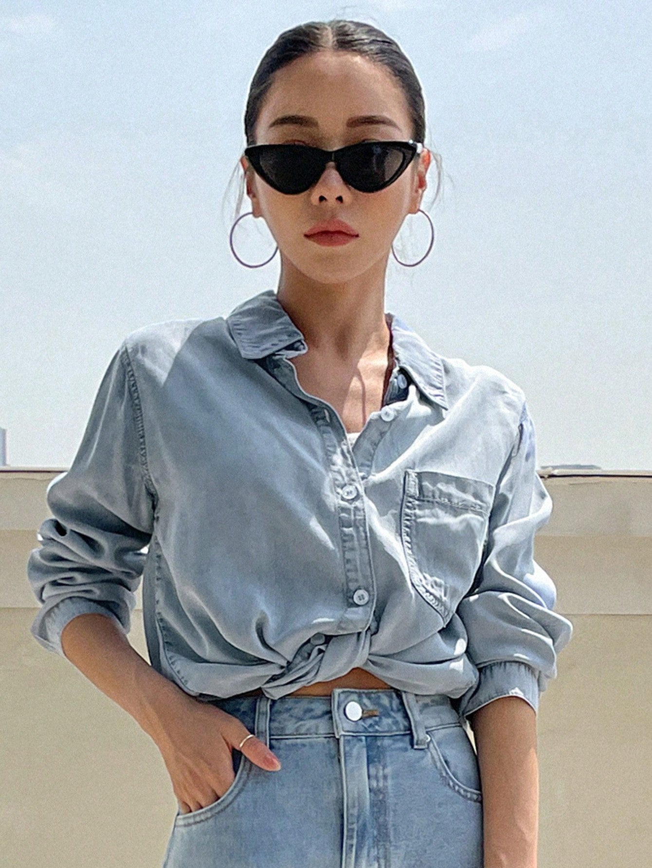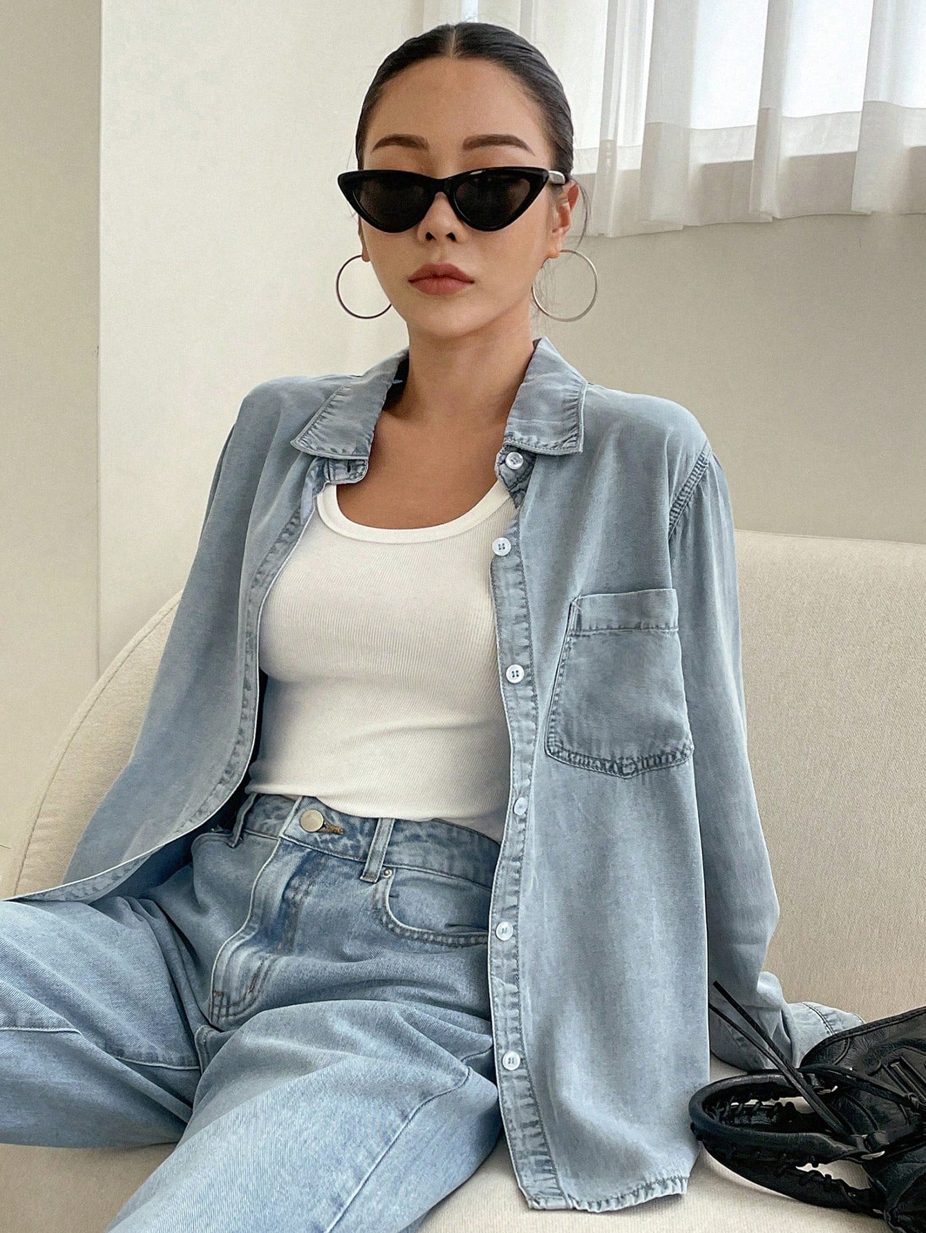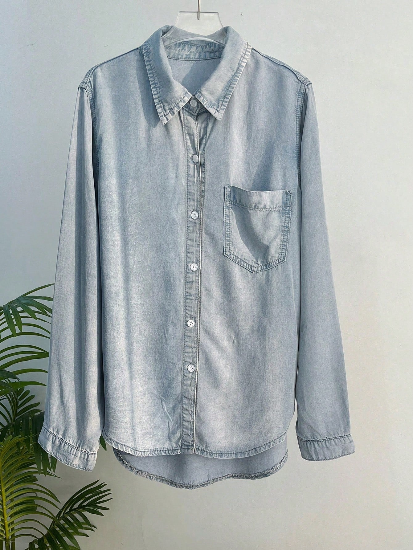 لباس علوي دنيم مرقع جيب أزرار أمامية