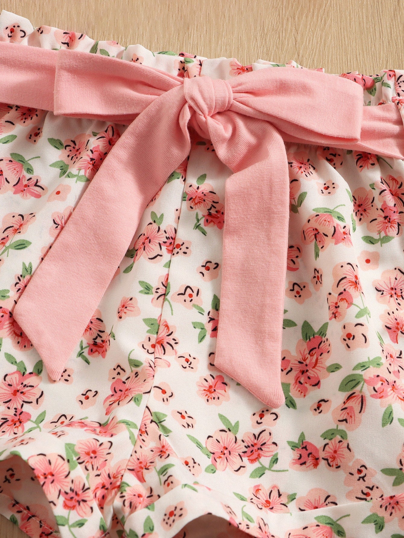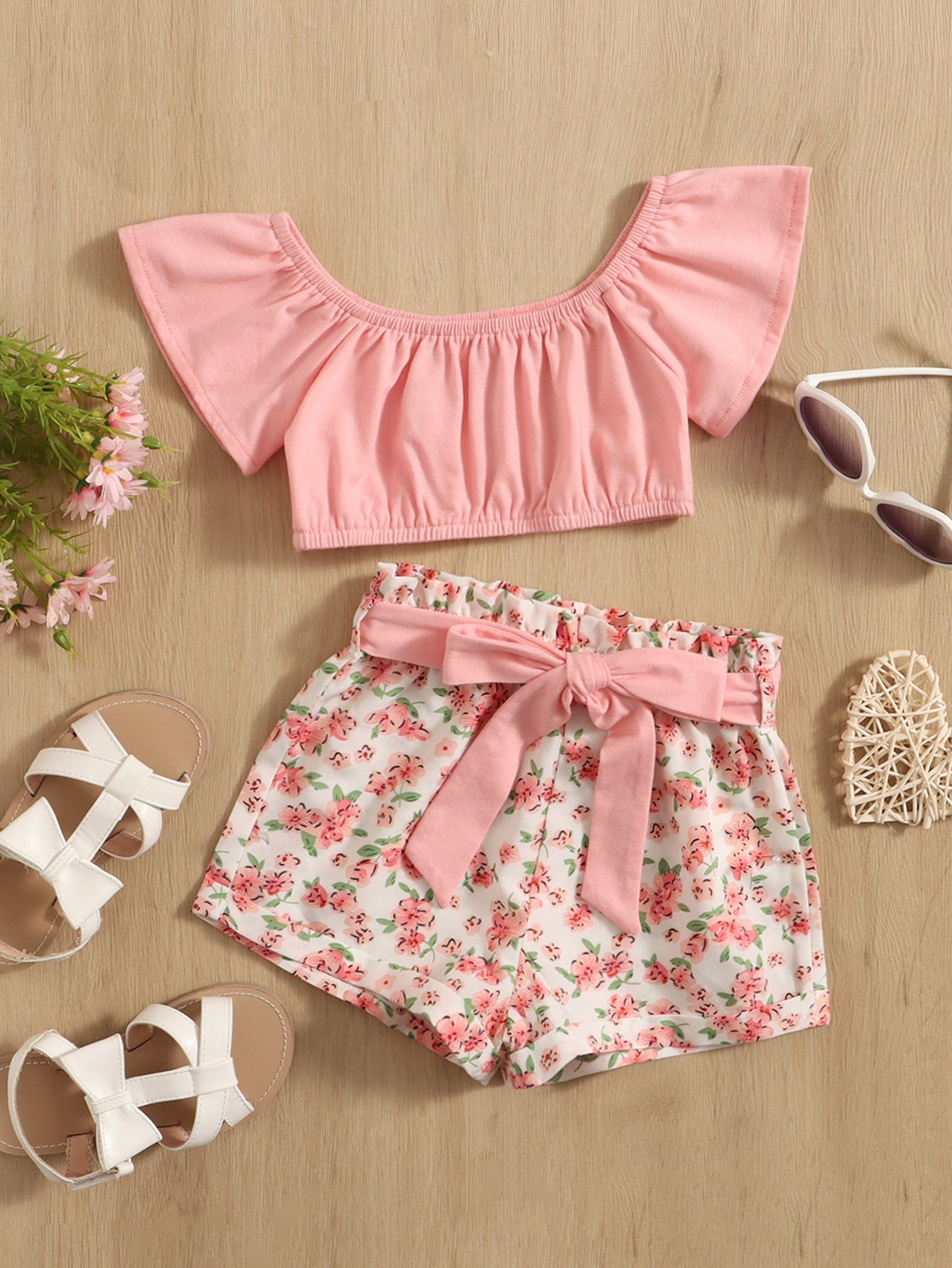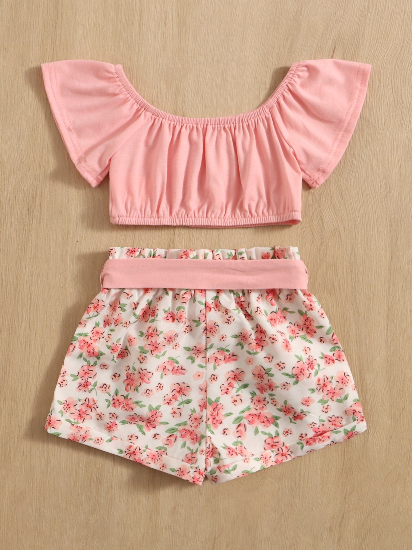 للاطفال اكمام فراشة لباس علوي مع طباعة الأزهار شورت بحزام