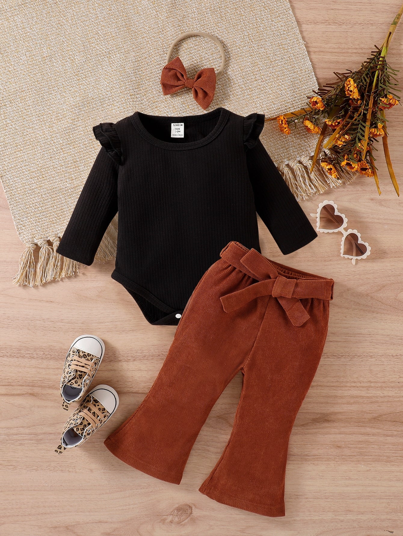 للاطفال بوديسوت مقلم بكشكش و بنطلون بساق واسع حزام و عقال الرأس