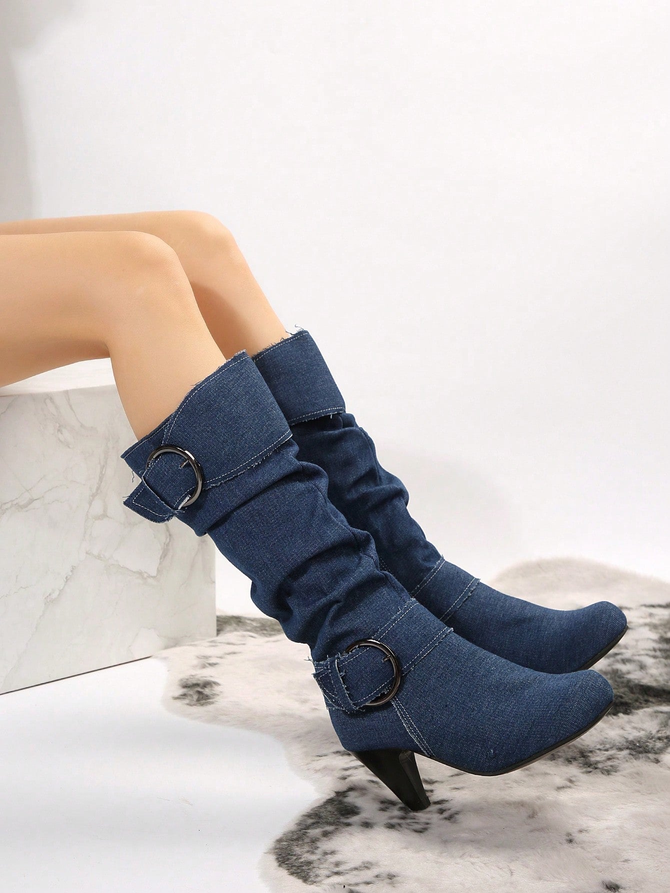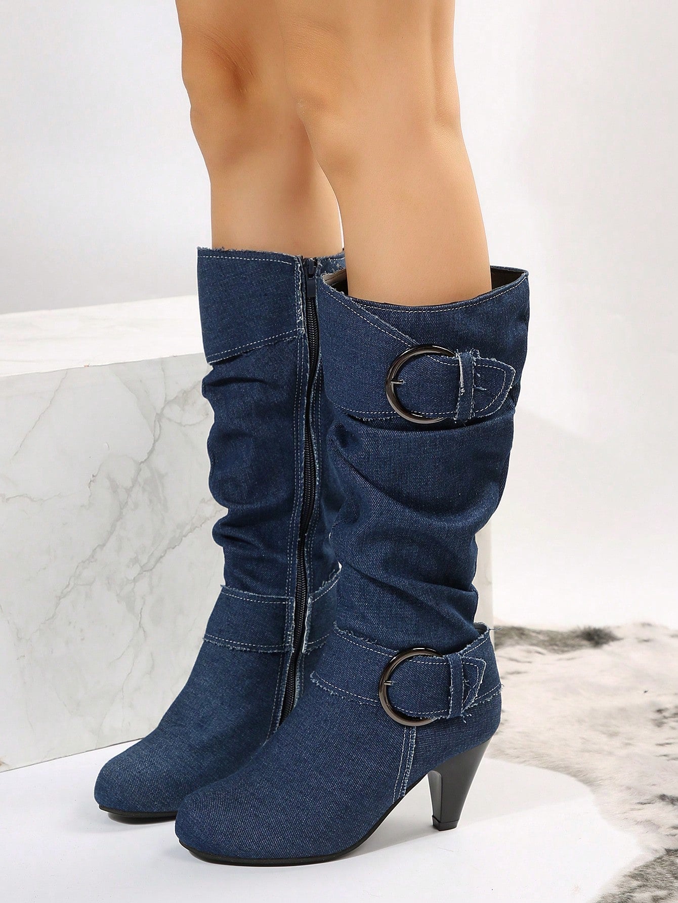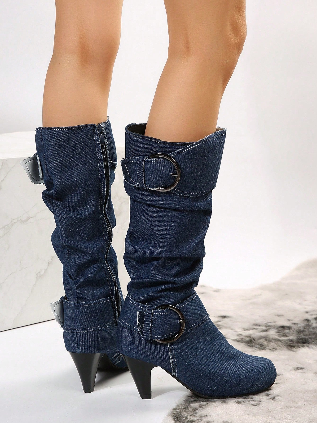 للنساء باصابع قدم دائري سحاب جانبي كعب عالي عالي للركبة جزمة برقبة طويلة , الموضة حذاء