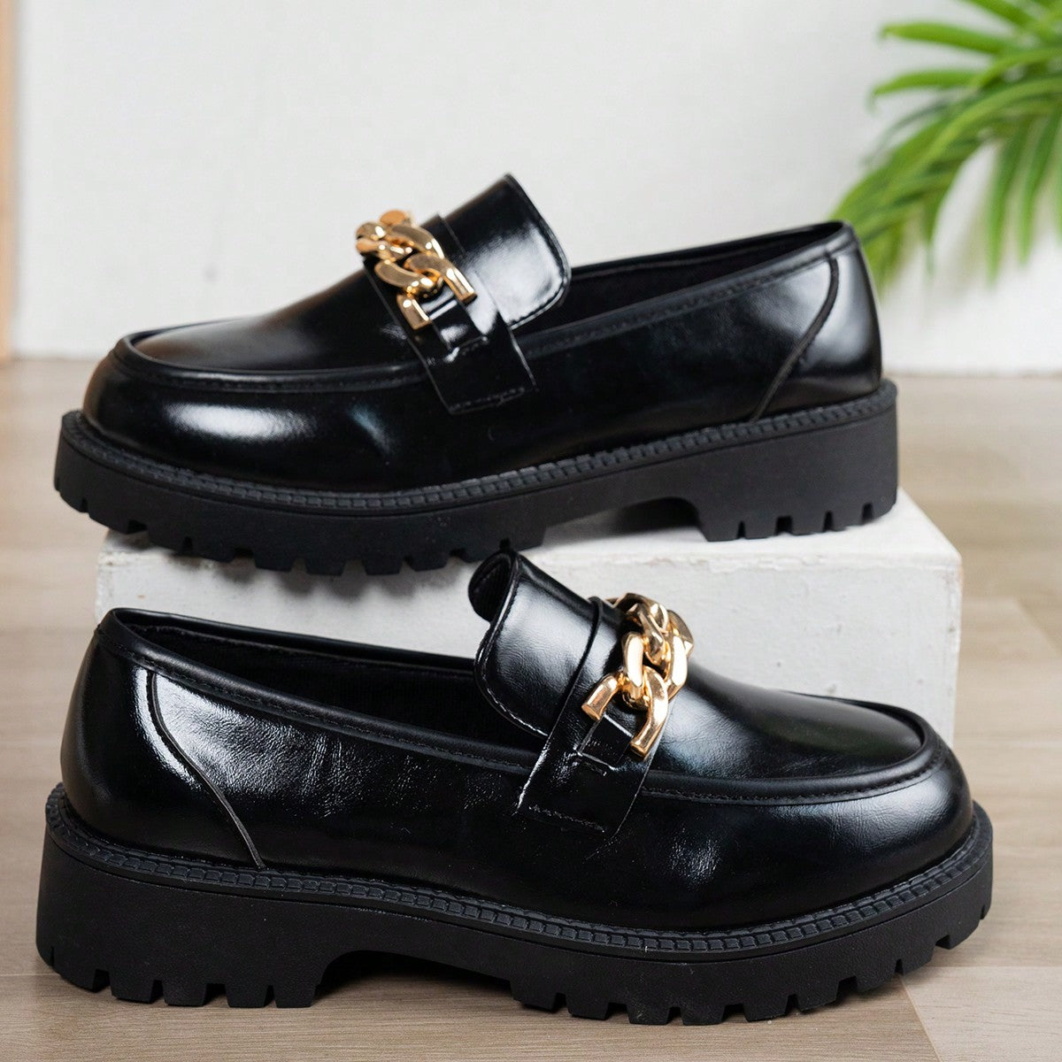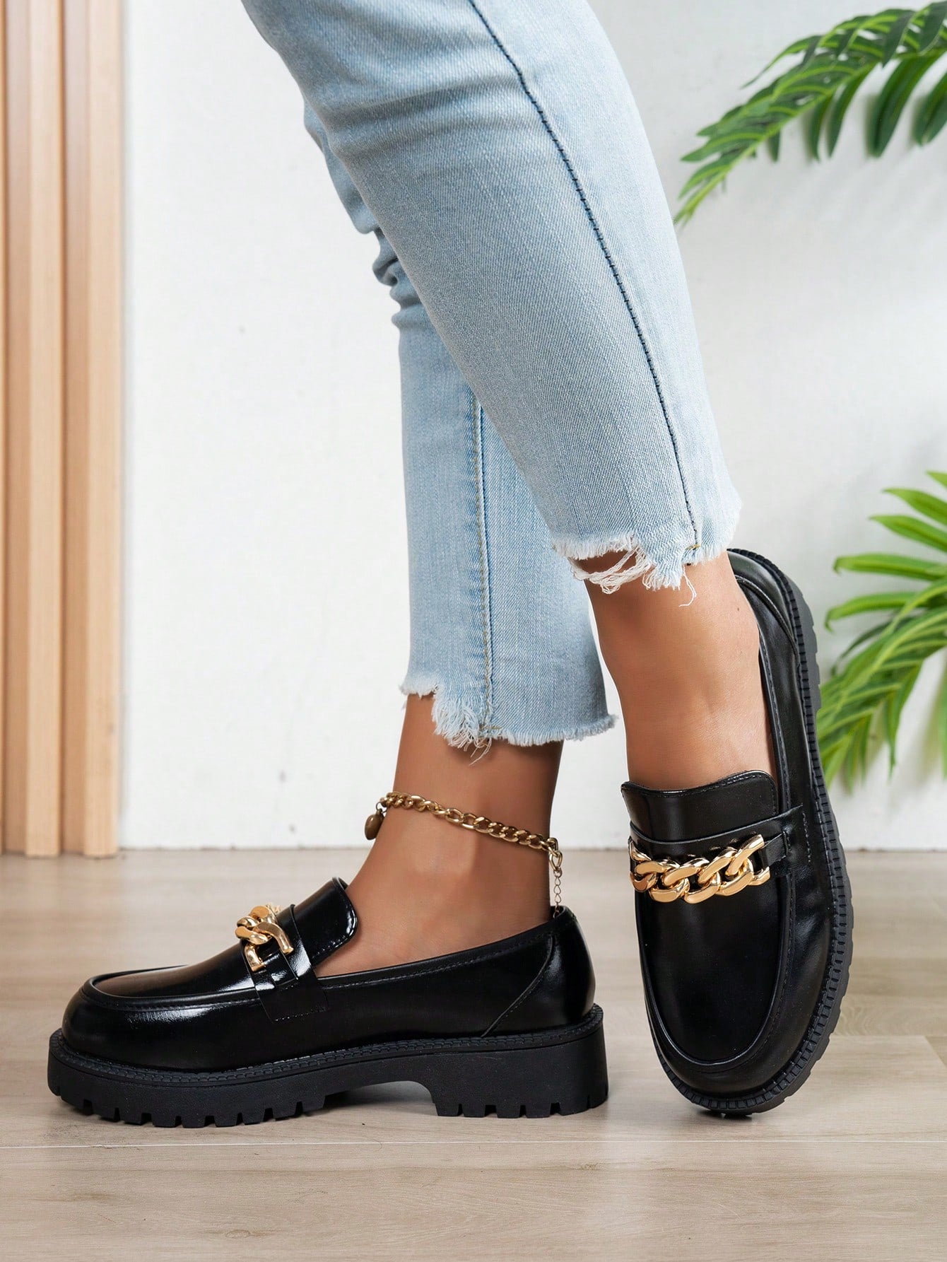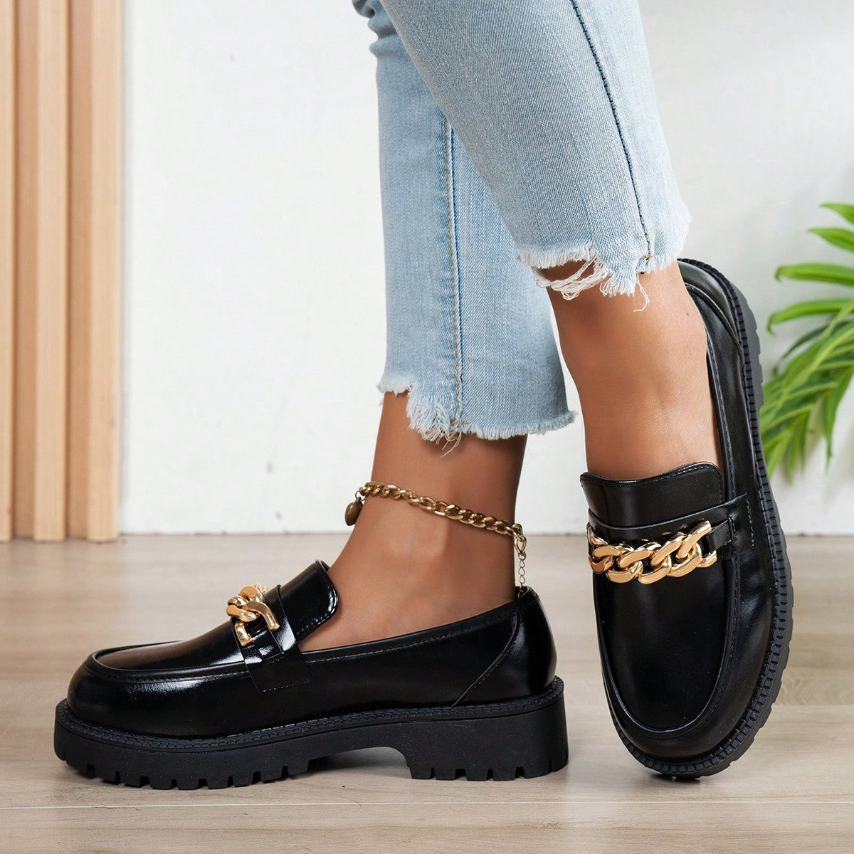 لوافر نسائي بشريط سحاب أسود بسيط، قاع ناعم وجذاب مريح وغير منزلق، مزين بسلسلة معدنية، طراز كاجوال متعدد الاستخدامات وكوليجي